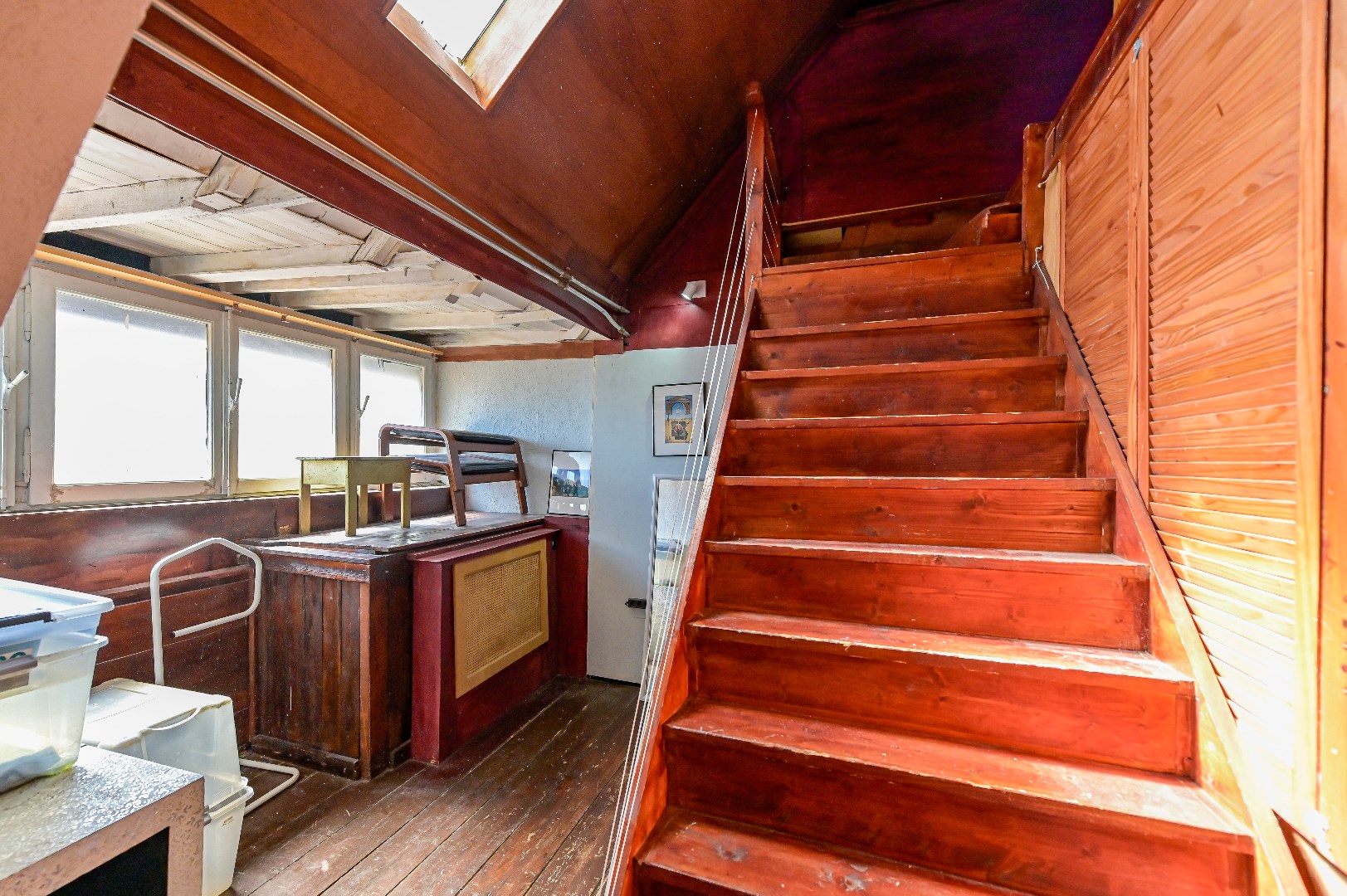 Middels vaste trap te bereiken zolderruimte met CV-opstelling (gehuurde HR Intergas met een huurprijs van €38,57 per maand).