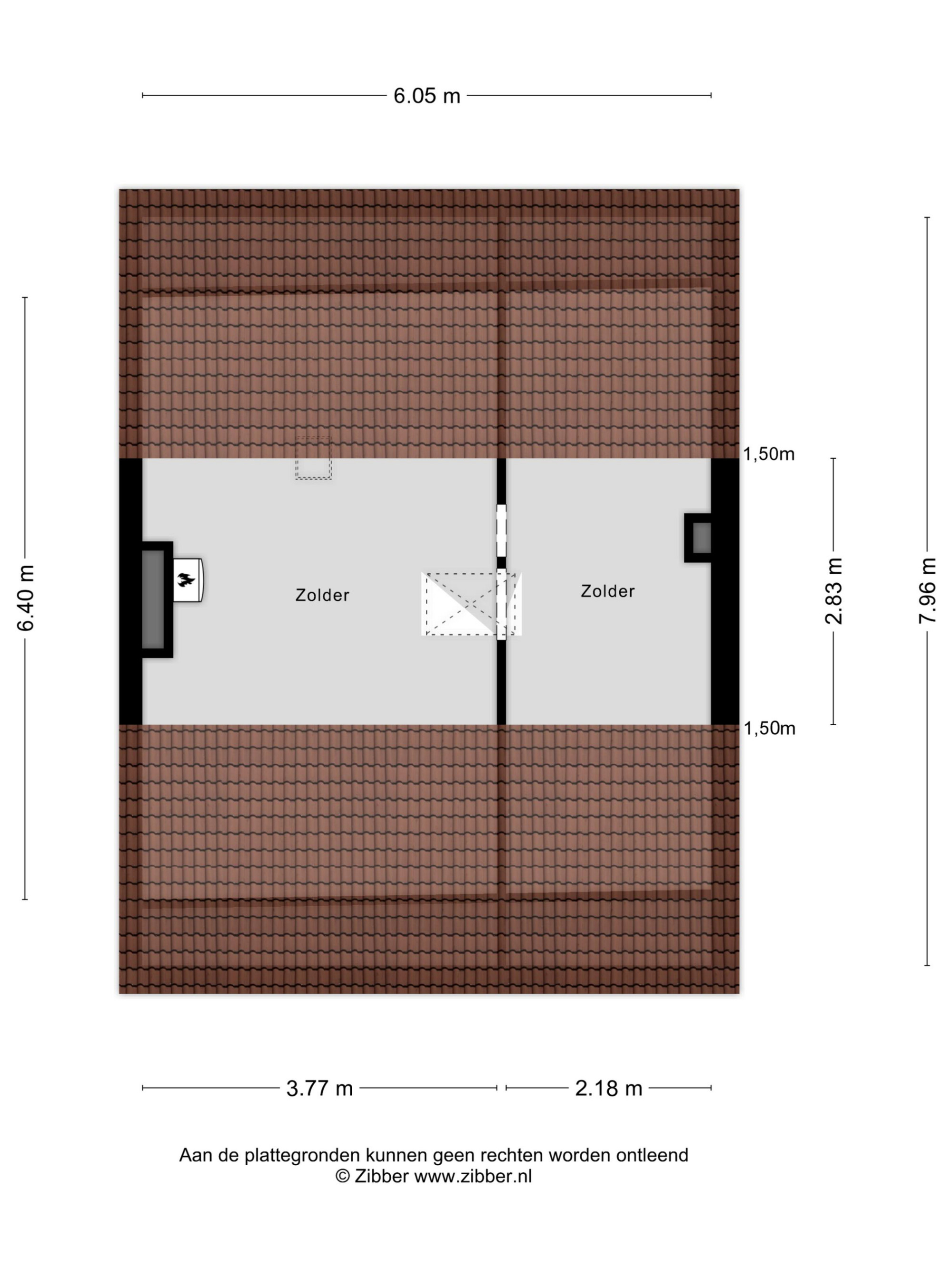 Door middel van een vlizotrap is de zolderverdieping te bereiken. Deze is uitgevoerd met een betonnen verdiepingsvloer.