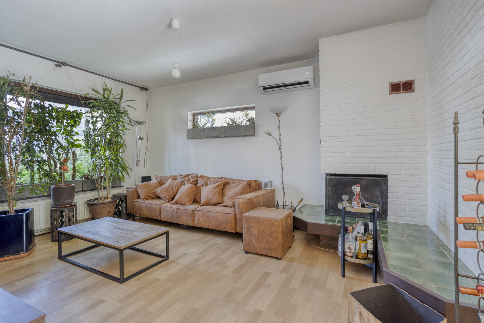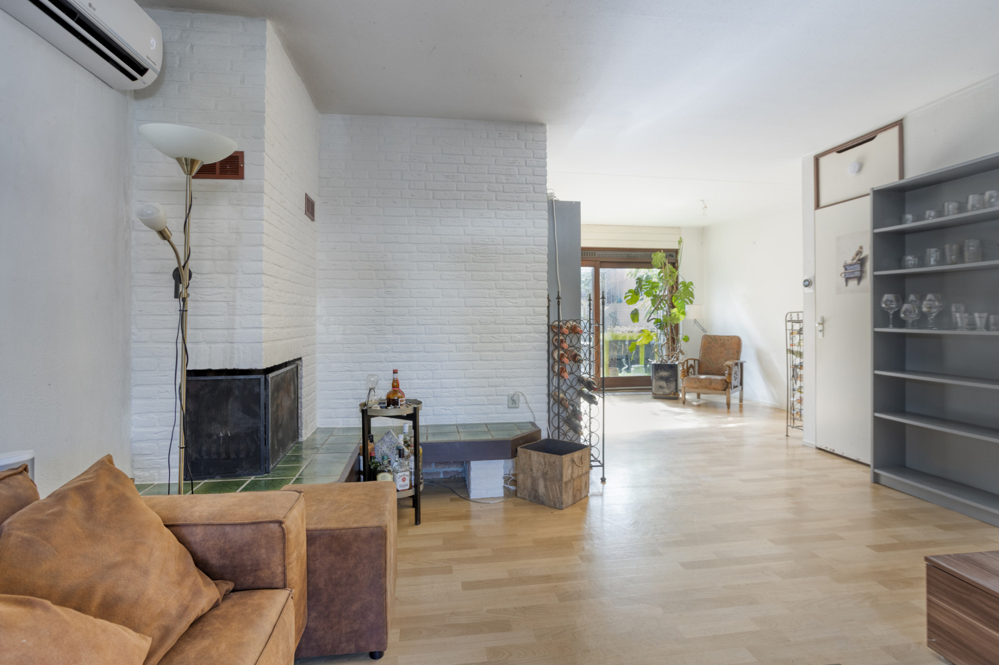 Bij binnenkomst treft u de entree met hal, met meterkast, toilet en de trapopgang naar boven. De lichte woonkamer is voorzien van een sfeervolle open haard, een airco en een schuifpui die toegang biedt tot de serre.