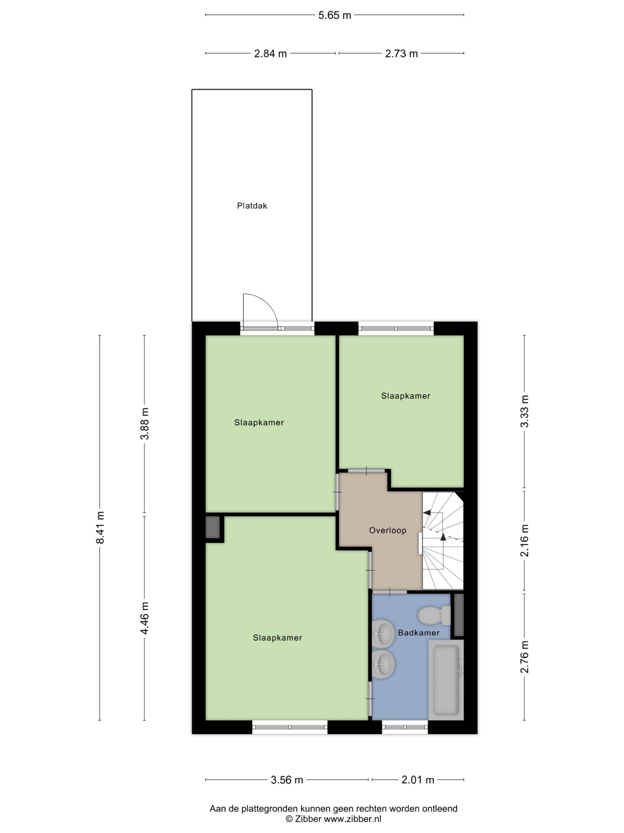 Slaapkamer 2 bevindt zich aan de achterzijde en is met een afmeting van ca. 3,9 m x 2,8 m ideaal als werkkamer of logeerkamer, daarnaast beschikt deze kamer over een klein dakterras. Daarnaast ligt Slaapkamer 3, met een afmeting van 3,3 m x 2,7 m, eveneens aan de achterzijde van de woning. Ook deze kamer is praktisch van formaat en geschikt voor diverse indelingen.