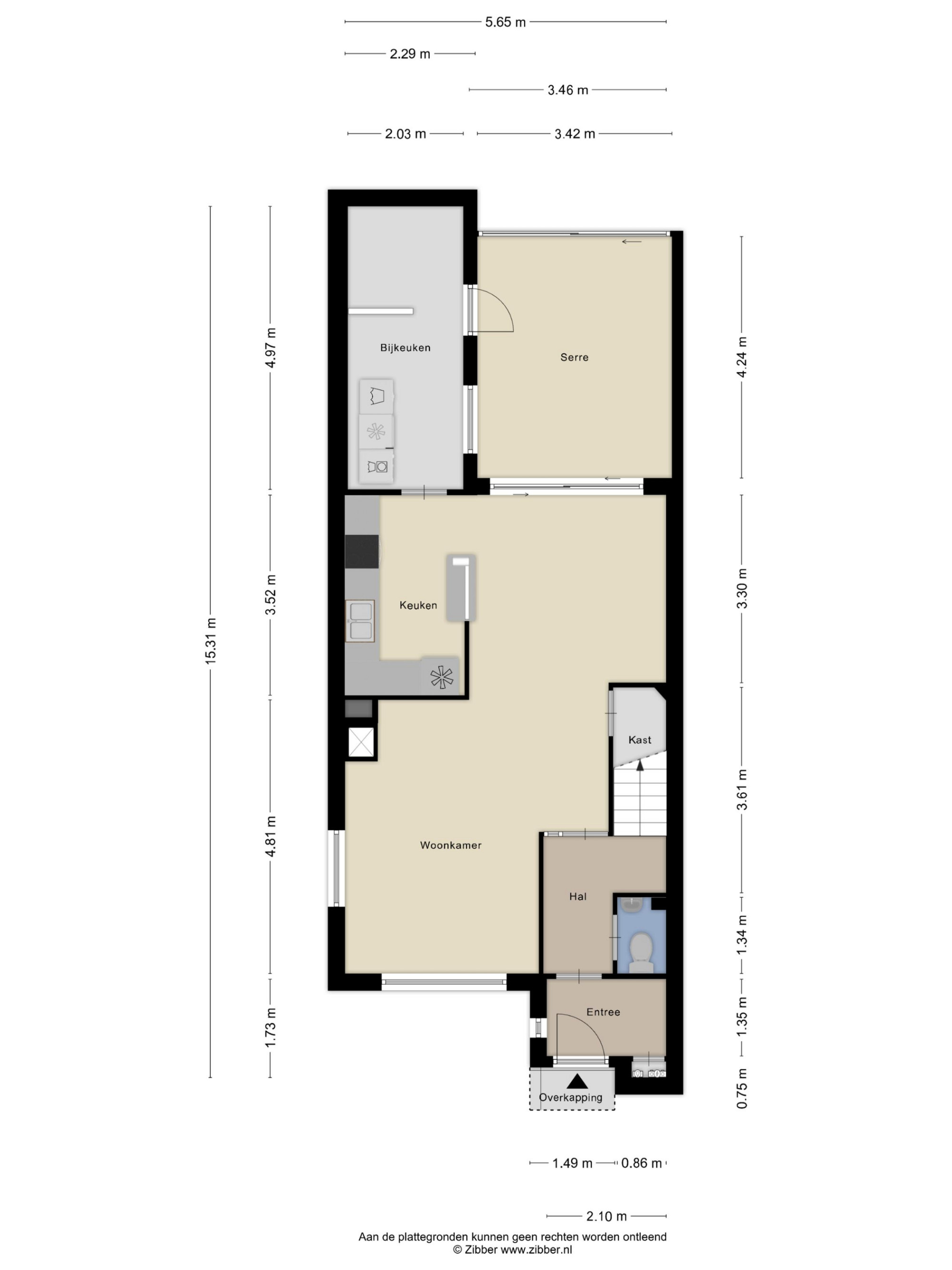 De bijkeuken is ongeveer 5 x 2 meter groot en bereikbaar vanuit de keuken. Je vindt hier de aansluitingen voor het witgoed en extra bergruimte voor voorraad of apparatuur. Vanuit de bijkeuken loop je bovendien direct door naar de serre.