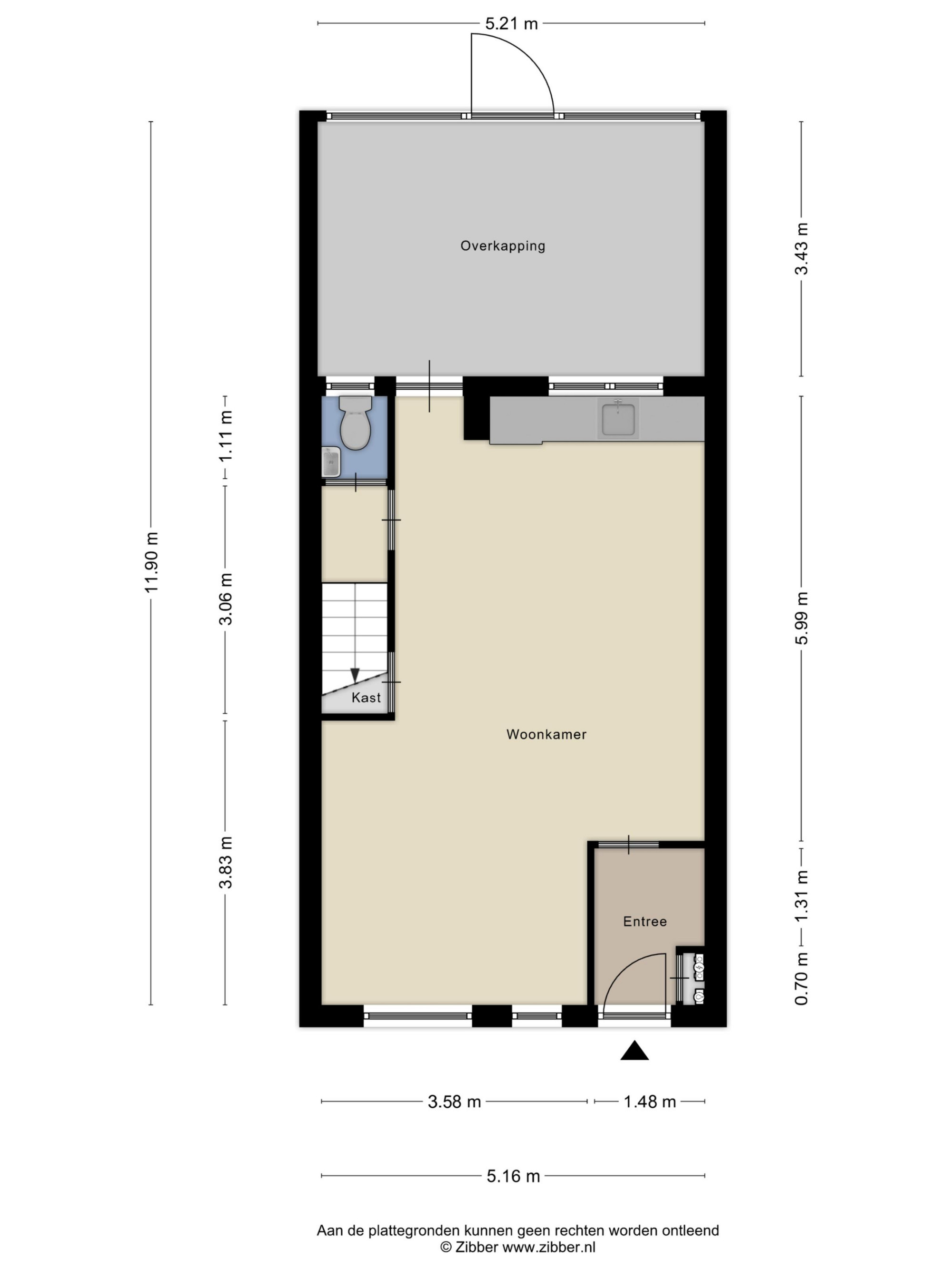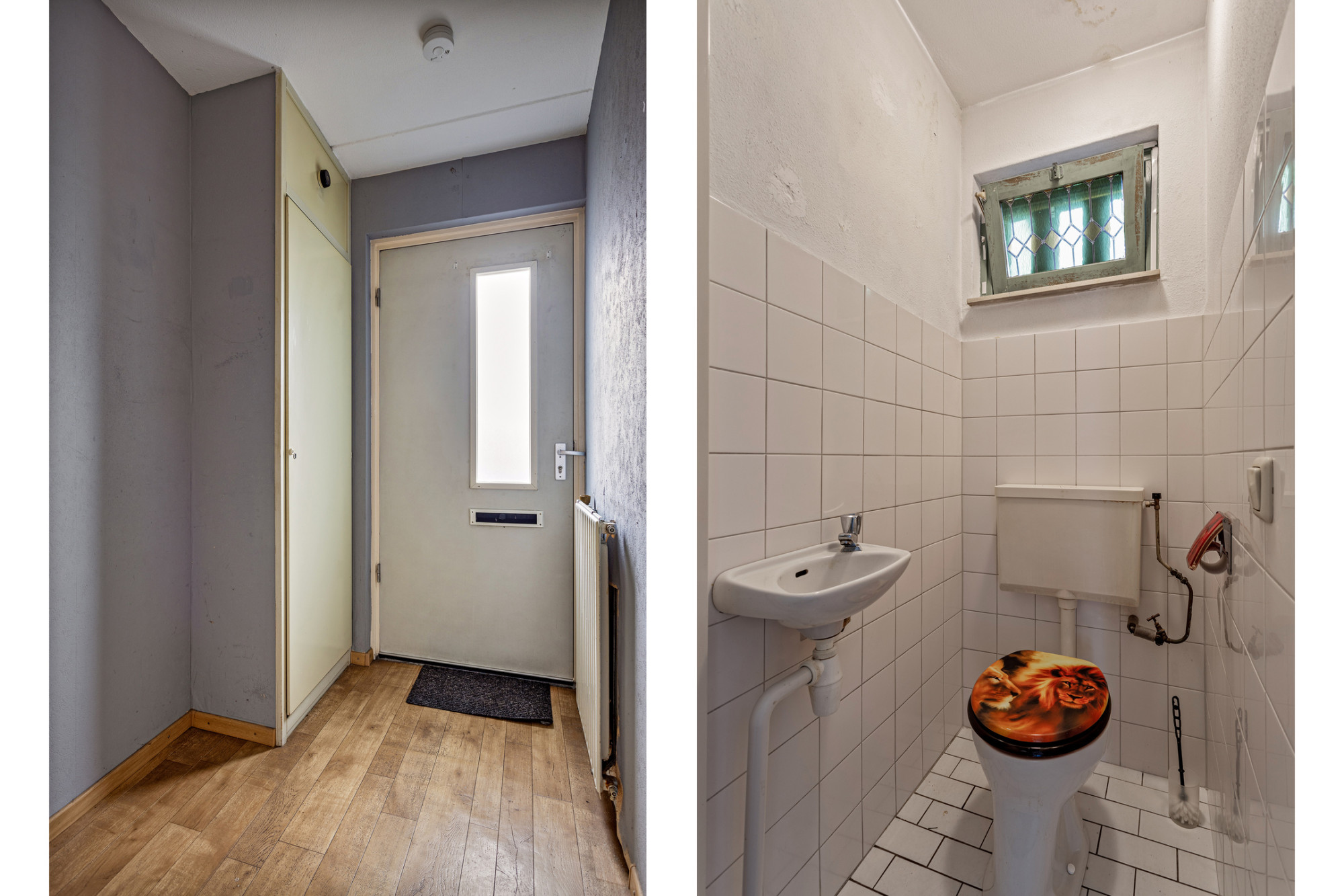 In de woonkamer bevindt zich een portaal met de toilet en trap naar de eerste verdieping.