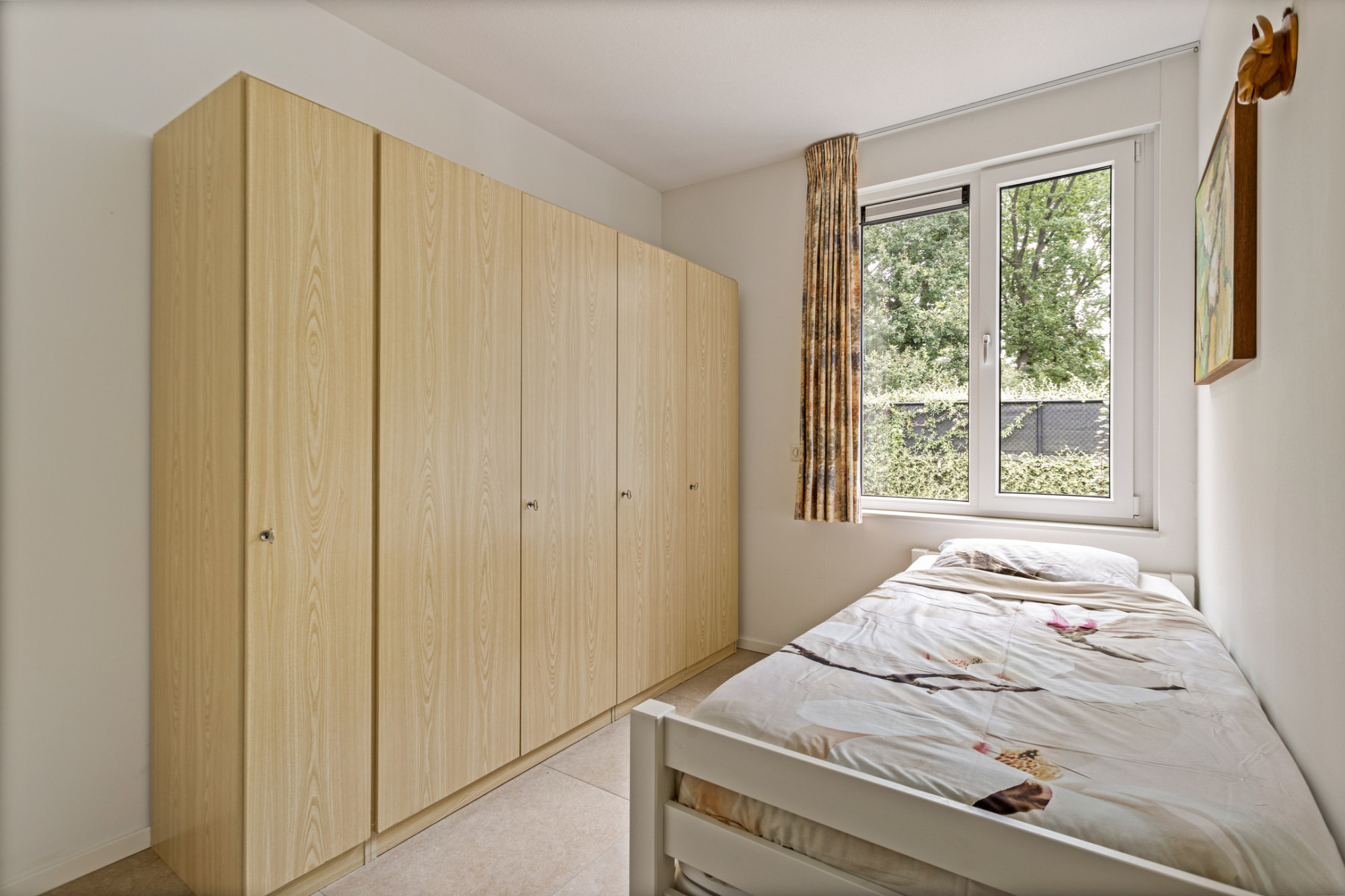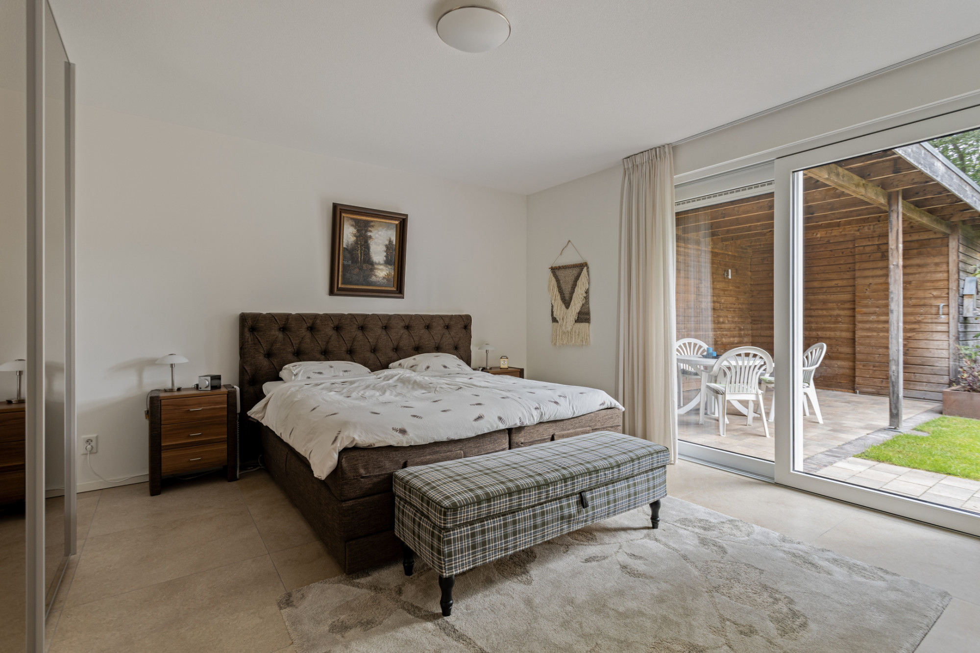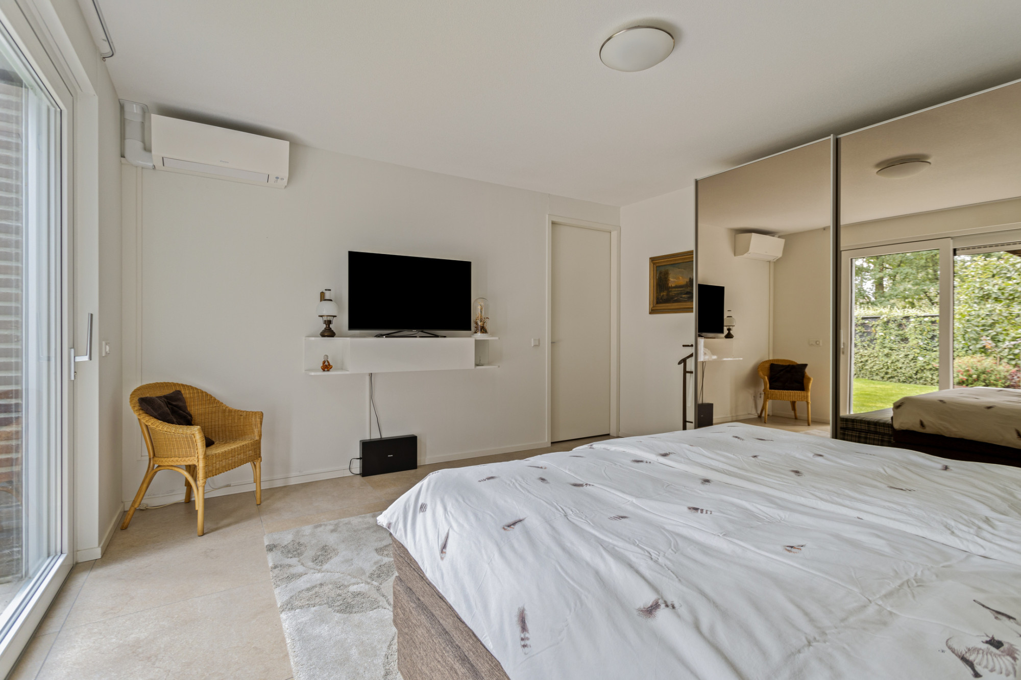 De woonkamer geniet veel lichtinval en is voorzien van een ruime bergkast en een airco.
