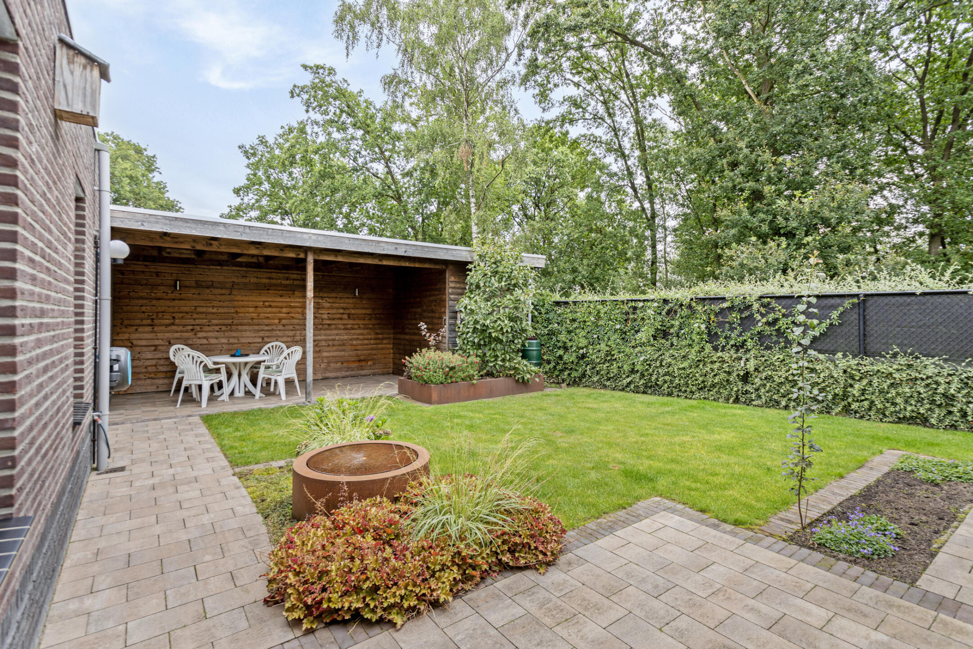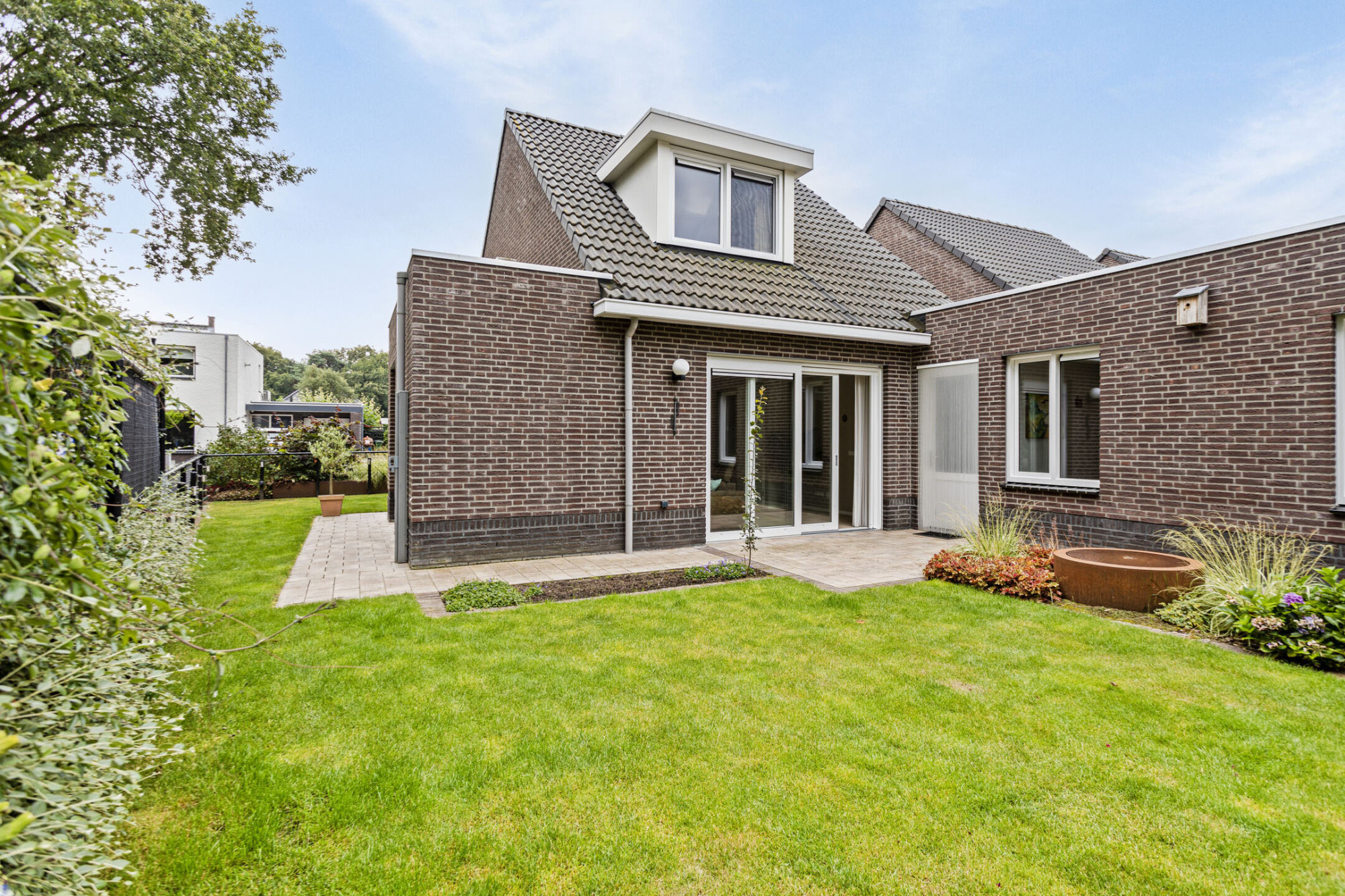 Aan de achterzijde bevindt zich de zithoek, heerlijk tuingericht en middels een schuifpui is deze tuin te bereiken.