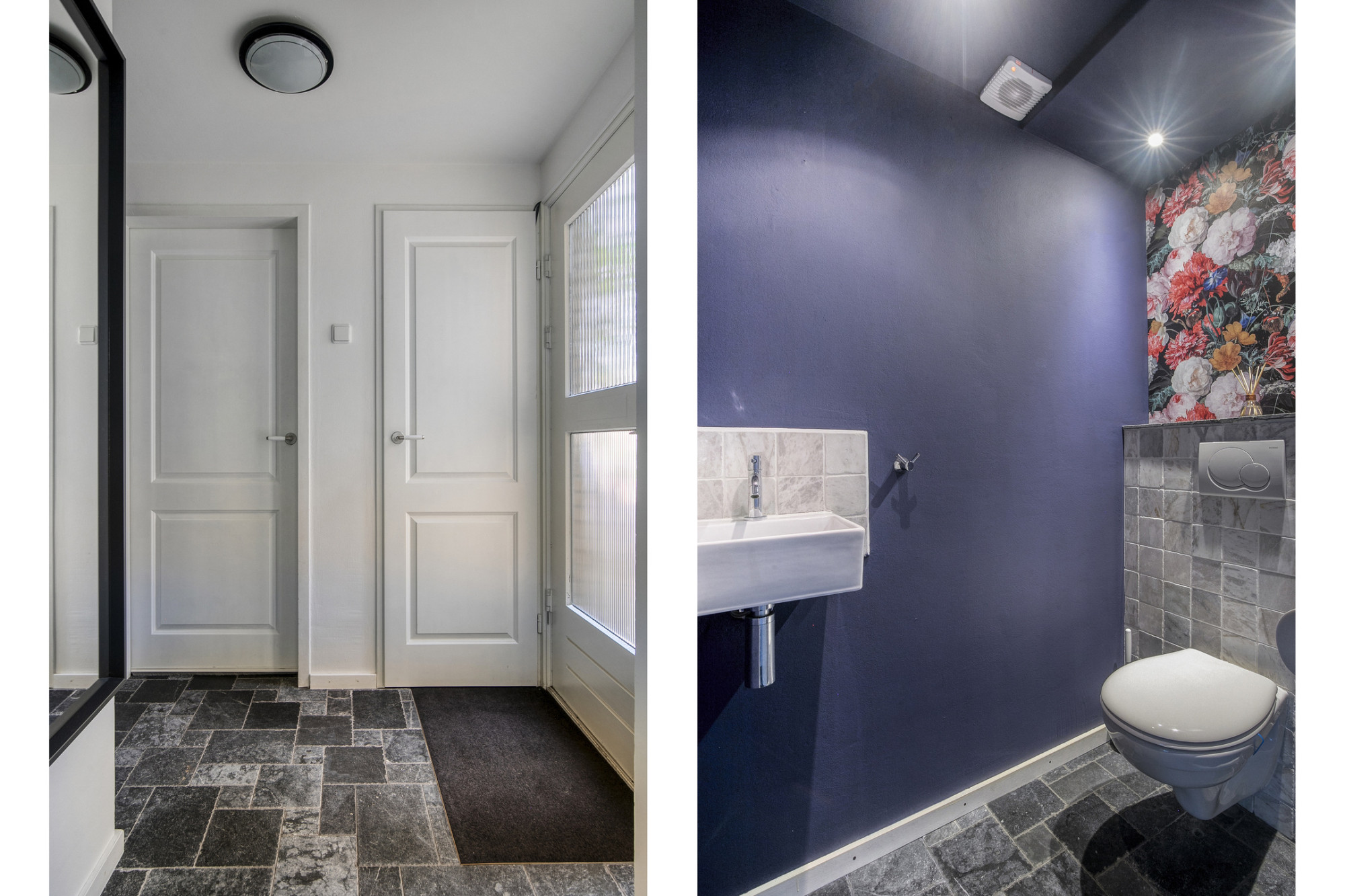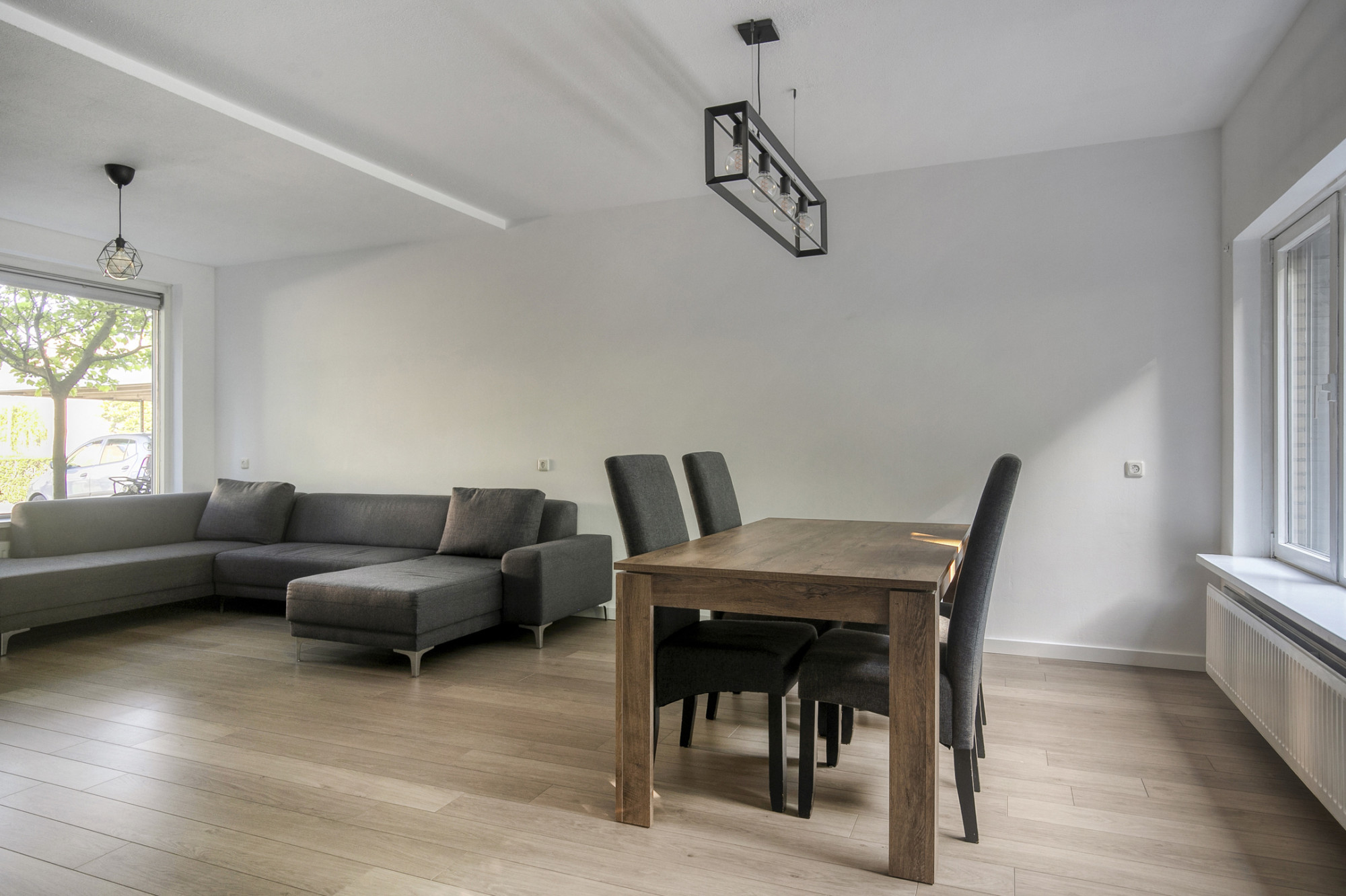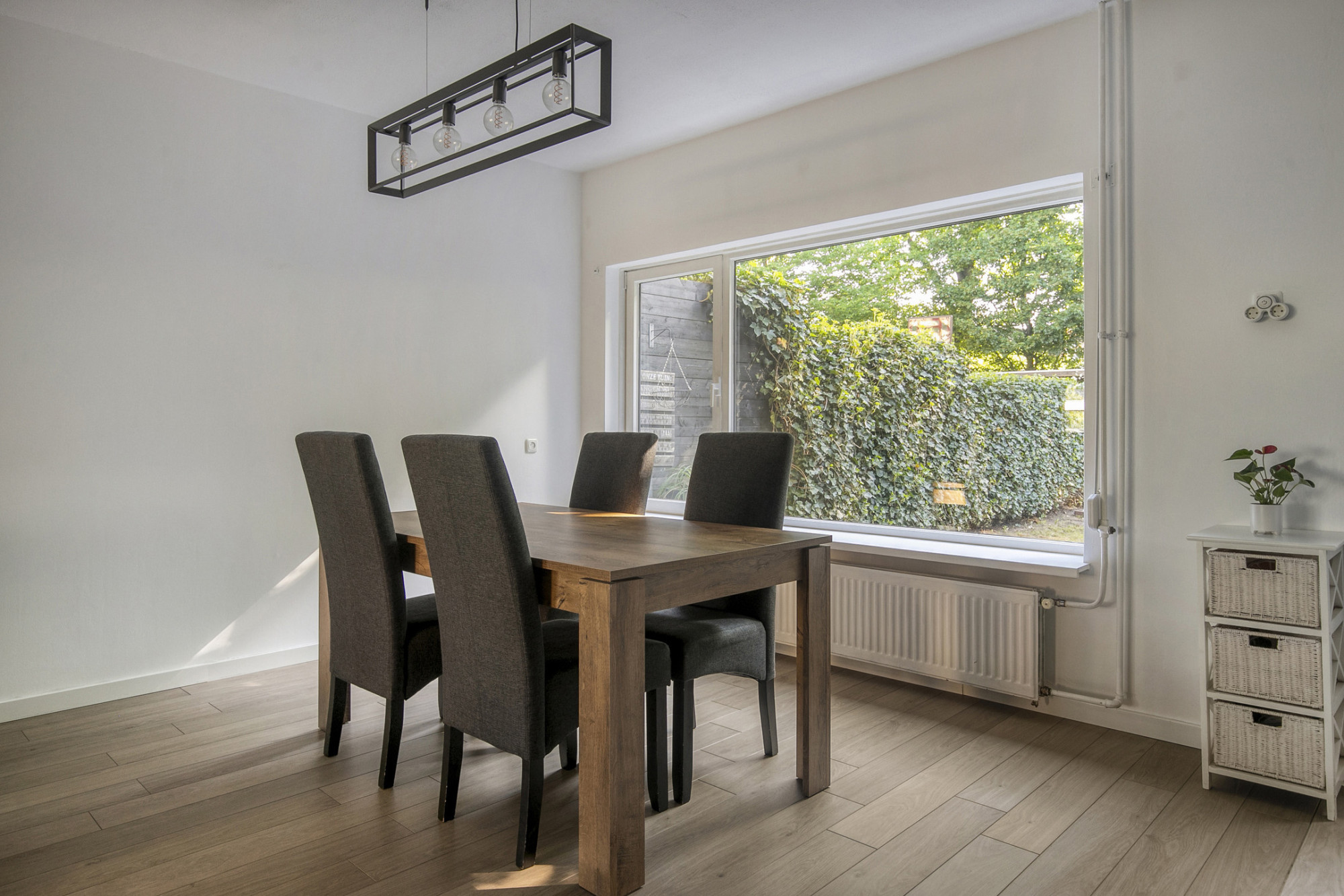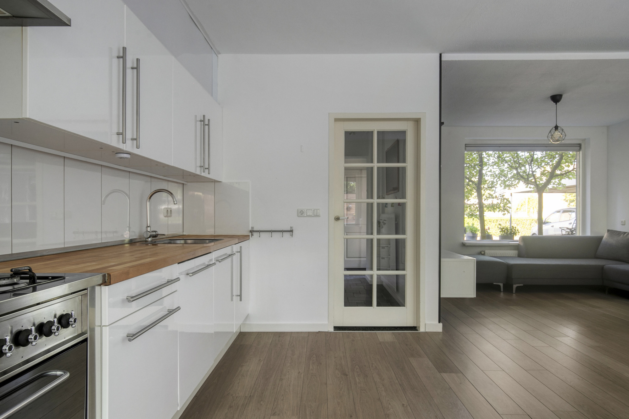 Hal/entree met vernieuwde meterkast, toiletruimte, provisiekast en trap naar verdieping. Vanuit de hal is de berging aan de voorzijde van de woning bereikbaar welke is voorzien van een kastenwand, witgoedaansluiting en directe deur naar buiten. De begane grond heeft een ruime en lichte woonkamer van 23 m² met grote ramen voor optimale lichtinval. De open keuken is functioneel en voorzien van 5-pits gaskooktoestel, afzuigkap, oven, vaatwasser en koelkast. In de woonkamer en keuken ligt een laminaatvloer.
