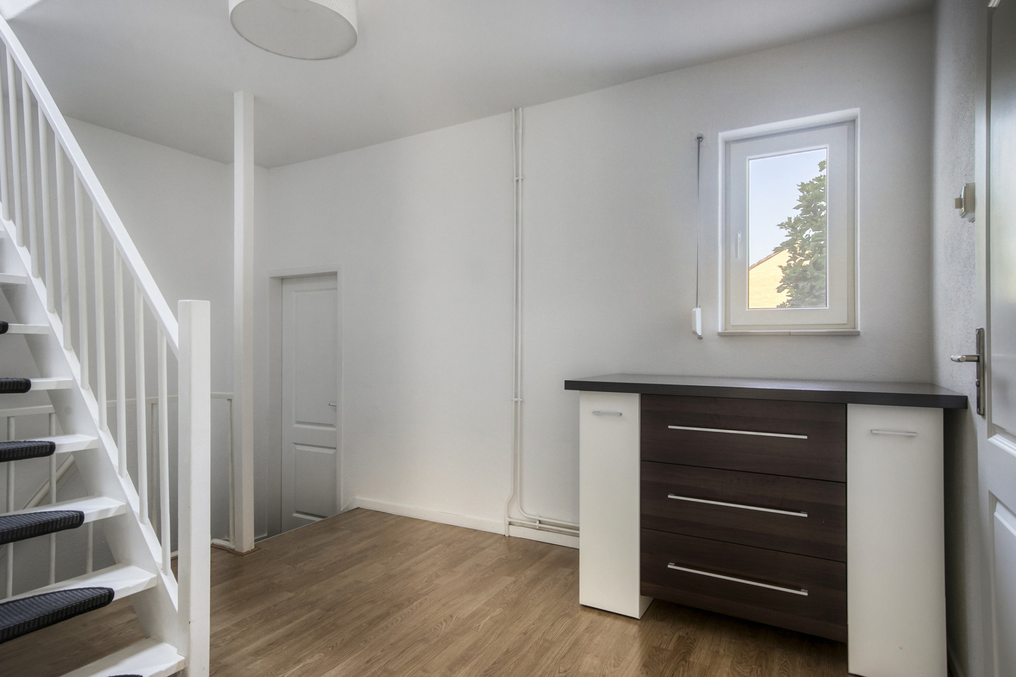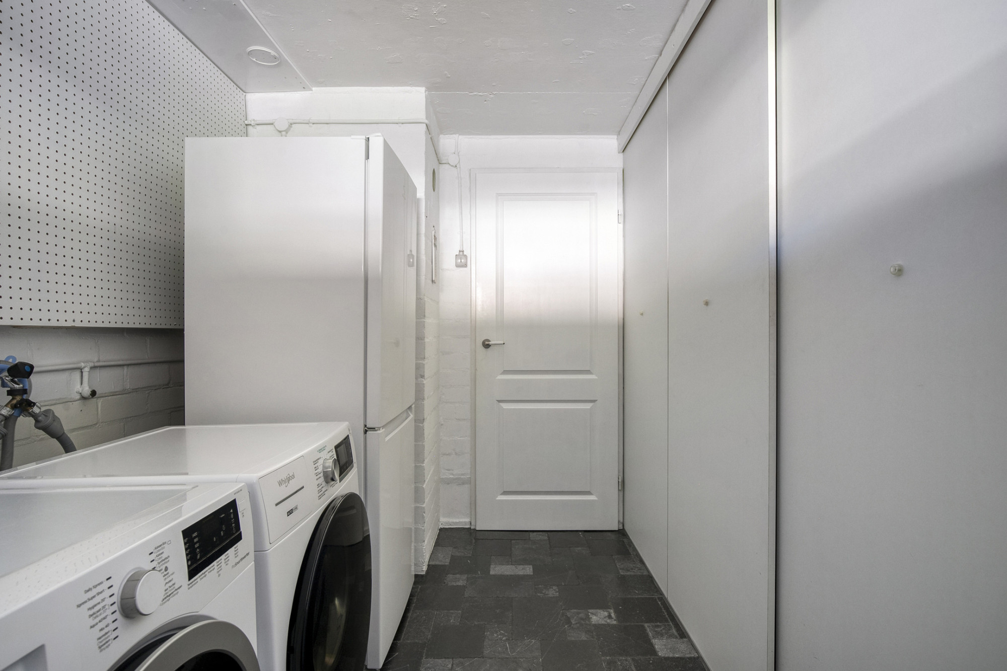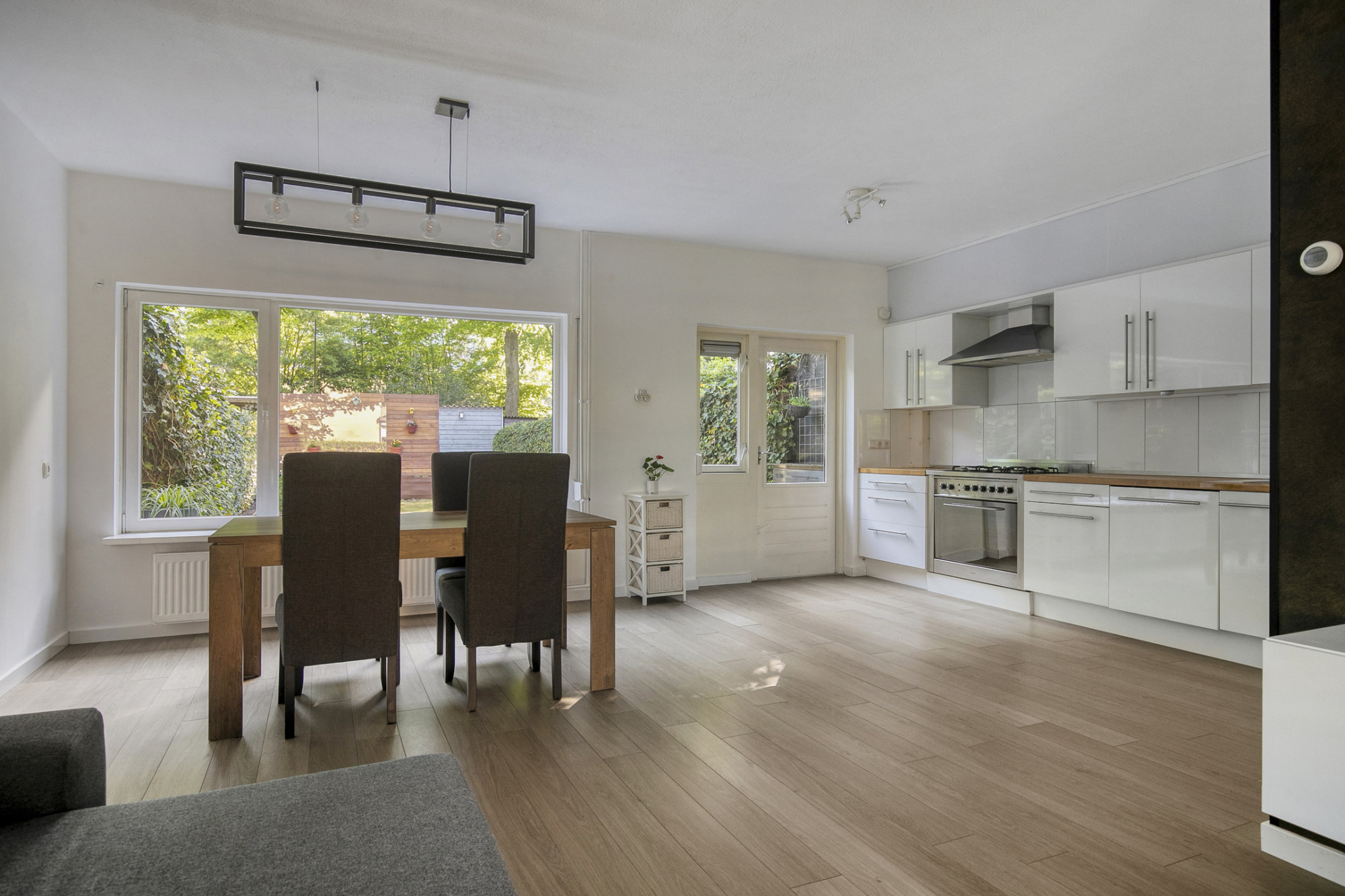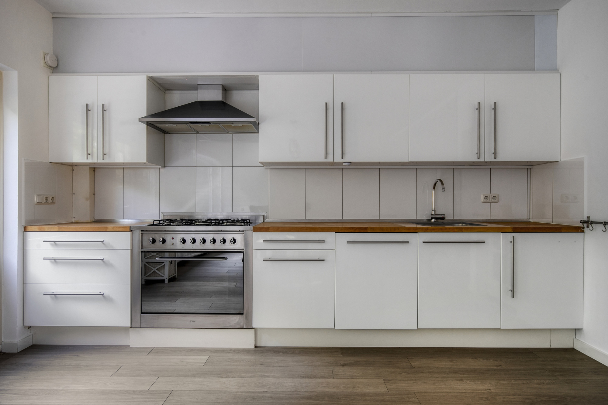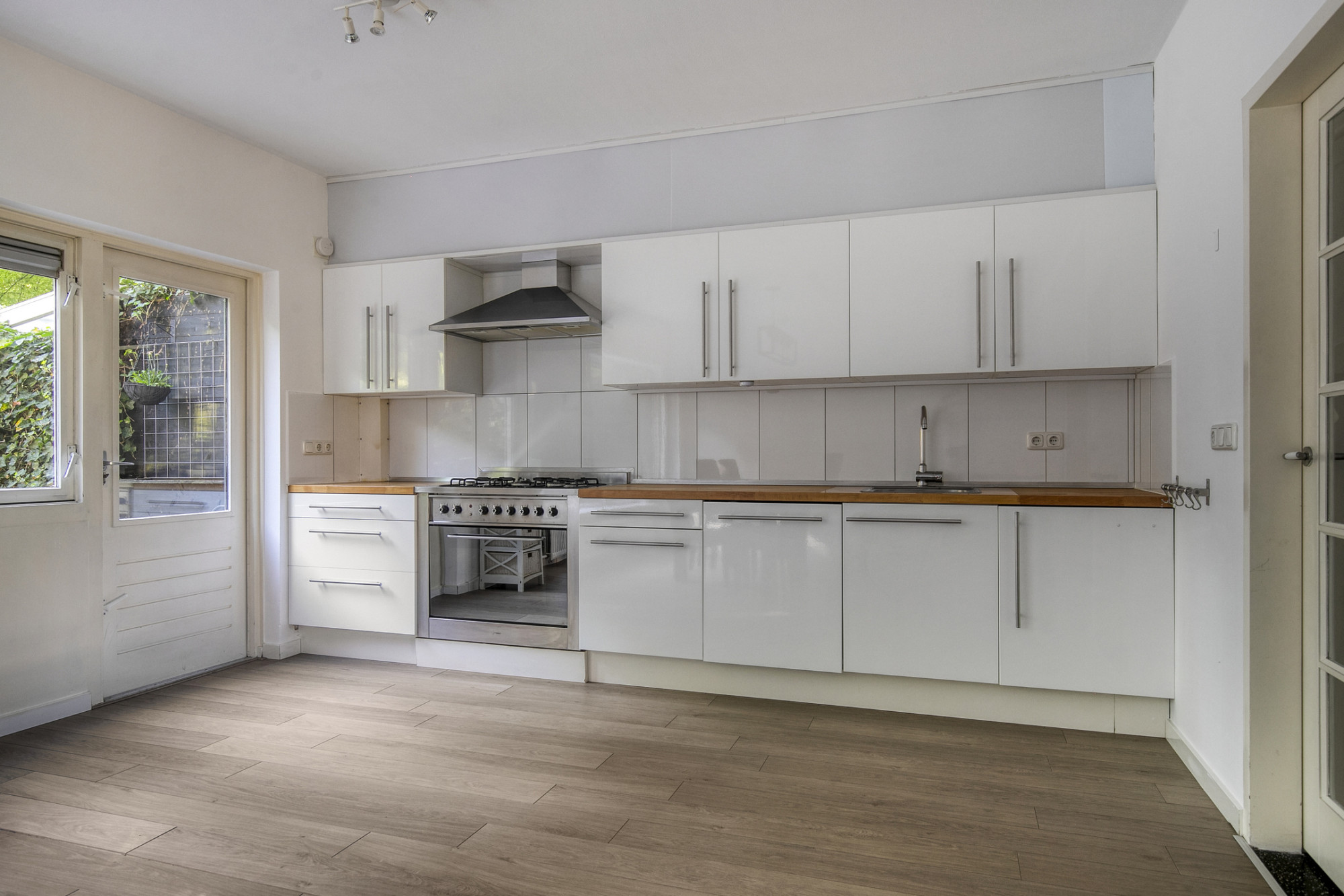 Hal/entree met vernieuwde meterkast, toiletruimte, provisiekast en trap naar verdieping. Vanuit de hal is de berging aan de voorzijde van de woning bereikbaar welke is voorzien van een kastenwand, witgoedaansluiting en directe deur naar buiten. De begane grond heeft een ruime en lichte woonkamer van 23 m² met grote ramen voor optimale lichtinval. De open keuken is functioneel en voorzien van 5-pits gaskooktoestel, afzuigkap, oven, vaatwasser en koelkast. In de woonkamer en keuken ligt een laminaatvloer.