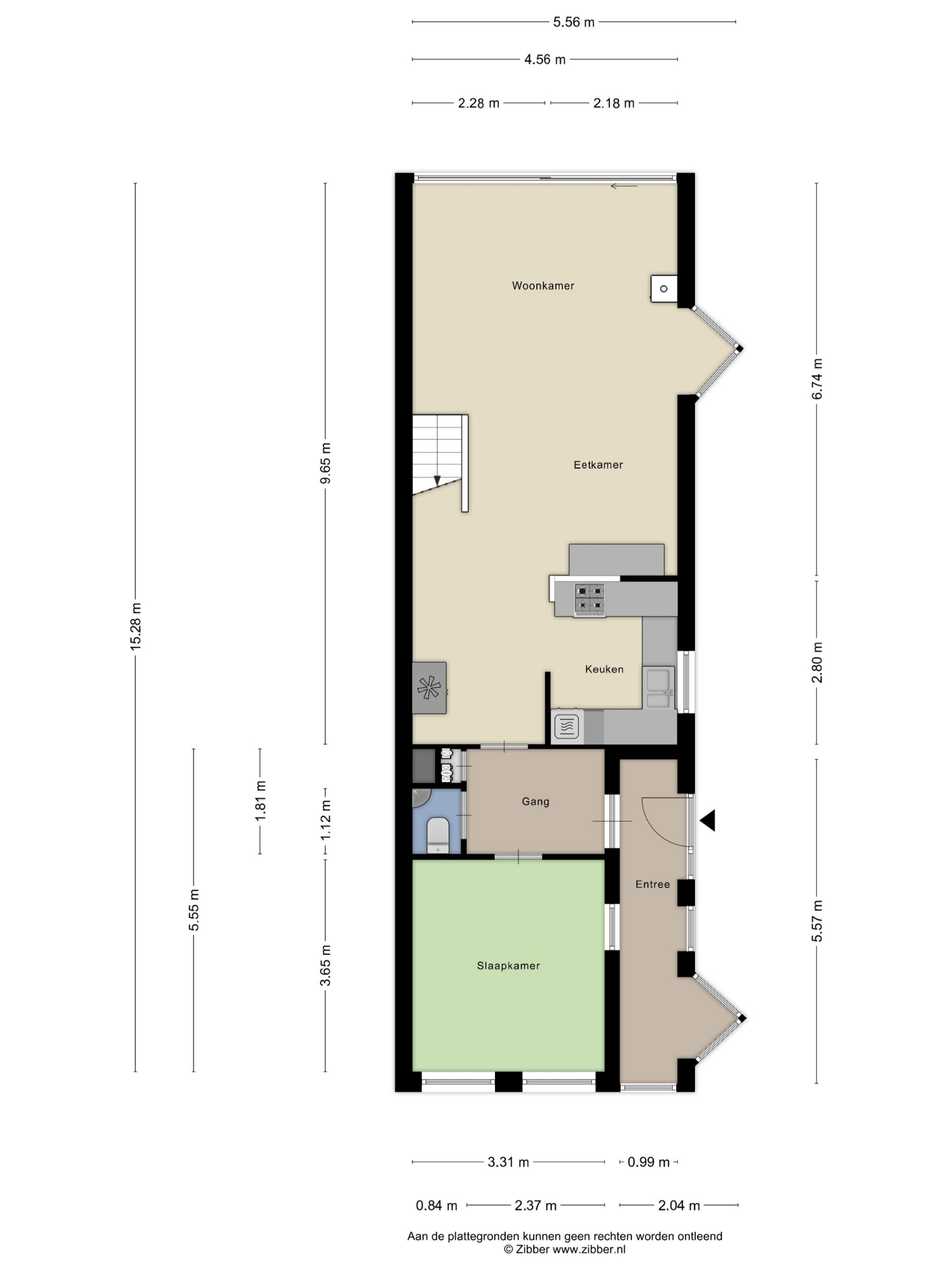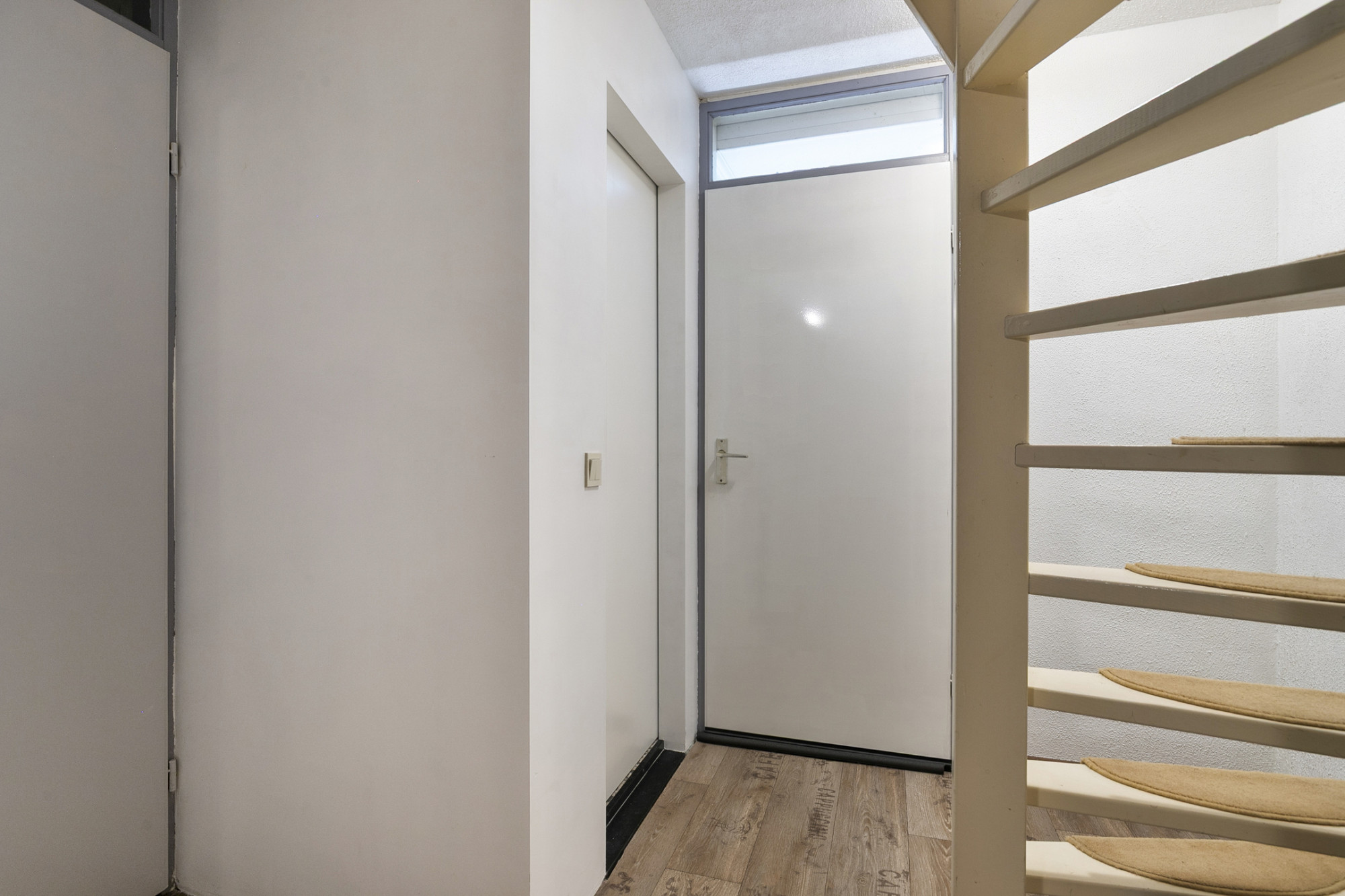 Entree/hal met toiletruimte, meterkast met vernieuwde groepenkast en toegang tot de multifunctionele ruimte aan de voorzijde van de woning welke kan worden benut als werkkamer, speelkamer of zelfs slaapkamer. Aan de achterzijde is de woonkamer gelegen welke is georiënteerd op de achtertuin door de grote raampartij aan de achterzijde met schuifpui en het grote raam aan de zijkant. Wat de woonkamer speels maakt is de trap naar de verdieping met vide wat zorgt voor een ruimtelijk gevoel.. De half open keuken is eenvoudig en voorzien van gaskooktoestel, afzuigkap en oven.