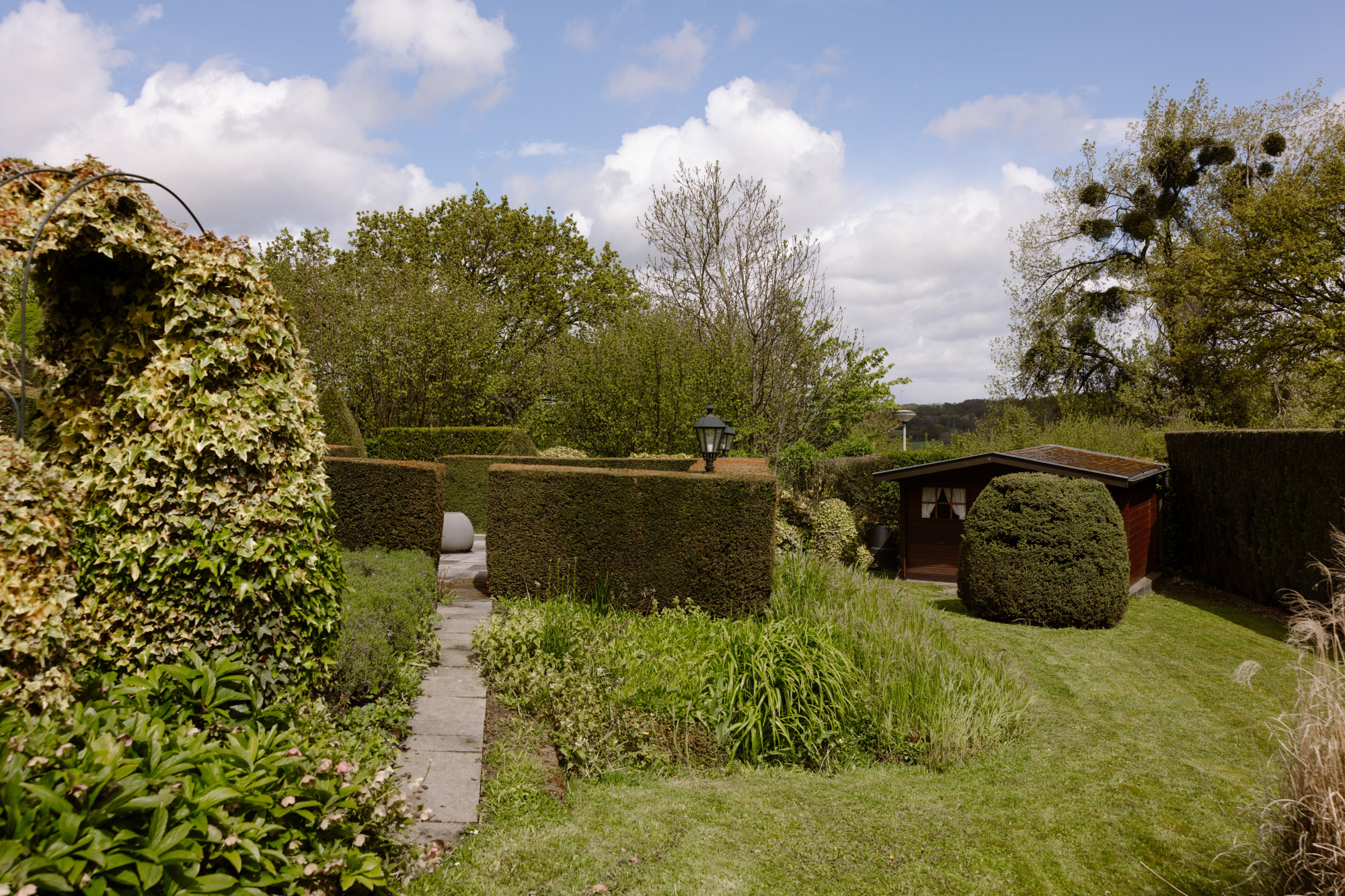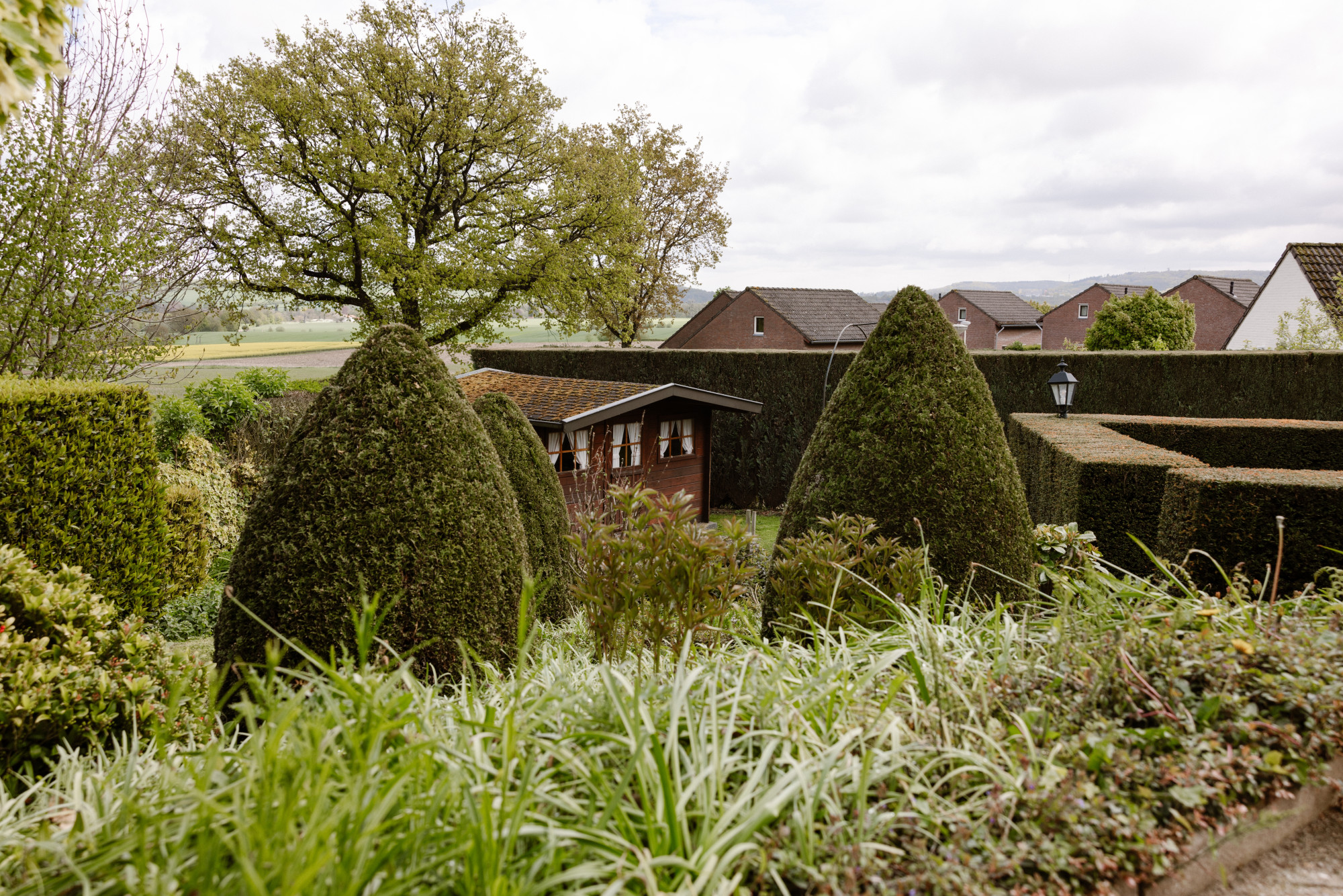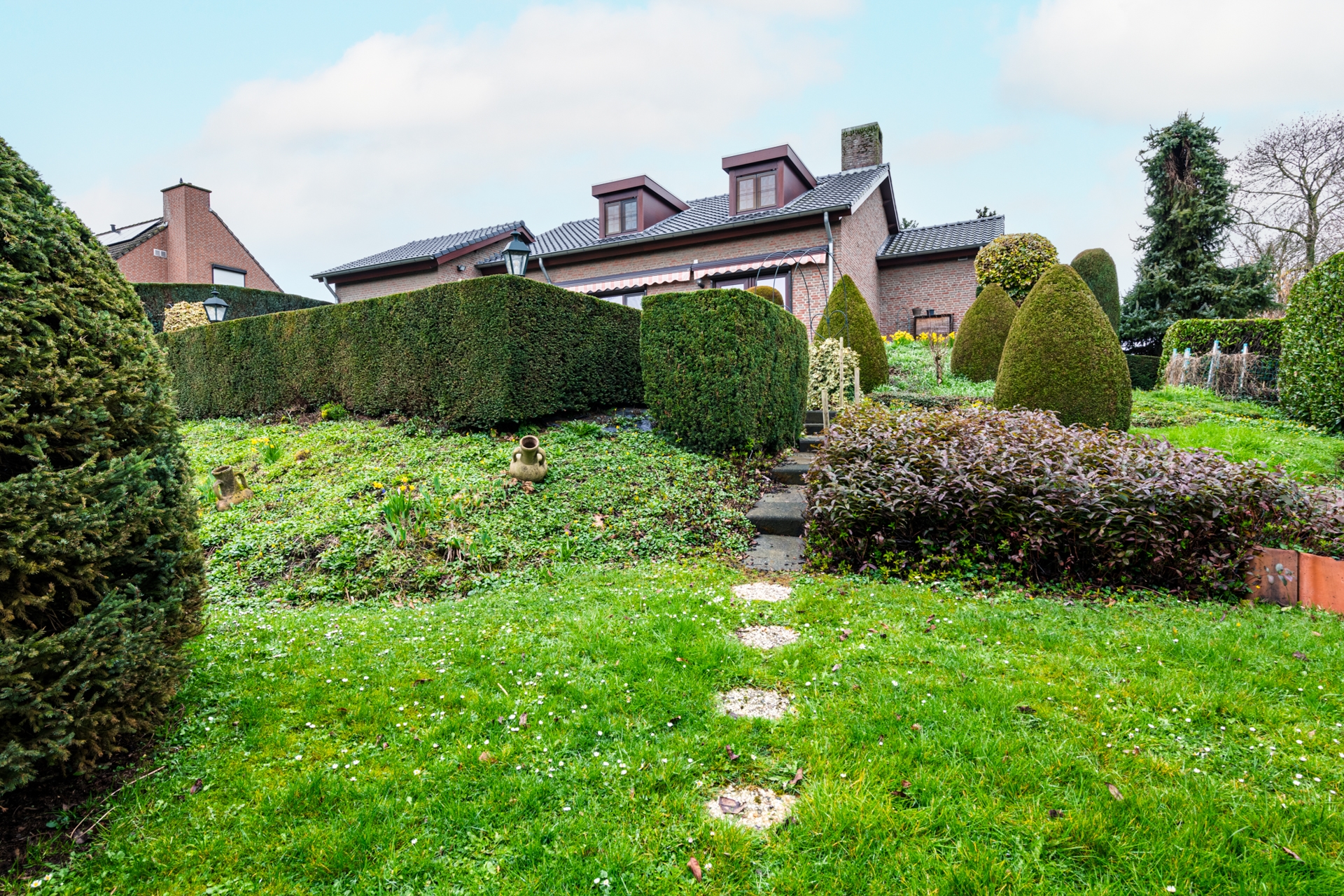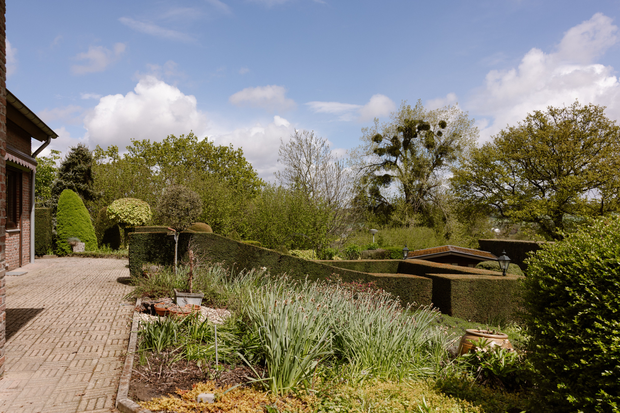 Via de berging en garage is er vanuit de woning toegang tot de achtertuin. Een groot terras tegen de achtergevel zorgt voor beschutting en maakt dat hier van de zon kan worden genoten. Met een betonnen trap kunnen we naar het lager gelegen terrasdeel van de tuin. We zitten tenslotte in het Heuvelland. Nog lager gelegen vinden we het houten tuinhuis (362 x 294 cm) om de tuinmeubels, ligbedden en het tuingereedschap op te bergen en het meest ruime deel van de tuin. Aan beide zijden van de woning zijn zijtuinen, (waarvan 1 met achterom) en de mooi aangelegde voortuin verrijkt de woning in zijn geheel.