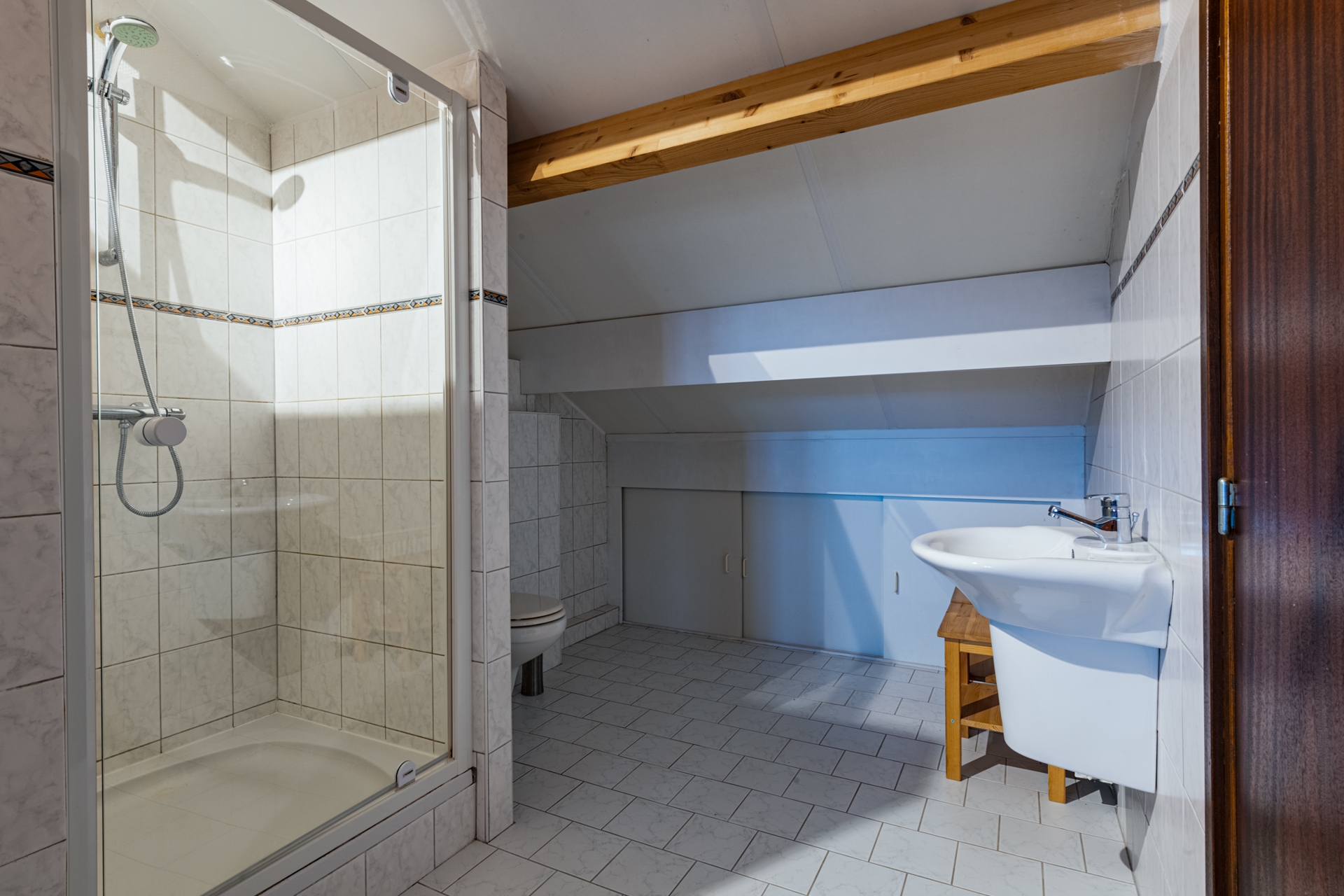 Tussen de slaapkamers bevindt zich de 2e badgelegenheid met douche, toilet en wastafel. Aansluitend nog een extra ruimte van 5 m2 alwaar de cv-ketel geplaatst is en ook nog eens extra bergruimte biedt. De bovenverdieping is dus volledig ‘self supporting’ en zorgt de privacy voor meer luxe.