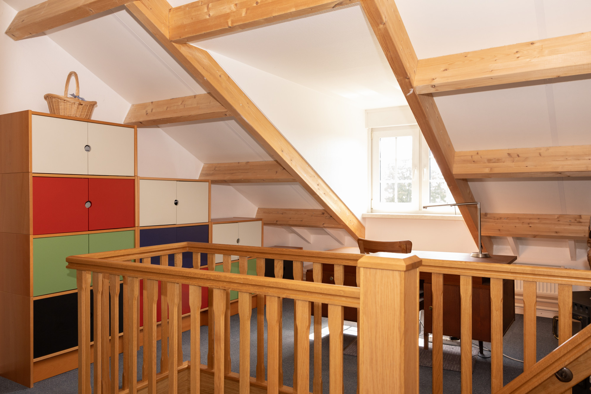 Zeer overzichtelijke overloop met aan de uiteinden van de woning de 2 slaapvertrekken (733 x 398/733 x 375 cm). Zowel de overloop als de grootste slaapkamer zijn voorzien van een dakkapel. Hierdoor ontstaat een zeer ruimtelijk gevoel en fijne lichtinval. Natuurlijk is hier het uitzicht een extra bonus. De dakkapel op de overloop maakt dat hier een fijne werkkamer is ontstaan.