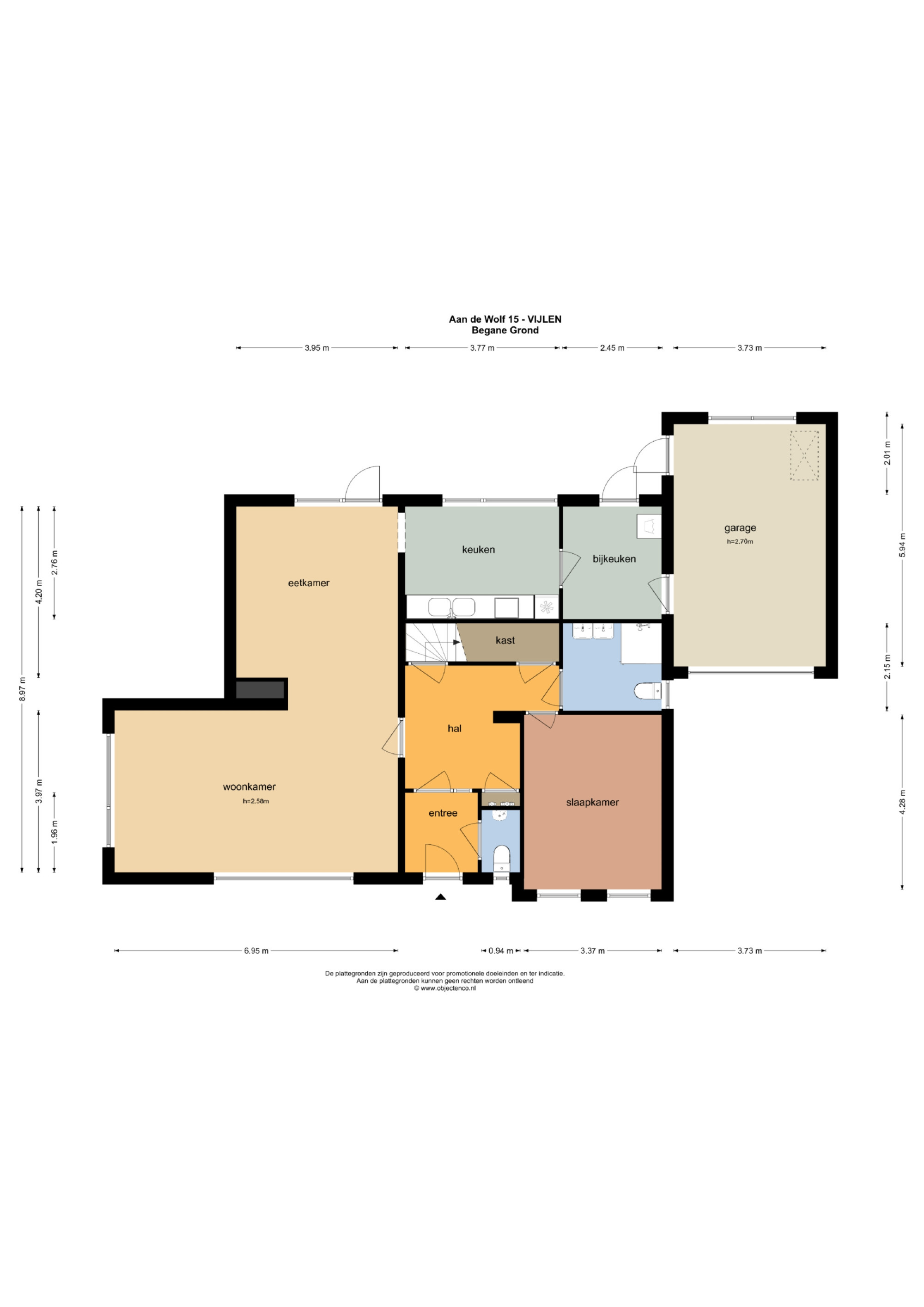 Ontvangsthal met toilet en daarachter de vestibule voorzien van garderobe, toegang tot de woonkamer, gesloten trapopgang, ouderslaapkamer en badkamer.