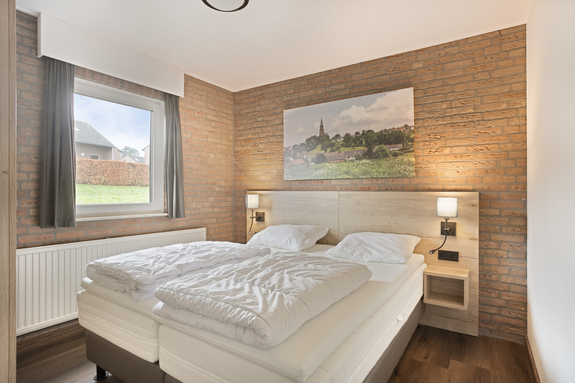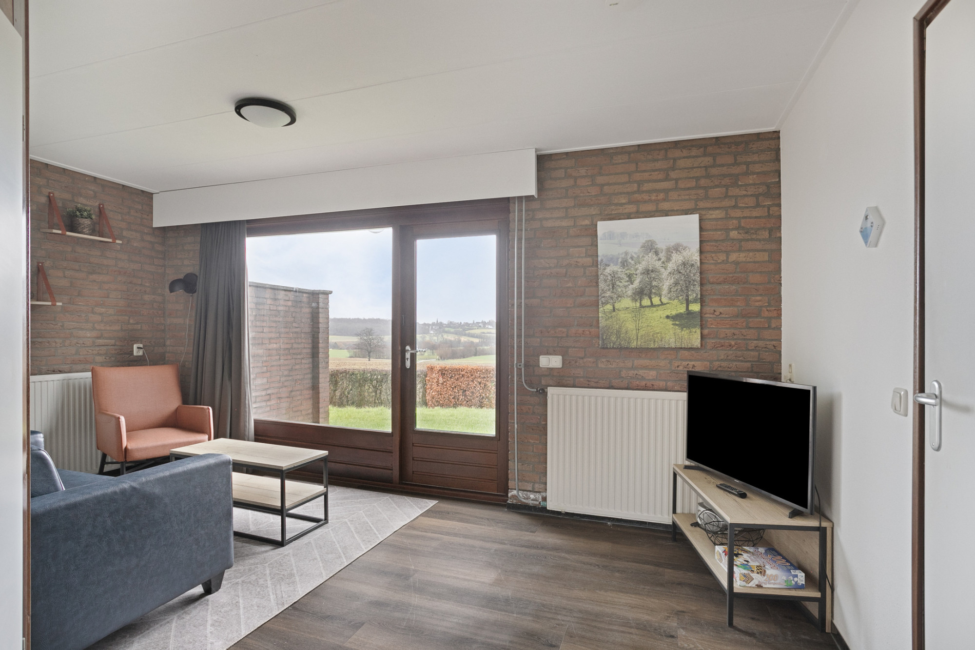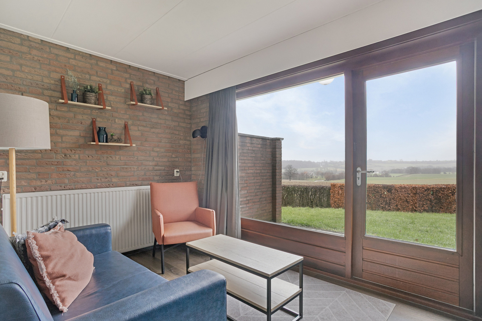 Kleine hal met de toegang tot de badkamer met vaste wastafel, toilet, designradiator en douchecabine. Vanuit de hal kom je in de woonkamer waarvan je een prachtig uitzicht hebt op de omgeving. De openkeuken uitgerust met inductiekookplaat, vaatwasser, afzuigkap, koelkast met vriesvak en combimagnetron. In de keukenstaat een gezellige eettafel met uitzicht naar buiten. Er is een ruime tweepersoonsslaapkamer met boxspringbedden en hang en legkast. Vanaf het terras wat toegankelijk is vanuit de woonkamer heeft men prachtig uitzicht op Duitsland en het glooiende landschap. Naast de ingang is nog een kleine berging waar de cv-installatie is ondergebracht.