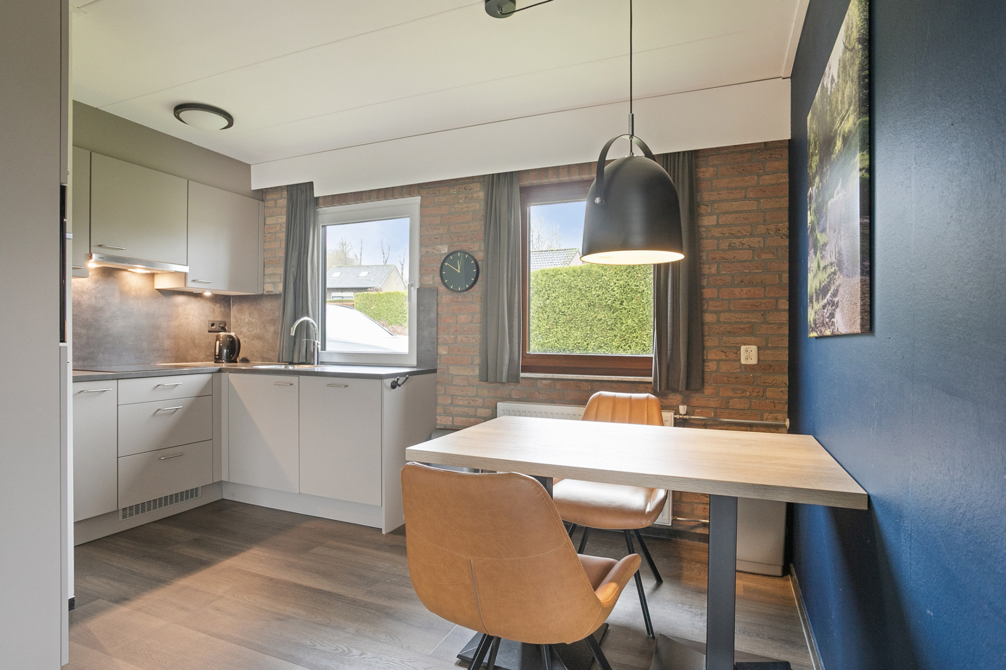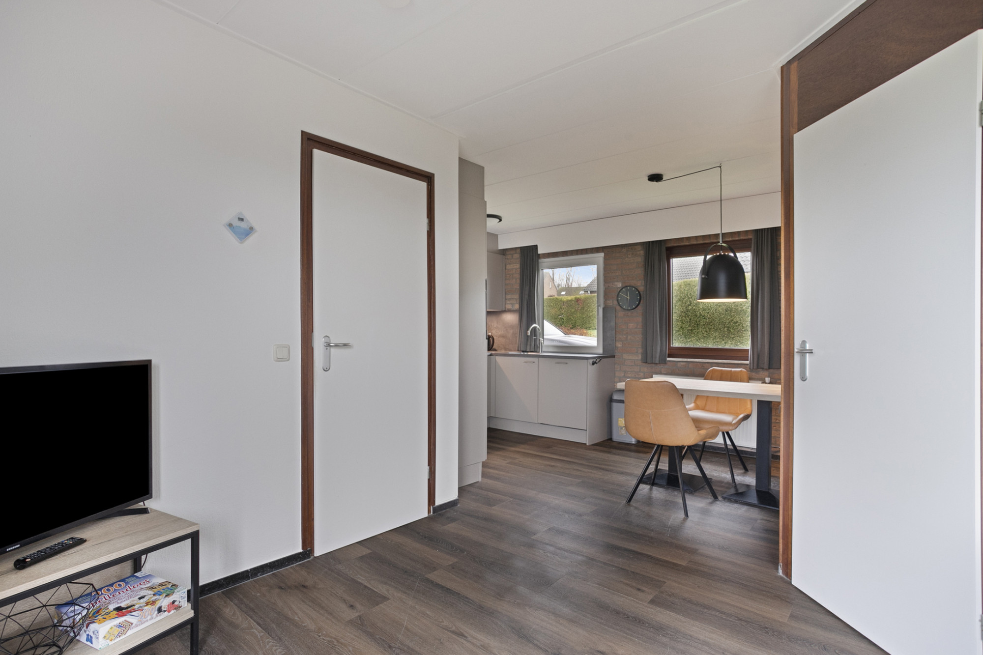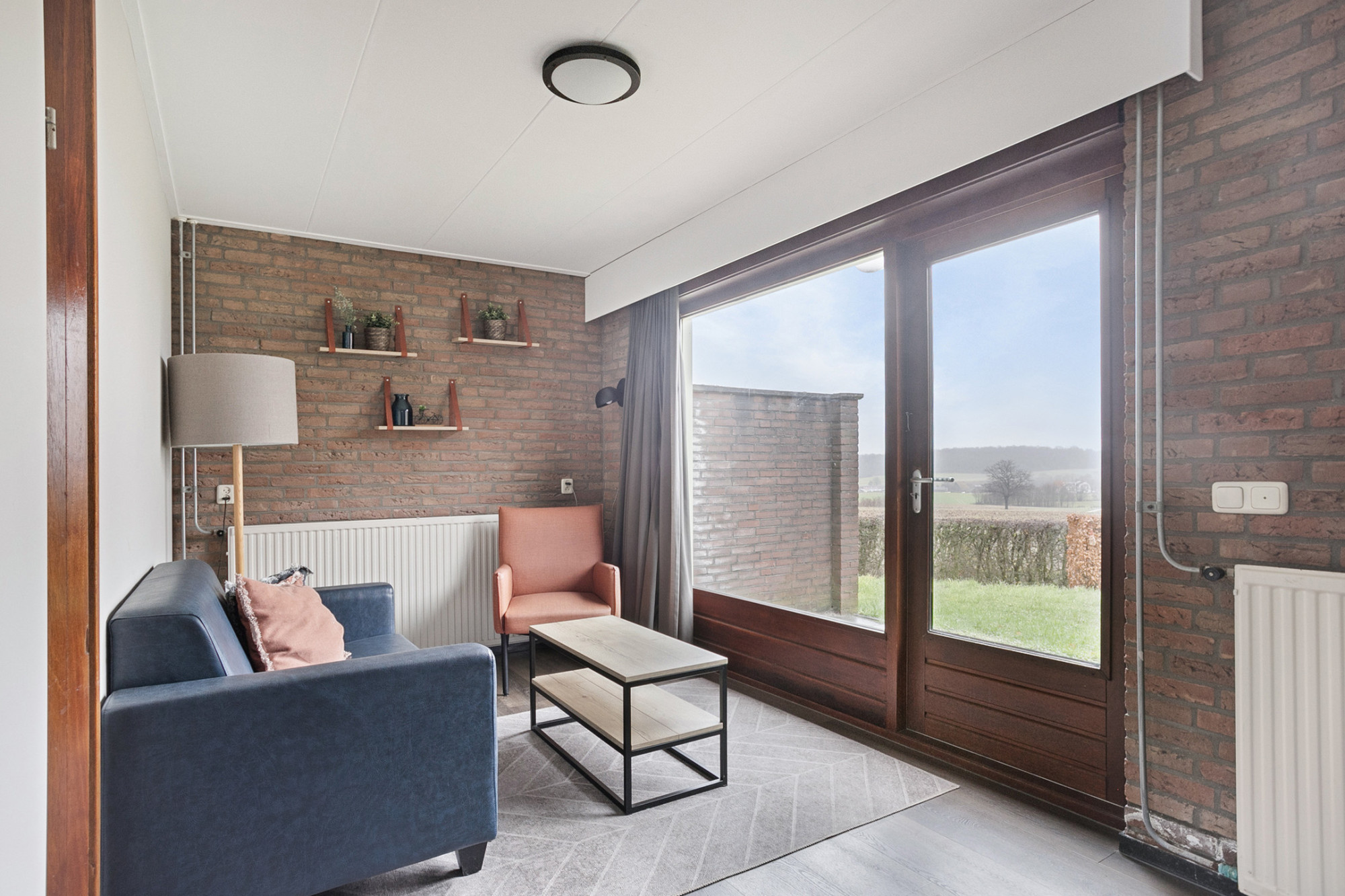 Kleine hal met de toegang tot de badkamer met vaste wastafel, toilet, designradiator en douchecabine. Vanuit de hal kom je in de woonkamer waarvan je een prachtig uitzicht hebt op de omgeving. De openkeuken uitgerust met inductiekookplaat, vaatwasser, afzuigkap, koelkast met vriesvak en combimagnetron. In de keukenstaat een gezellige eettafel met uitzicht naar buiten. Er is een ruime tweepersoonsslaapkamer met boxspringbedden en hang en legkast. Vanaf het terras wat toegankelijk is vanuit de woonkamer heeft men prachtig uitzicht op Duitsland en het glooiende landschap. Naast de ingang is nog een kleine berging waar de cv-installatie is ondergebracht.