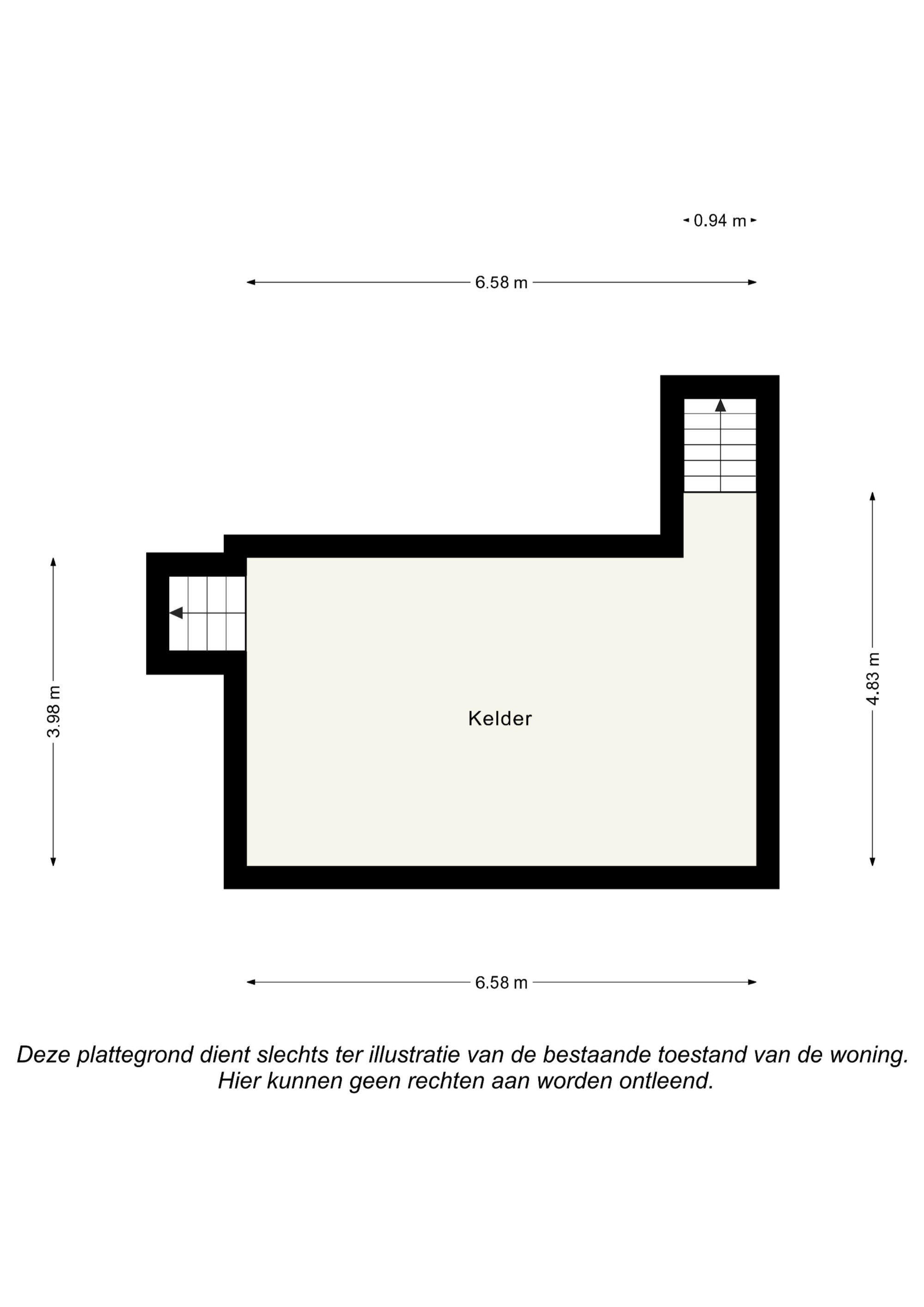 Kelder (6,68 m x 3,98 m) met trap naar tuin