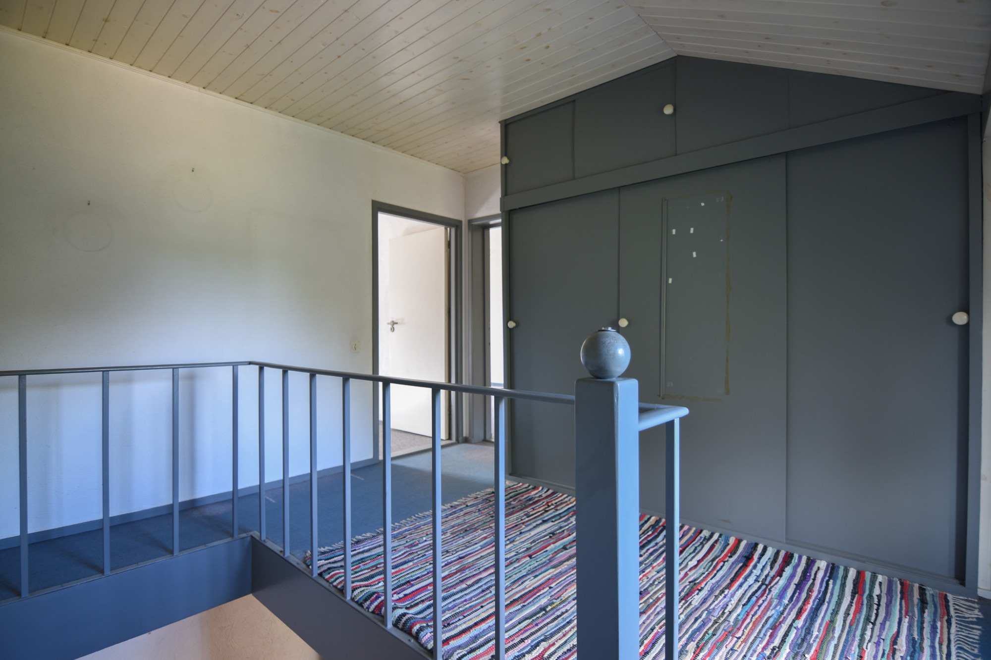 Middels vaste trap te bereiken overloop met muurkast.