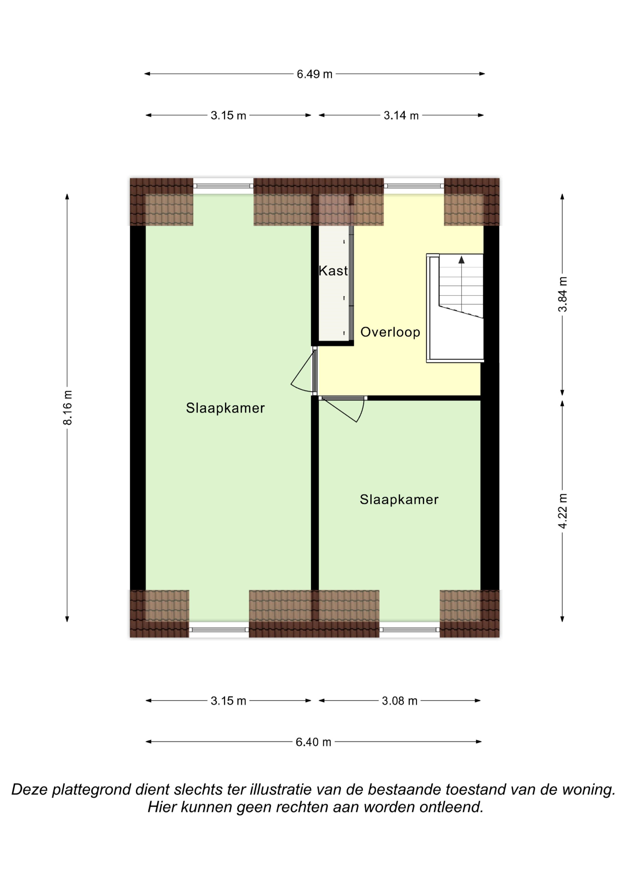 Op deze verdieping bevinden zich 2 slaapkamers (8,16m x 3,15m) + ( 4,22m x 3,08m)