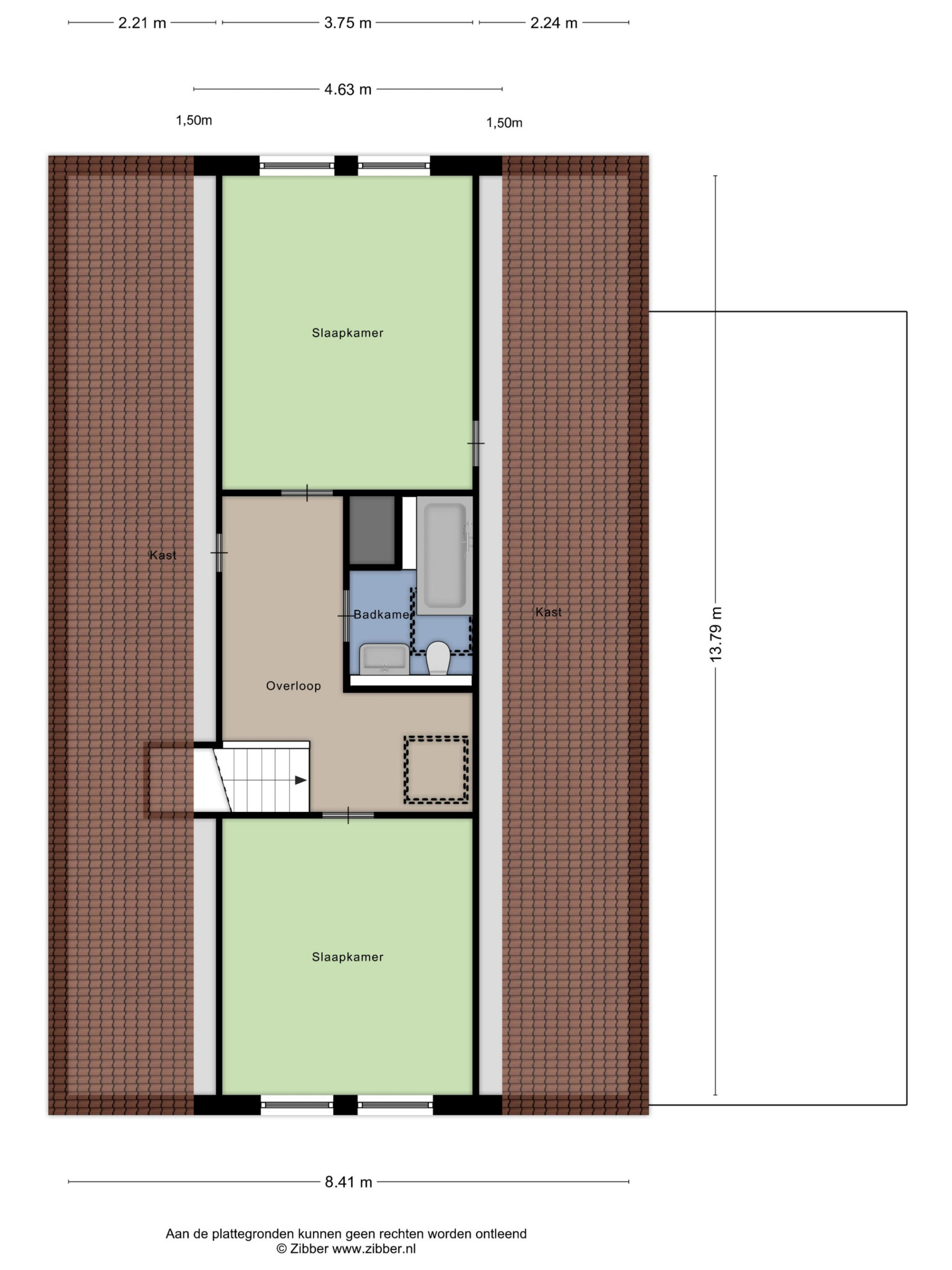 2 Slaapkamers met nokhoogte van circa 3.50 meter.
