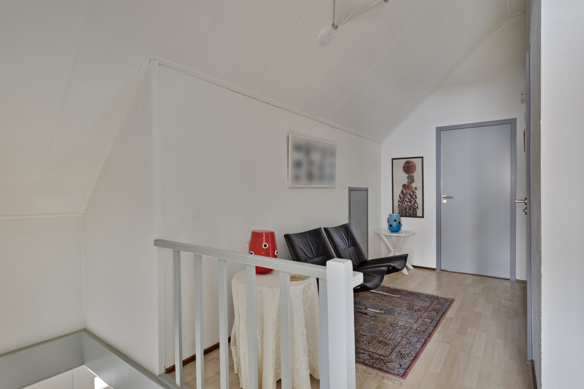 Ontvangsthal (circa 15 m2) voorzien van parketvloer en met trap naar verdieping.