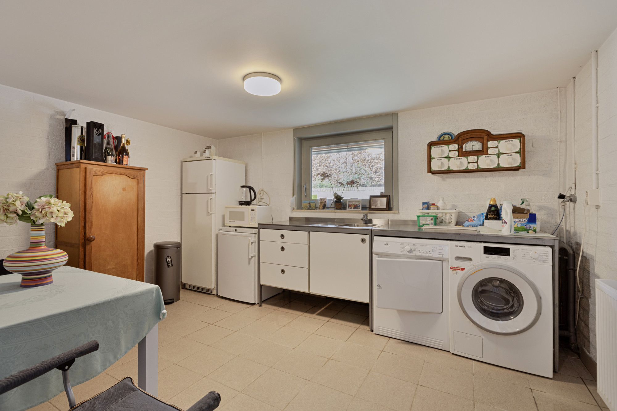 Bijkeuken (4.03 x 3.22 m) voorzien van tegelvloer en met extra keukeninrichting en opstelling witgoed.