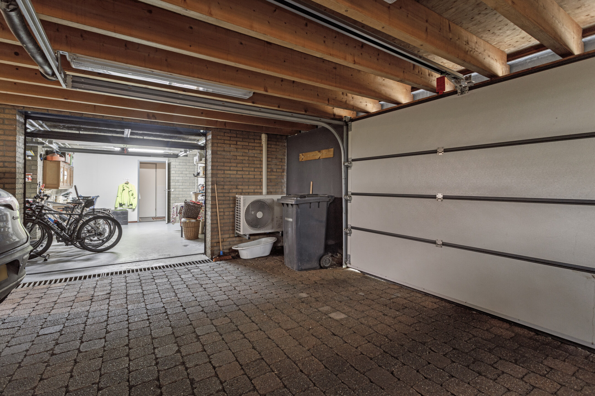 Garage 1/berging (5.58 x 4.04 m) Met elektrisch bedienbare sectionaalpoort en extra gootsteen.