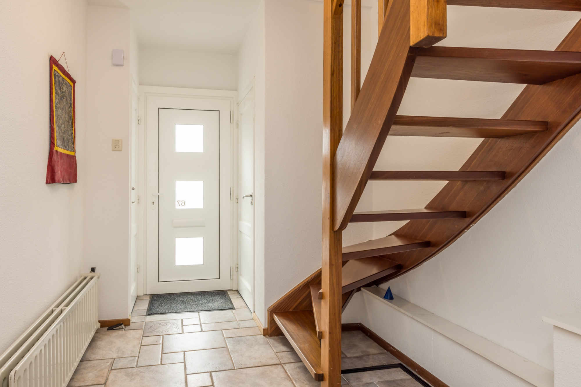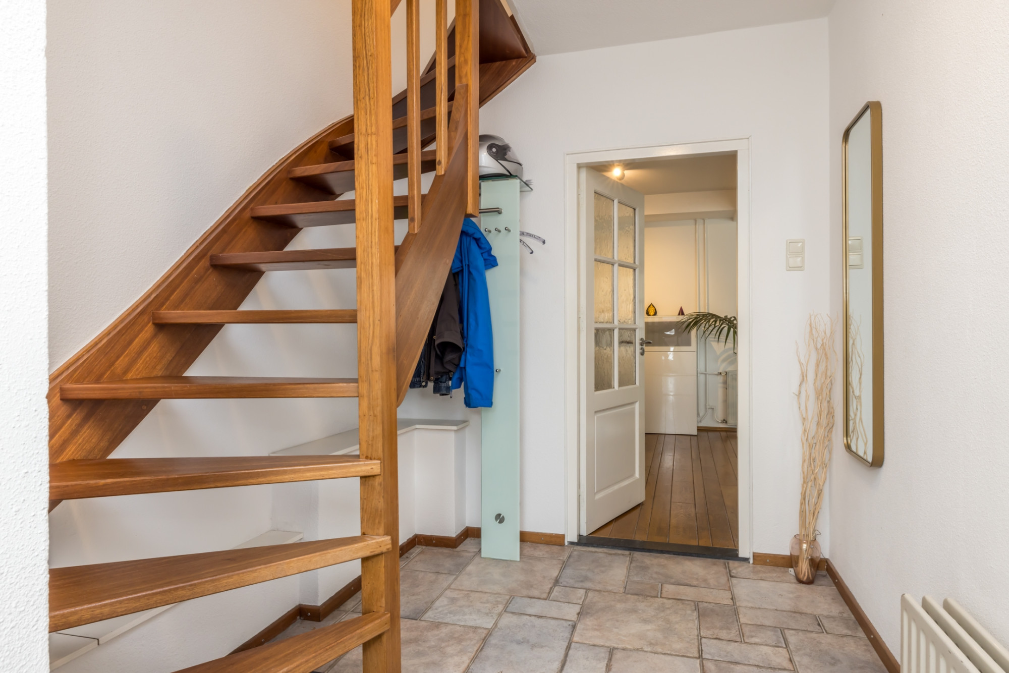 Entree. Hal met tegelvloer, meterkast, trapopgang en toegang naar de woonkamer.