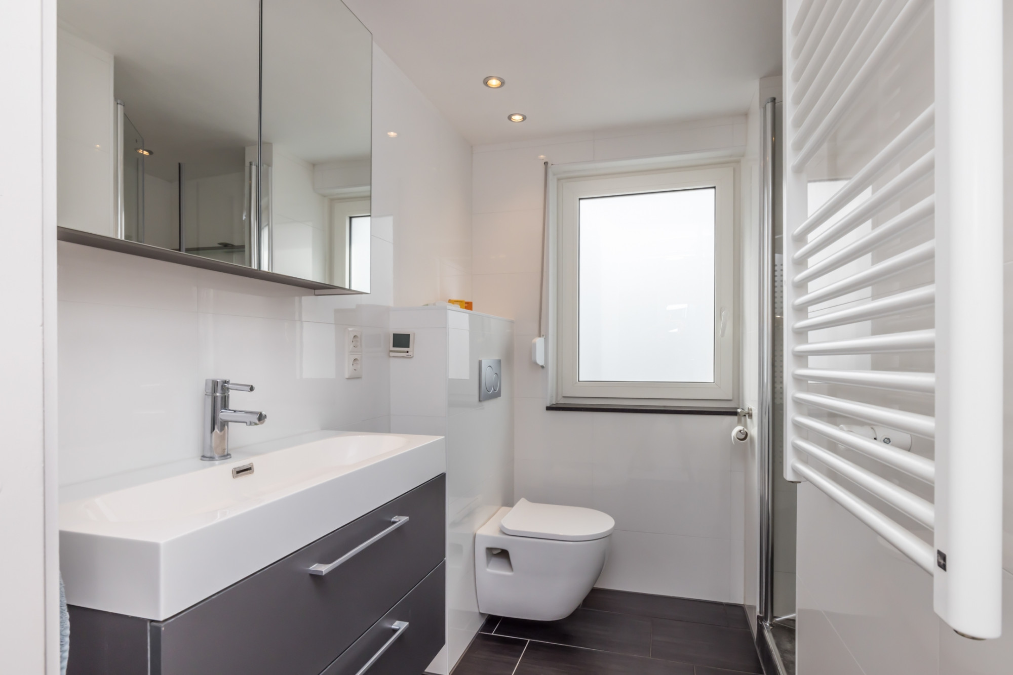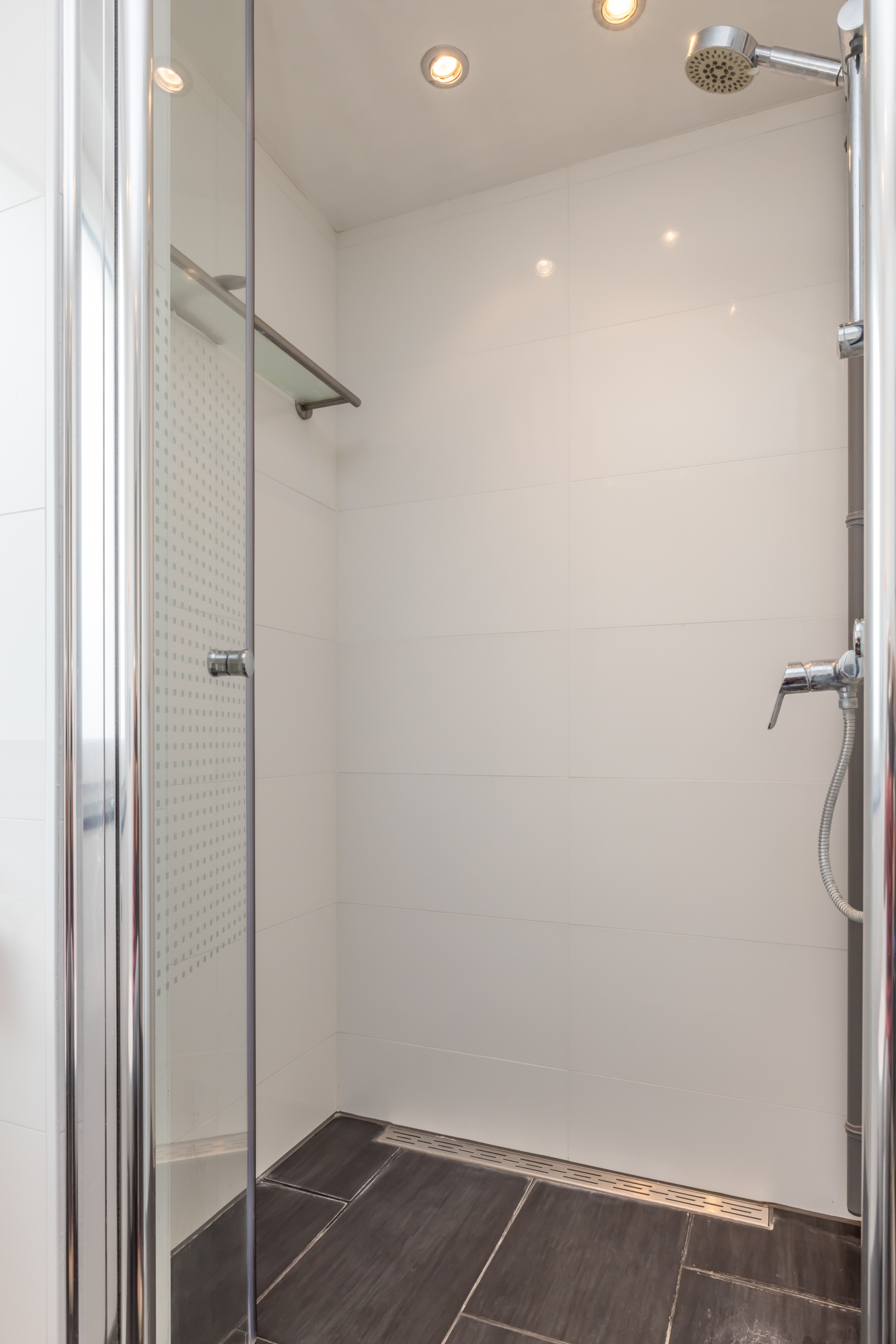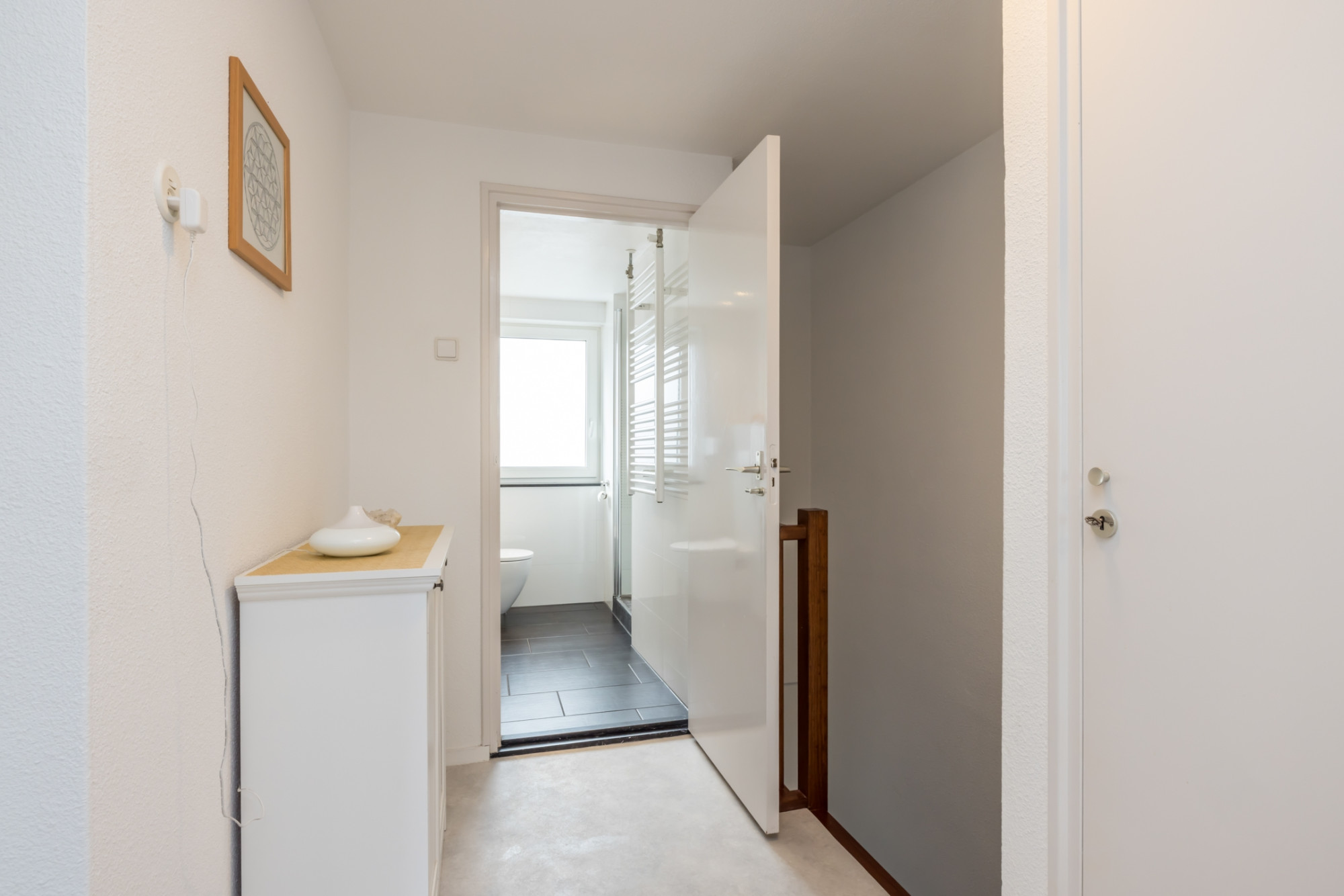 De badkamer is uitgerust met een inloopdouche, 2e toilet en wastafel.