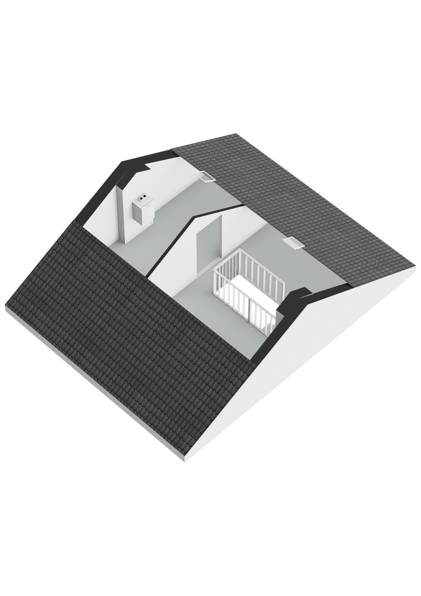 Middels vaste trap te bereiken zolderverdieping. Deze ruimte heeft een nokhoogte van ca. 2,54 meter en leent zich hierdoor perfect om als (4e) slaapkamer te gaan gebruiken. Tevens is hier de eigendom cv-ketel + hybride warmtepomp aangesloten.
