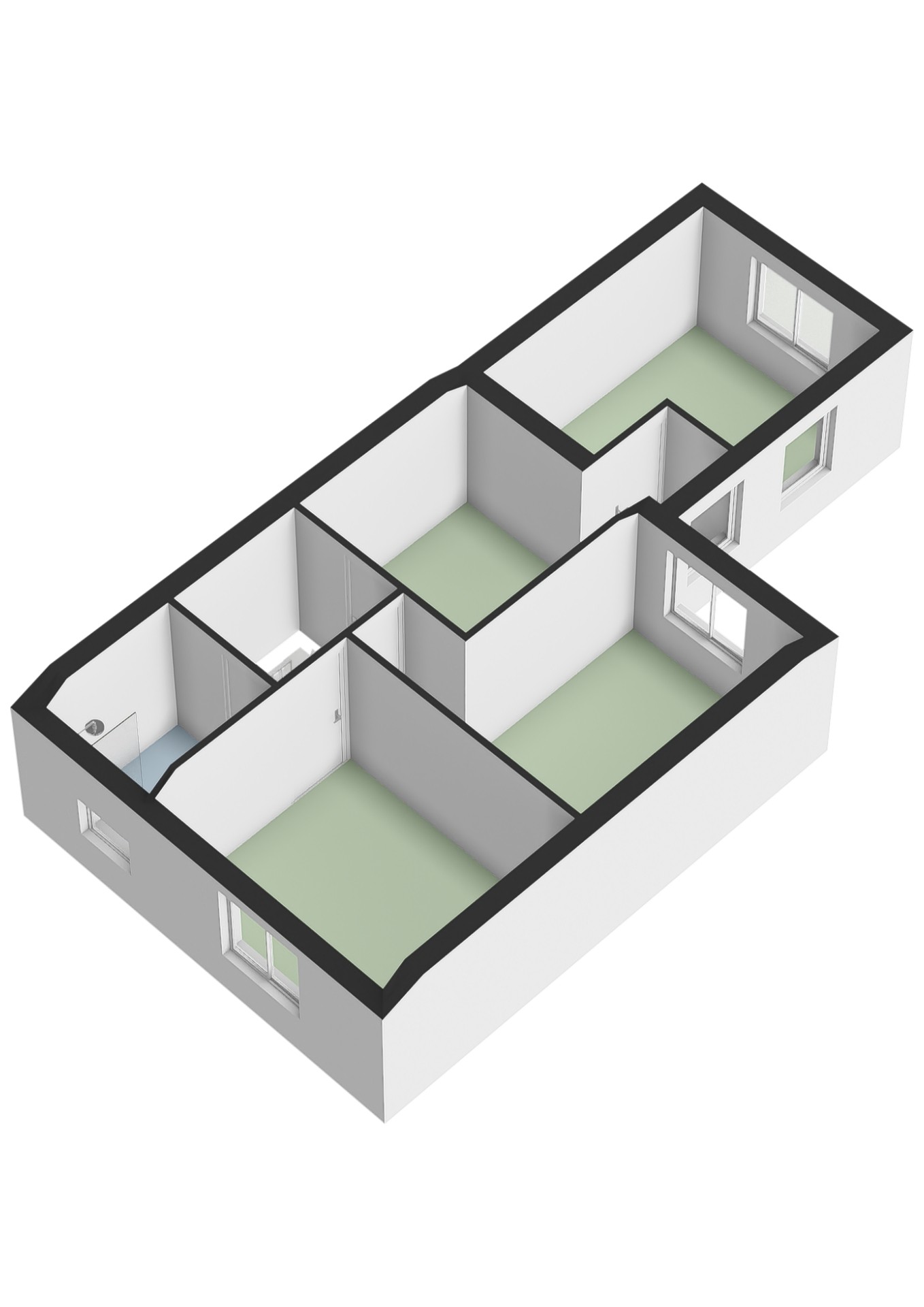Overloop met toegang tot 3 slaapkamers en badkamer.