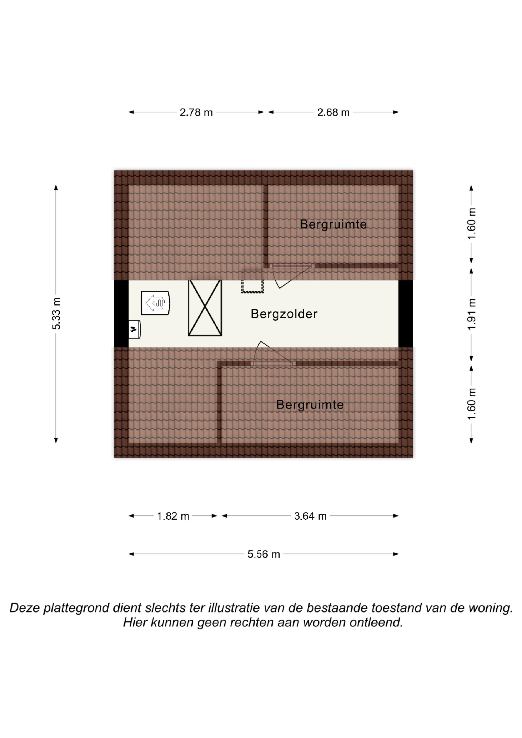 Middels vlizotrap te bereiken royale bergzolder alwaar cv- ketel.