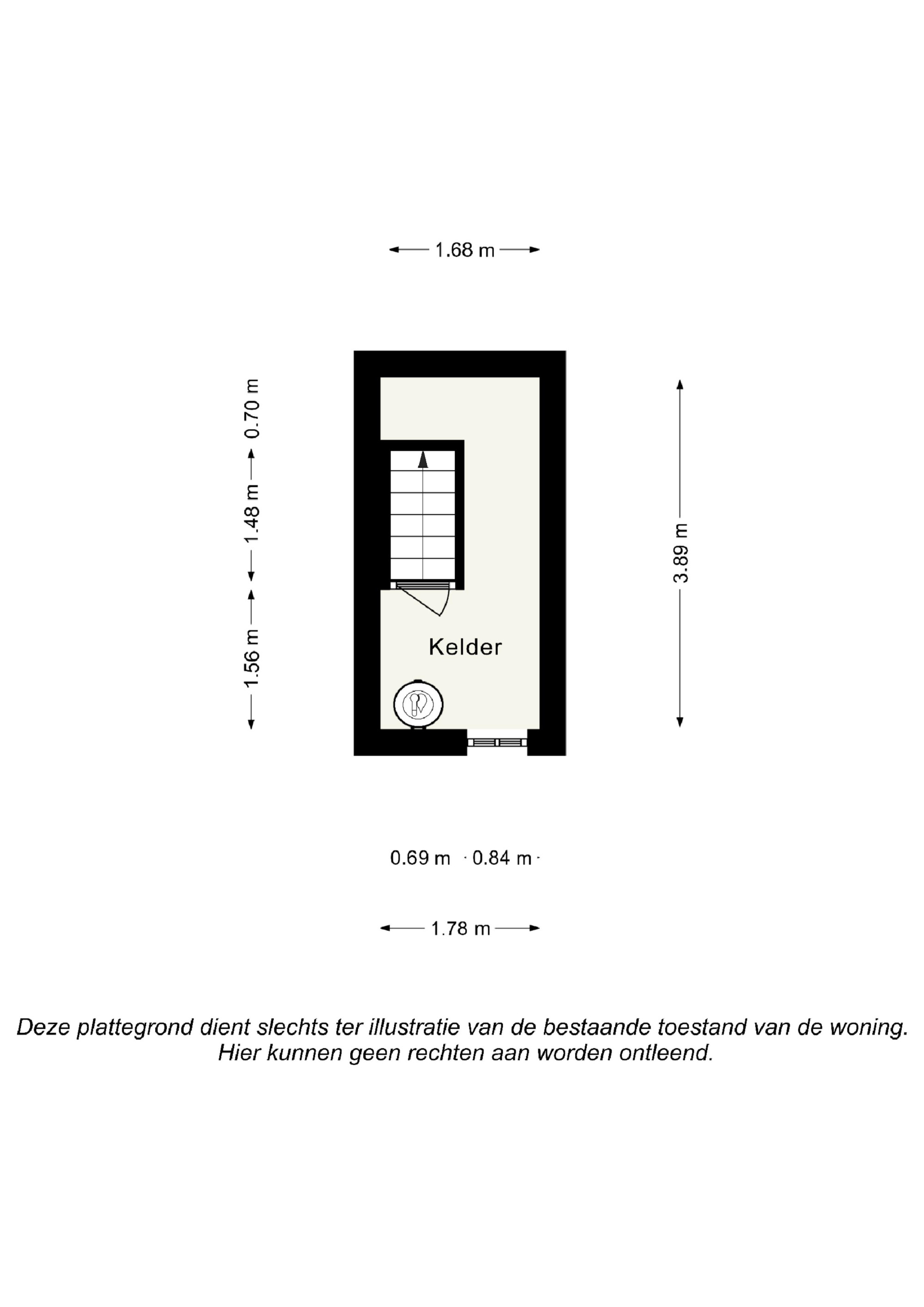 Vanuit de hal te bereiken provisiekelder (3,89 m x 1,79 m) alwaar aansluiting voor witgoedapparatuur.