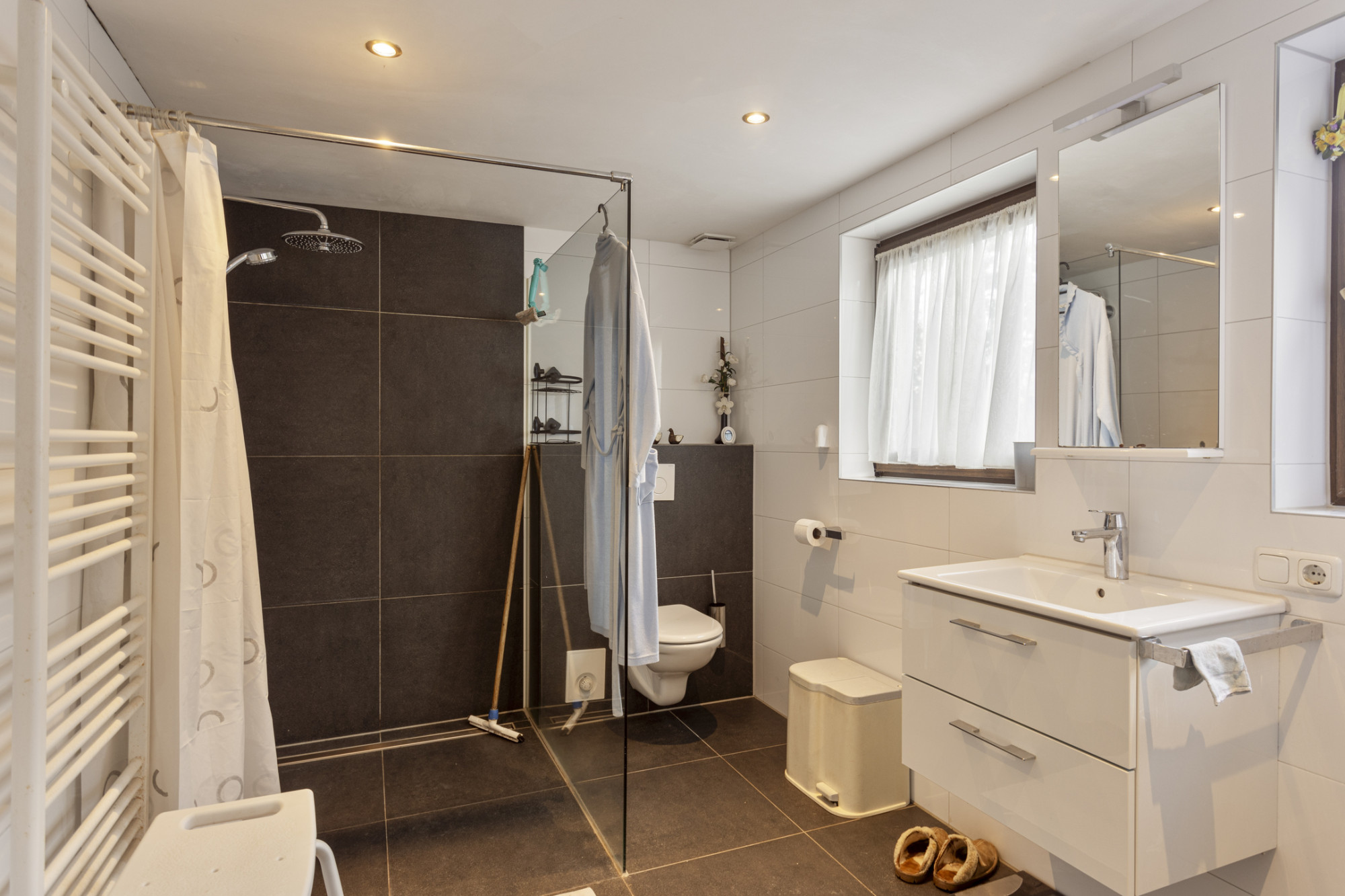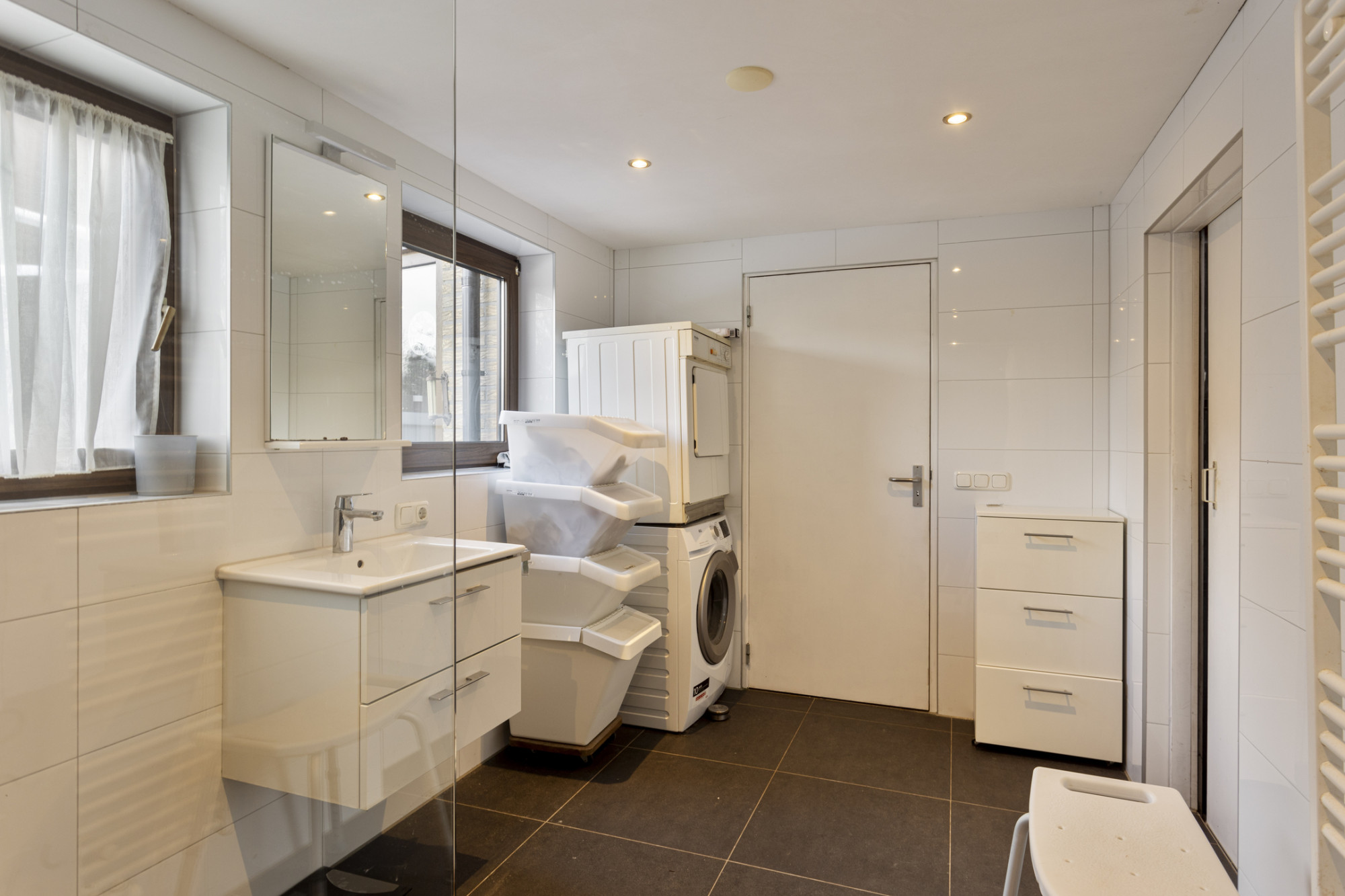 Woonkamer voorzien van parketvloer. Separate keuken met een keukeninstallatie in hoekopstelling en diverse inbouwapparatuur. Doorloop naar een multifunctionele aanbouw, die toegang geeft naar het terras en de achtertuin. Deze aanbouw heeft tevens een doorgang naar een ruime badkamer op de begane grond met royale inloopdouche, 2e toilet en aansluitpunten wasapparatuur. De badkamer is voorzien van vloerverwarming.