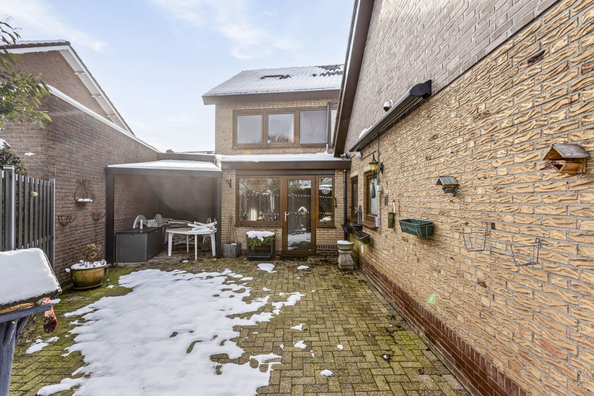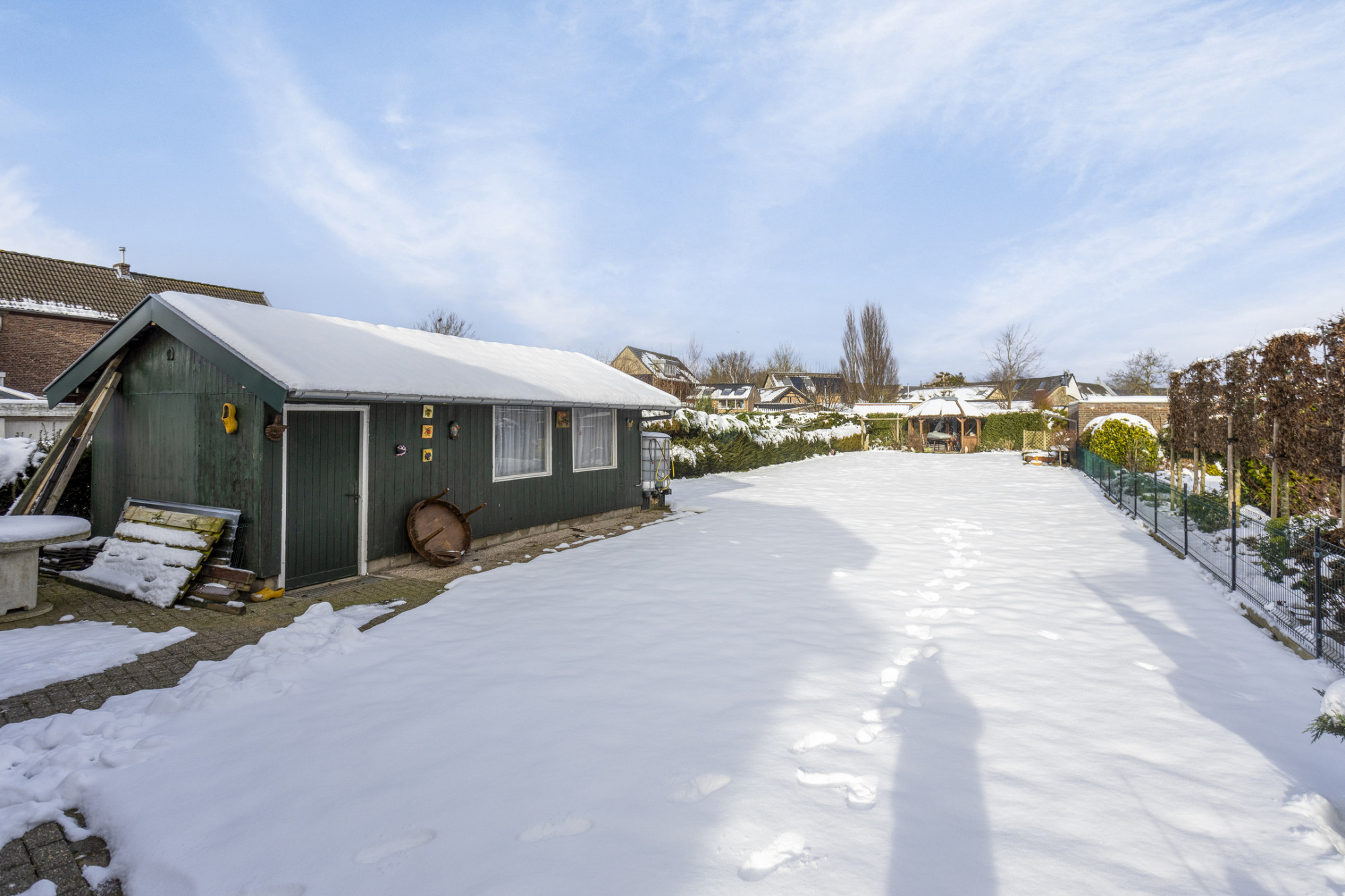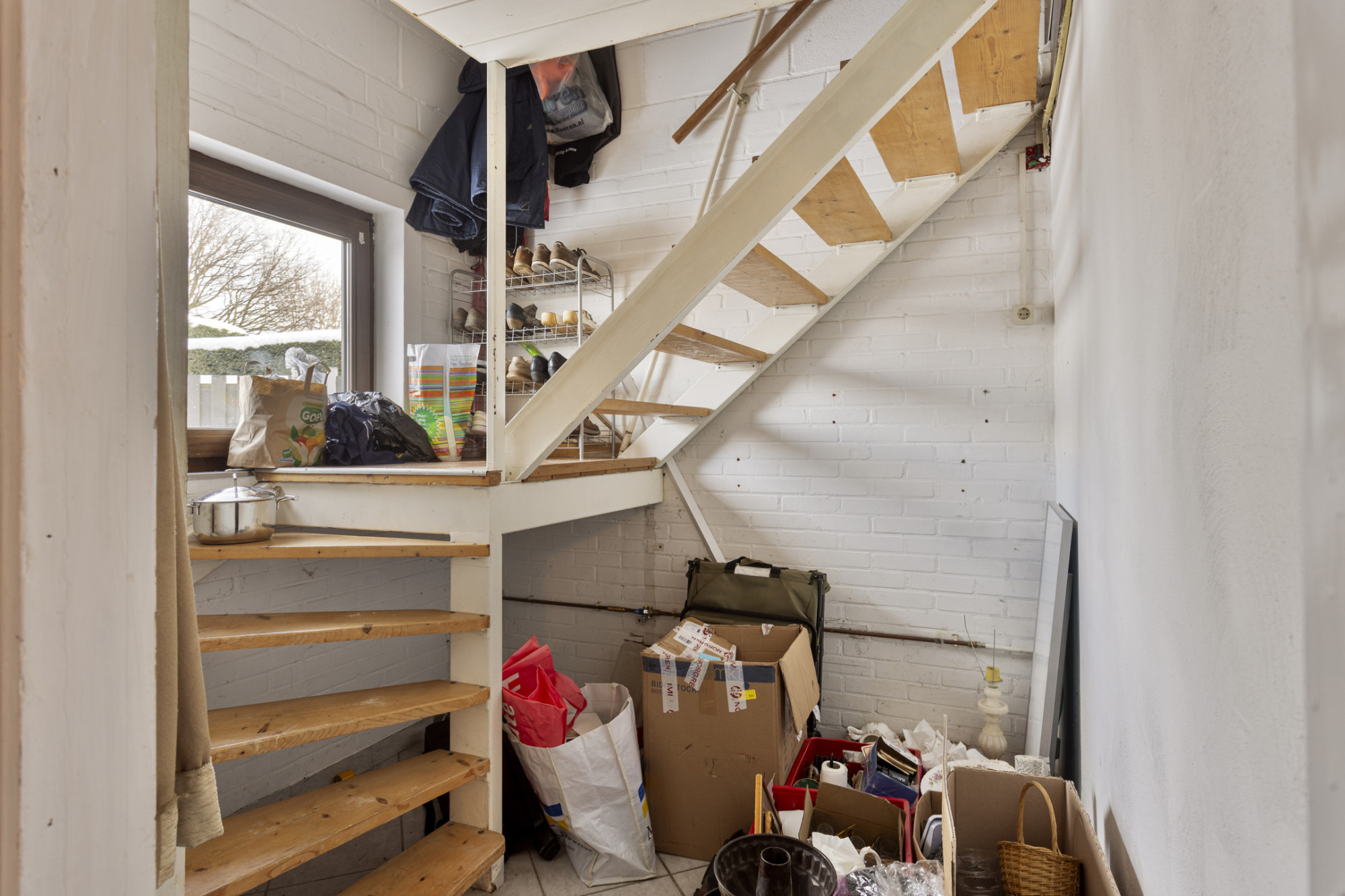 Naast de woning gelegen en zowel inpandig als via de oprit, is de garage te bereiken. De garage heeft aan de achterzijde een loopdeur naar de tuin en beschikt via een vaste trap over een prima te gebruiken verdieping met dakisolatie en dakraam.