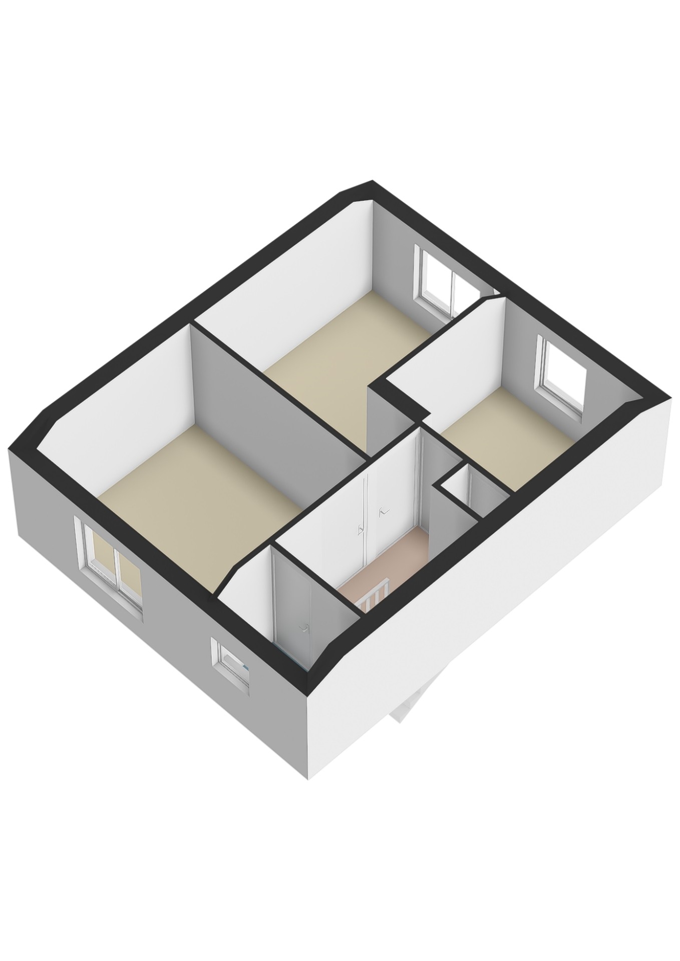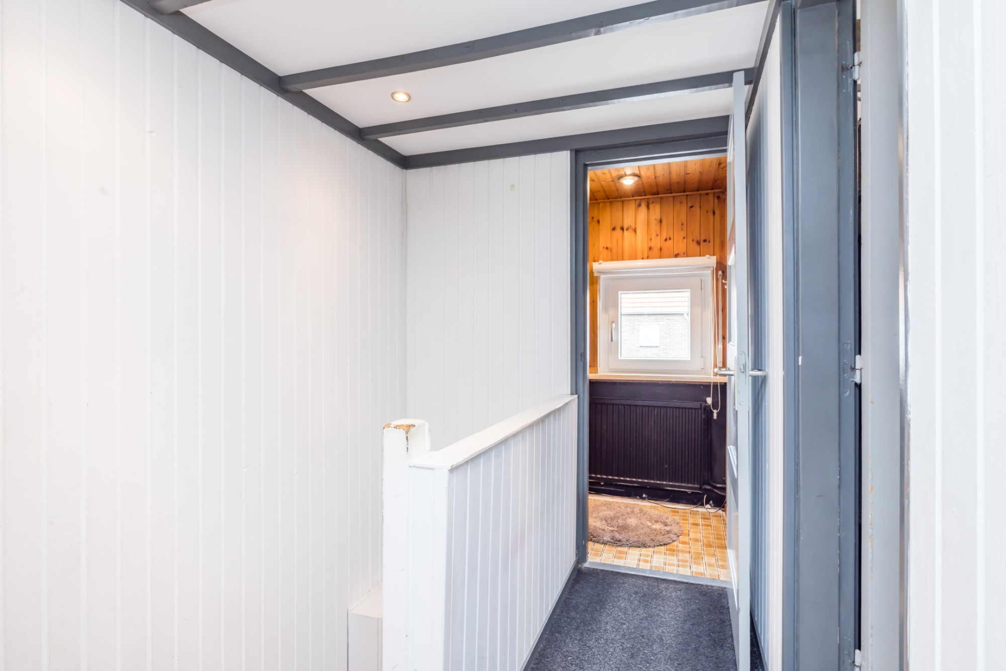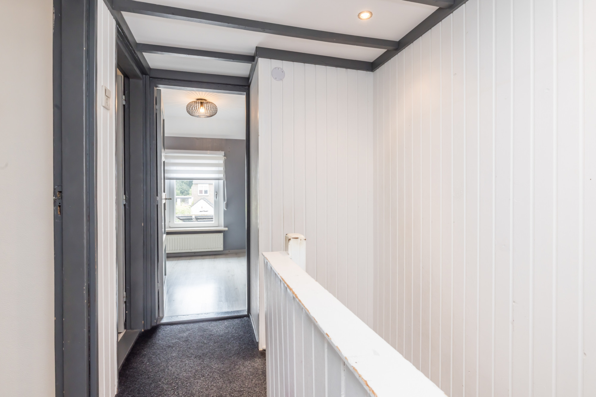 Overloop met 3 ruime slaapkamers en een separate ruimte voorzien van een wastafel.