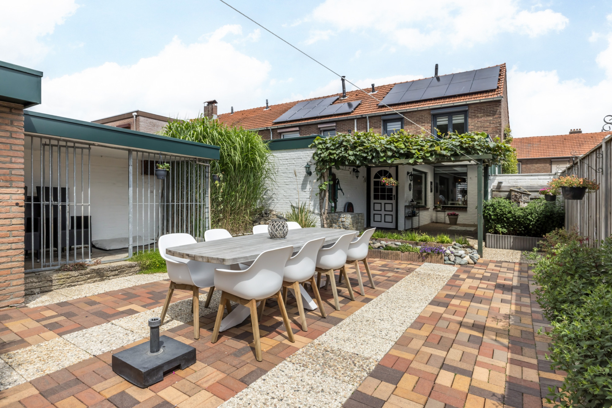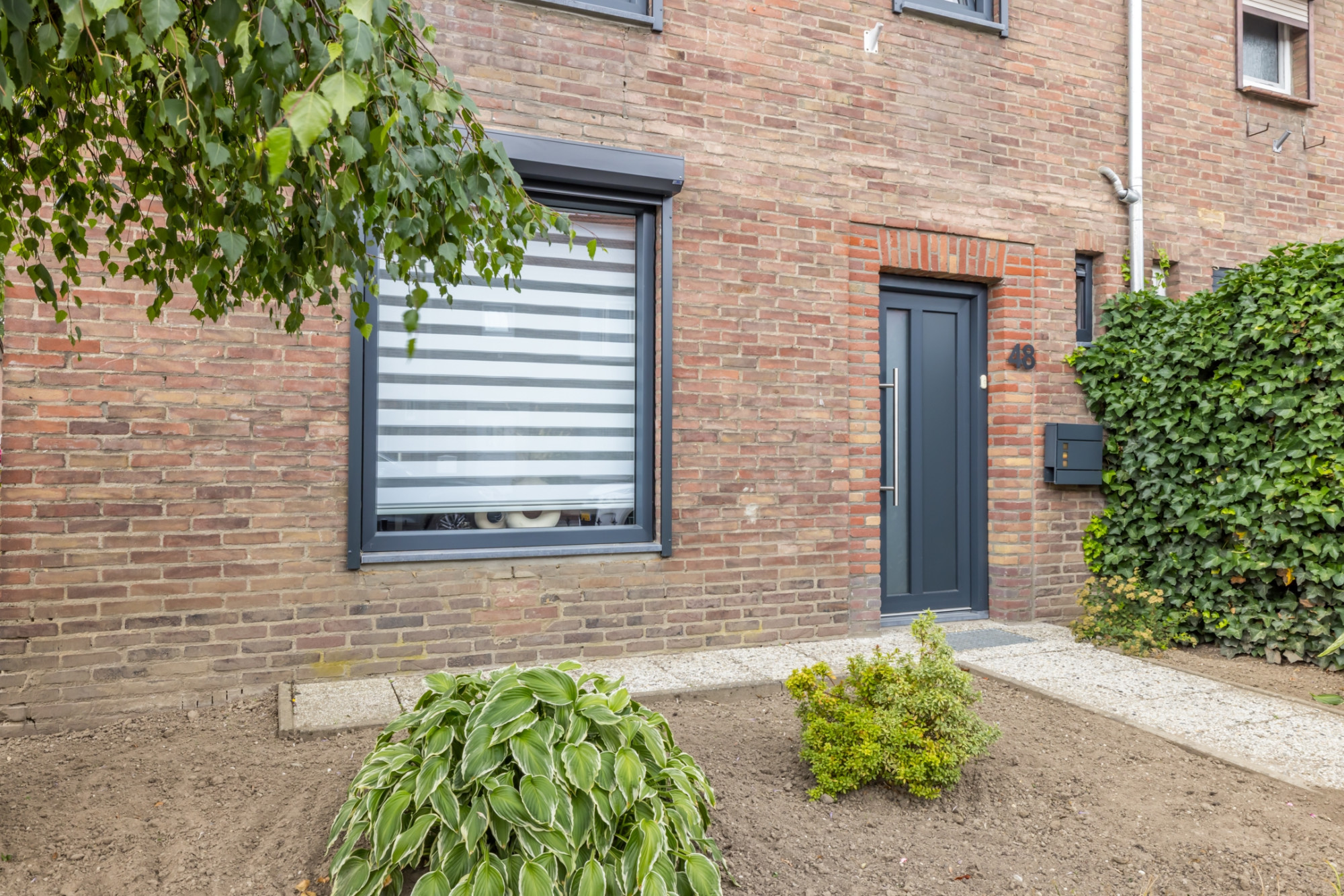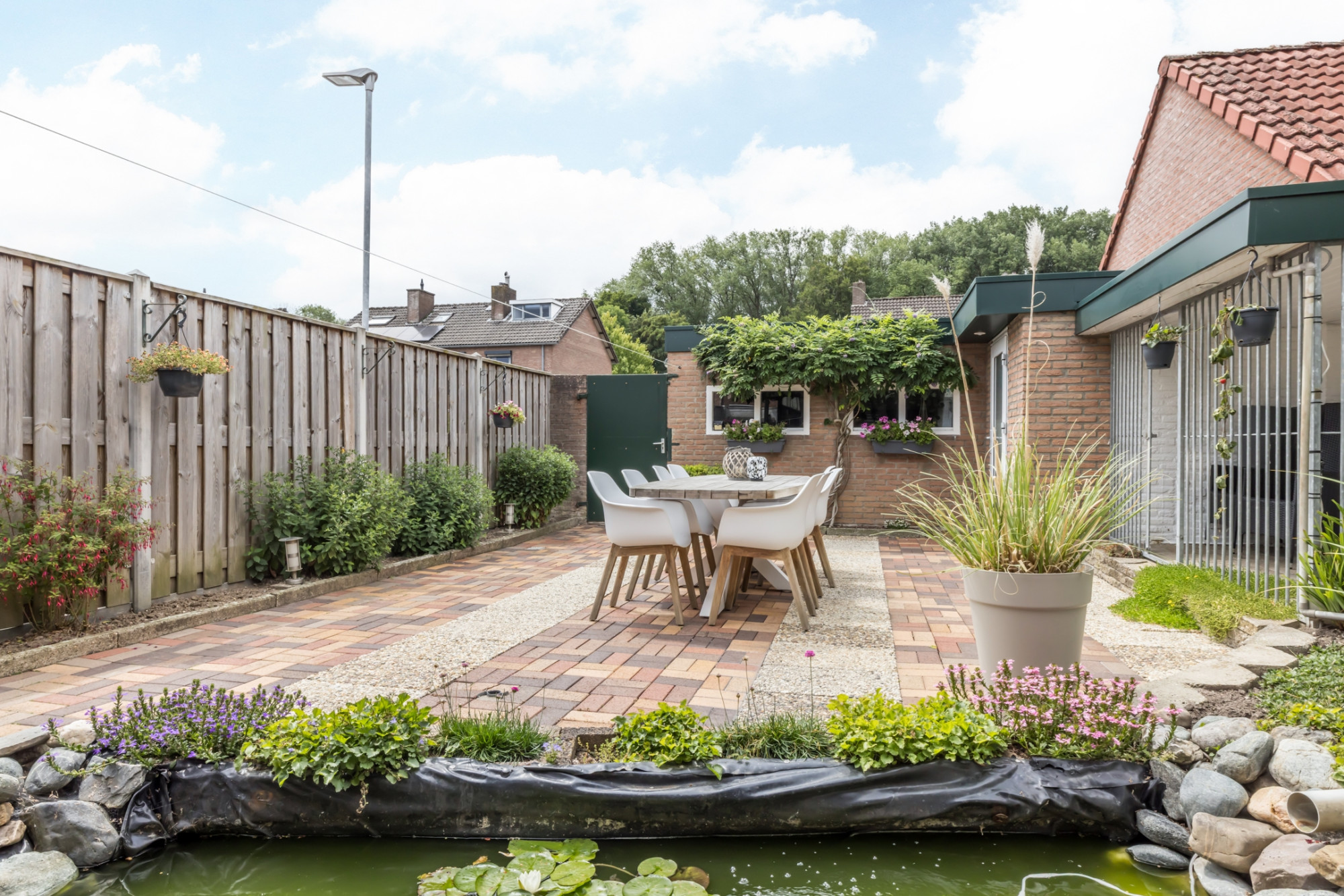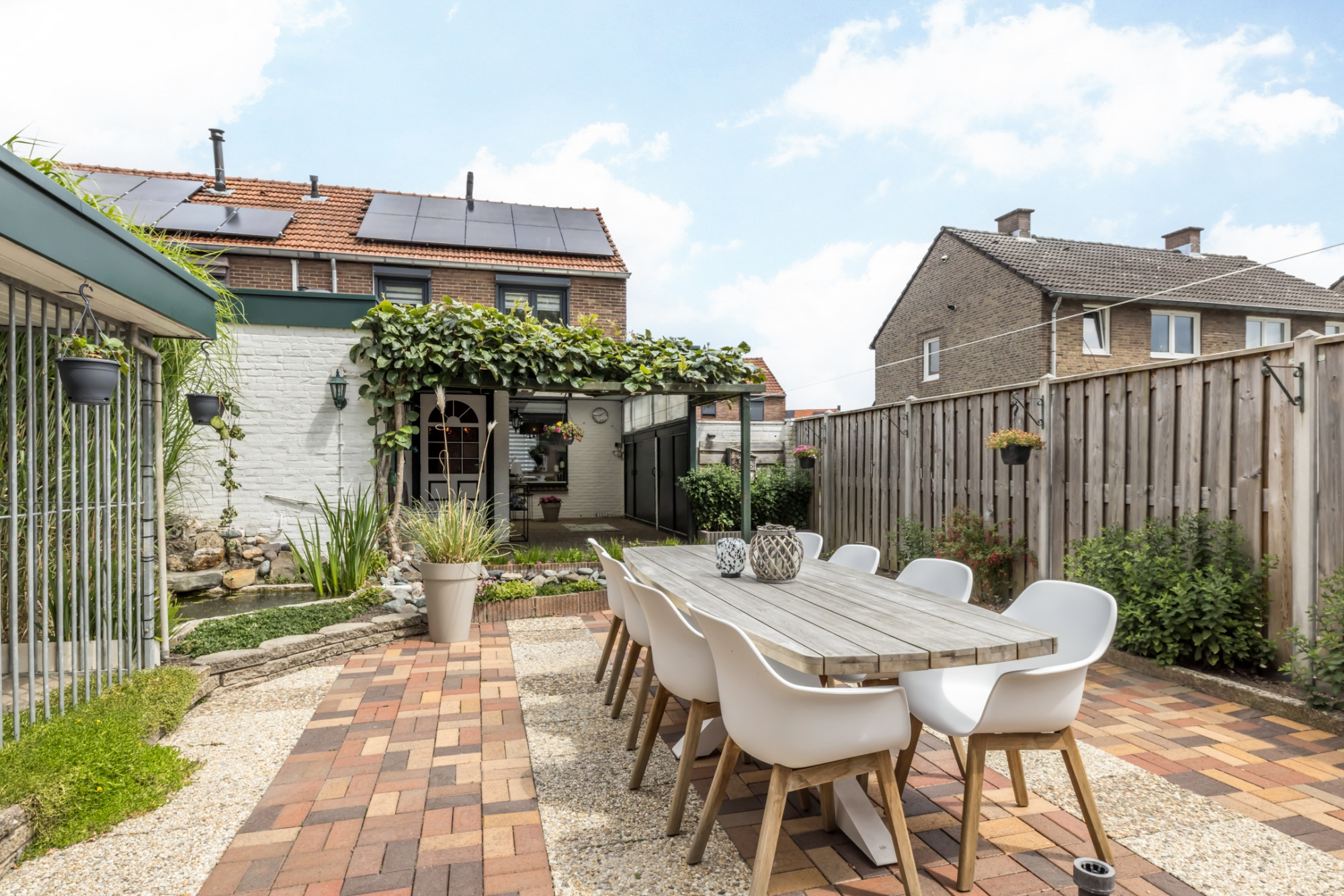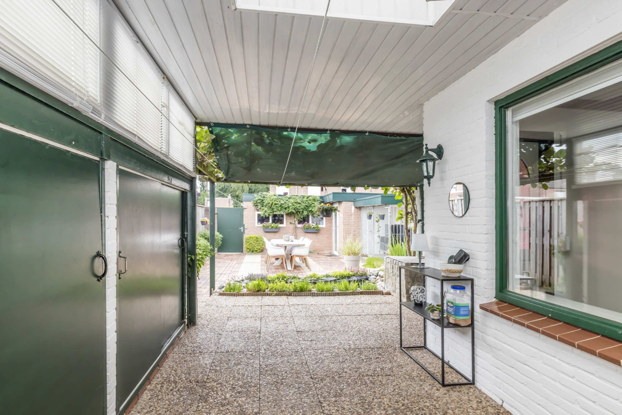 - Onderhoudsvriendelijke voor- en achtertuin met achterom ingang