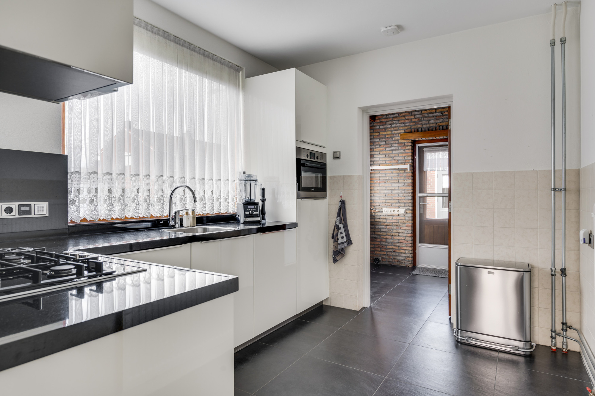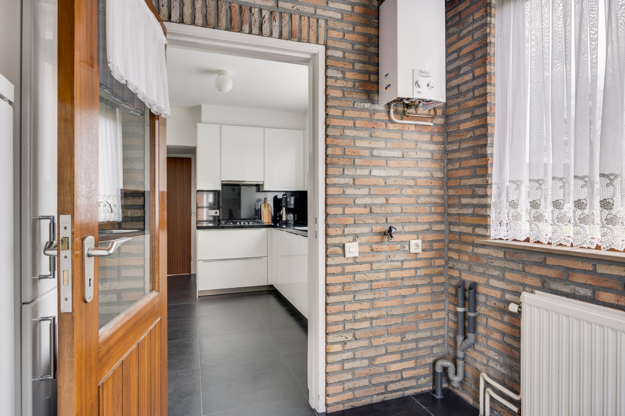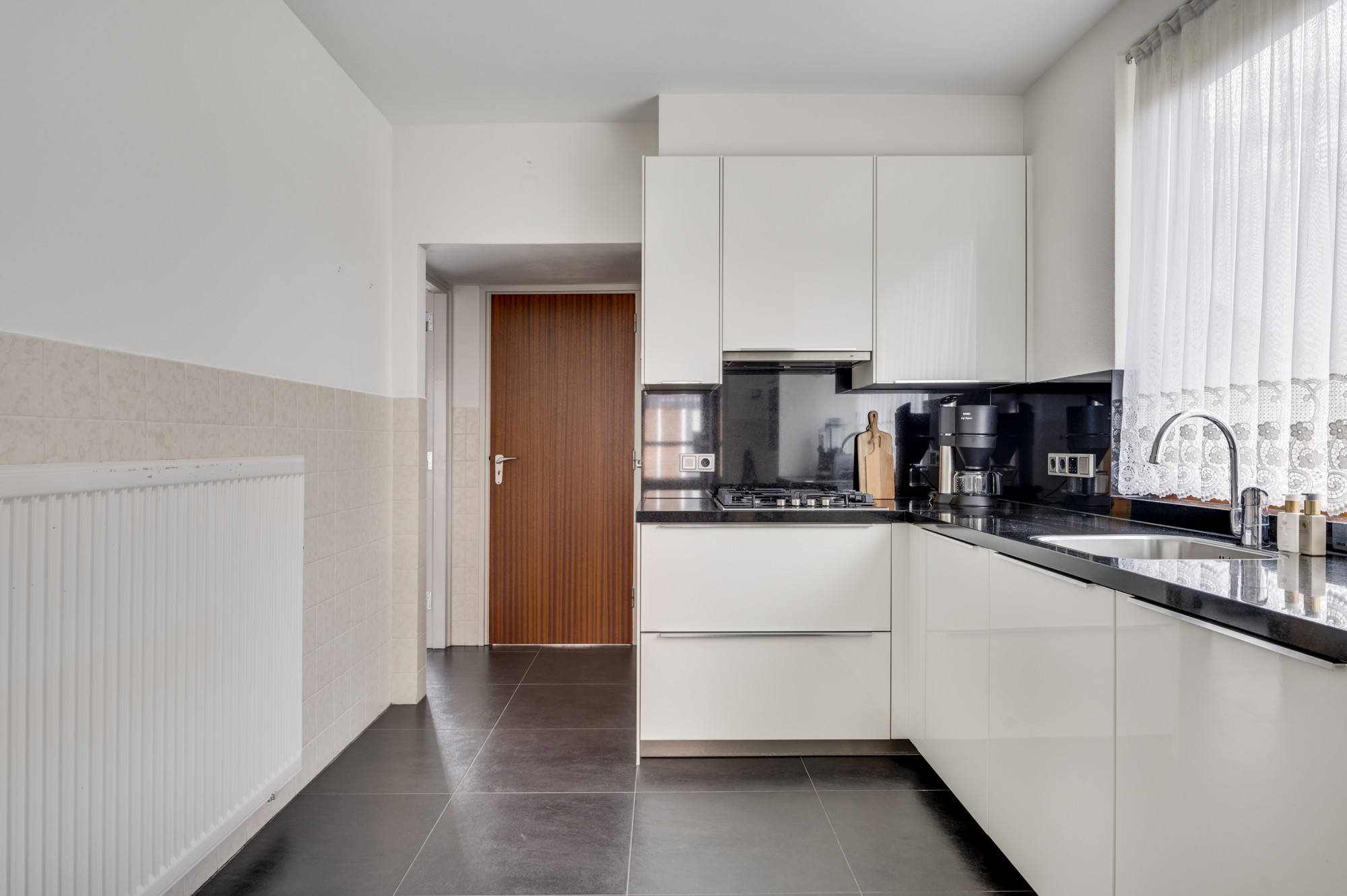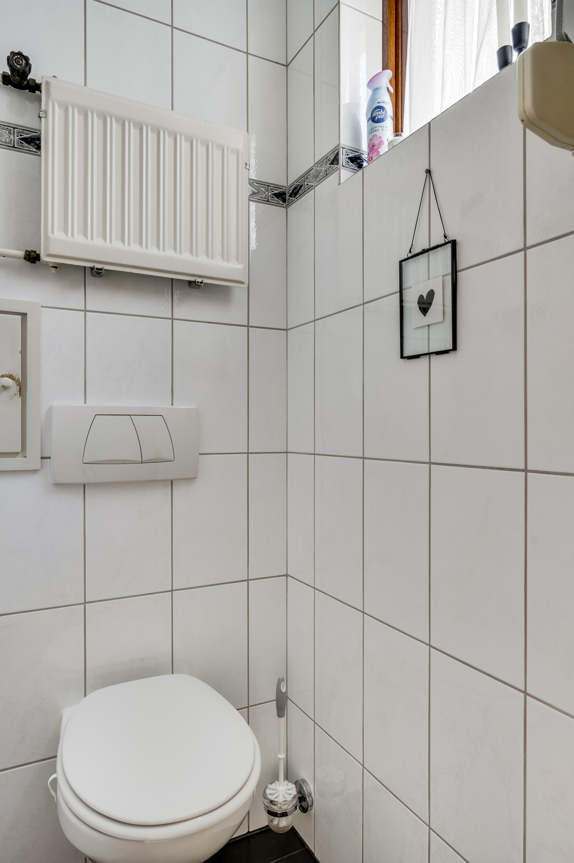 Hal/entree met de trapopgang naar de eerste verdieping, de toiletruimte met zwevend toilet, de praktische kelderkast en toegang tot de woonkamer en de keuken. De riante woonkamer beschikt over een aanbouw en heeft voldoende plek voor een zit- en eetgedeelte. De woonkeuken biedt een combinatie in hoekopstelling voorzien van de navolgende inbouwapparatuur; 4-pits gasfornuis, afzuigkap, combi-oven en een koelkast. Aangrenzend is de praktische bijkeuken gelegen met de witgoedaansluitingen en de opstelling van de extra geiser (voor de keuken). Middels een loopdeur is de achtertuin toegankelijk. De begane grond is uitgerust met een tegelvloer met vloerverwarming (m.u.v. het toilet).