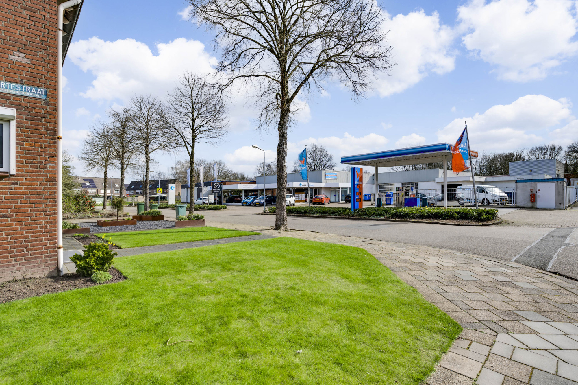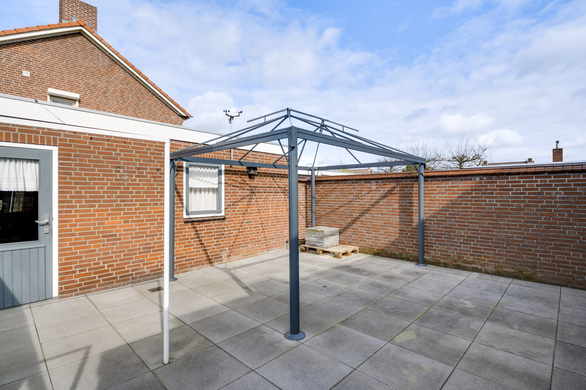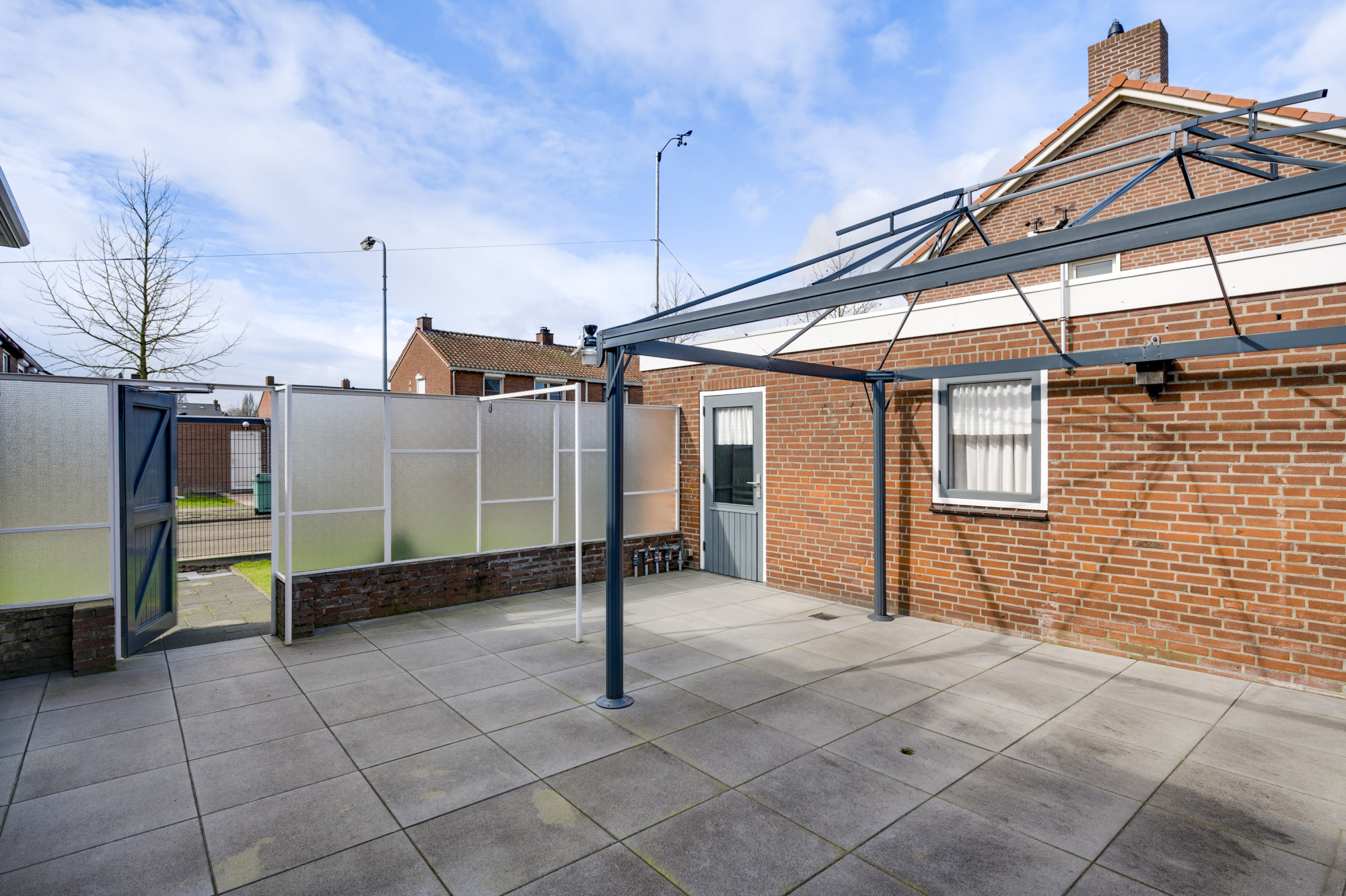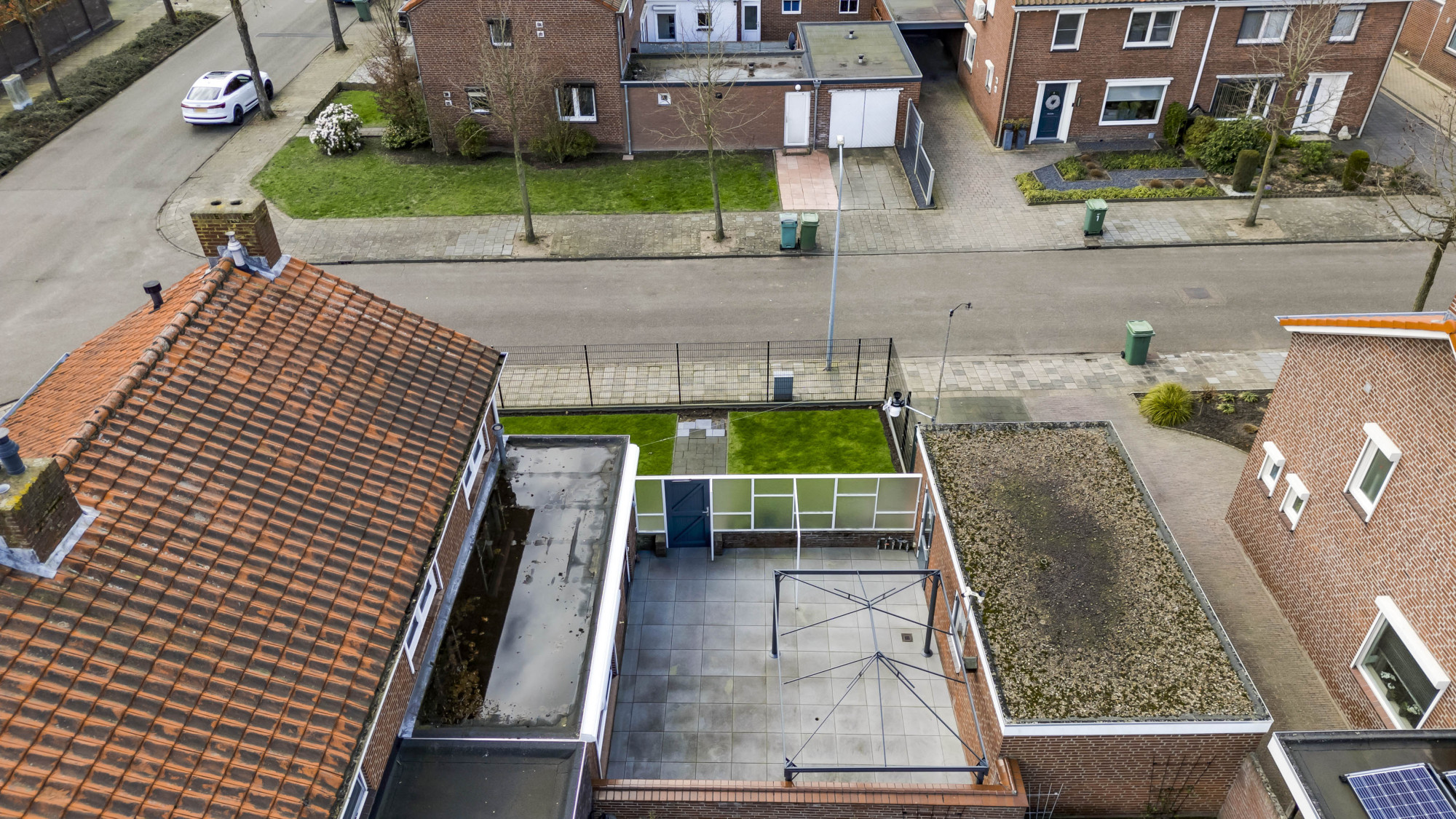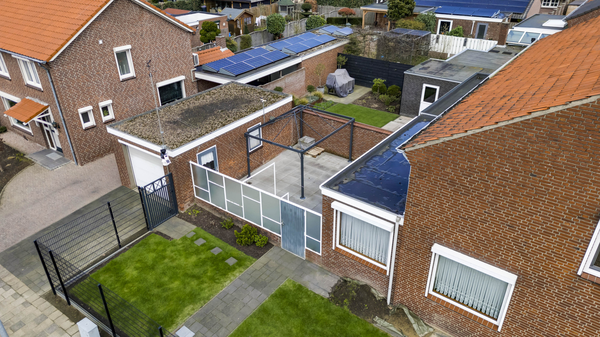 Er is een voor-, zij- en achtertuin aanwezig. De zijtuin is reeds voorzien van een nieuw hekwerk om dit geheel af te schermen en bij de achtertuin te trekken (door het nog verwijderen van de tussen afscheiding). Aan de zijkant van het perceel is een vrijstaande garage met voorliggende oprit gelegen. De garage beschikt over een elektrische poort en een loopdeur naar de achtertuin. De achtertuin is onderhoudsvriendelijk aangelegd en heeft een vrije achterom.