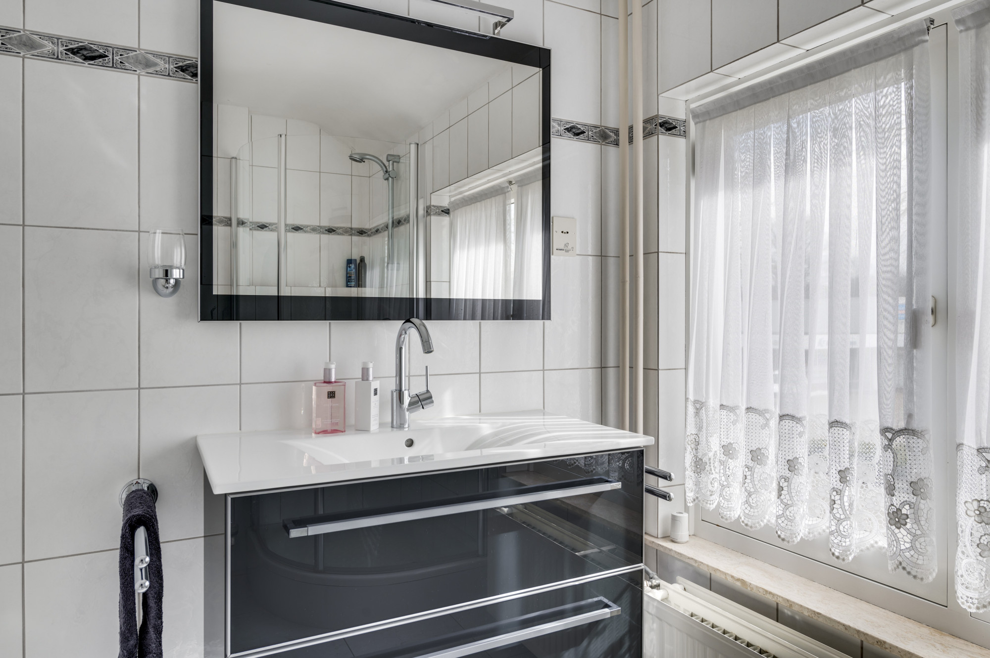 De overloop met muurkast biedt hier toegang tot de 3 slaapkamers en de ruime badkamer. Twee slaapkamers zijn voorzien van muurkasten. De complete badkamer is geheel betegeld en uitgerust met een ligbad, douche, toilet en een wastafel met meubel