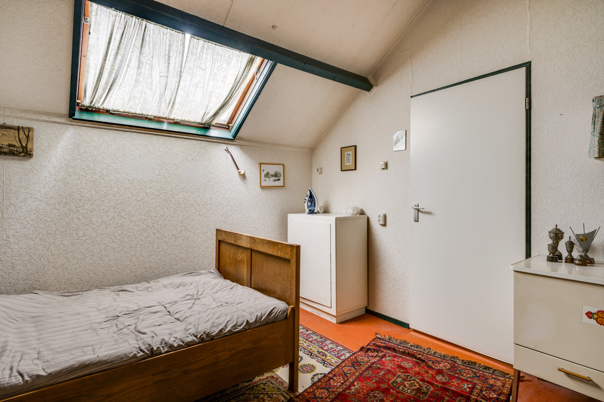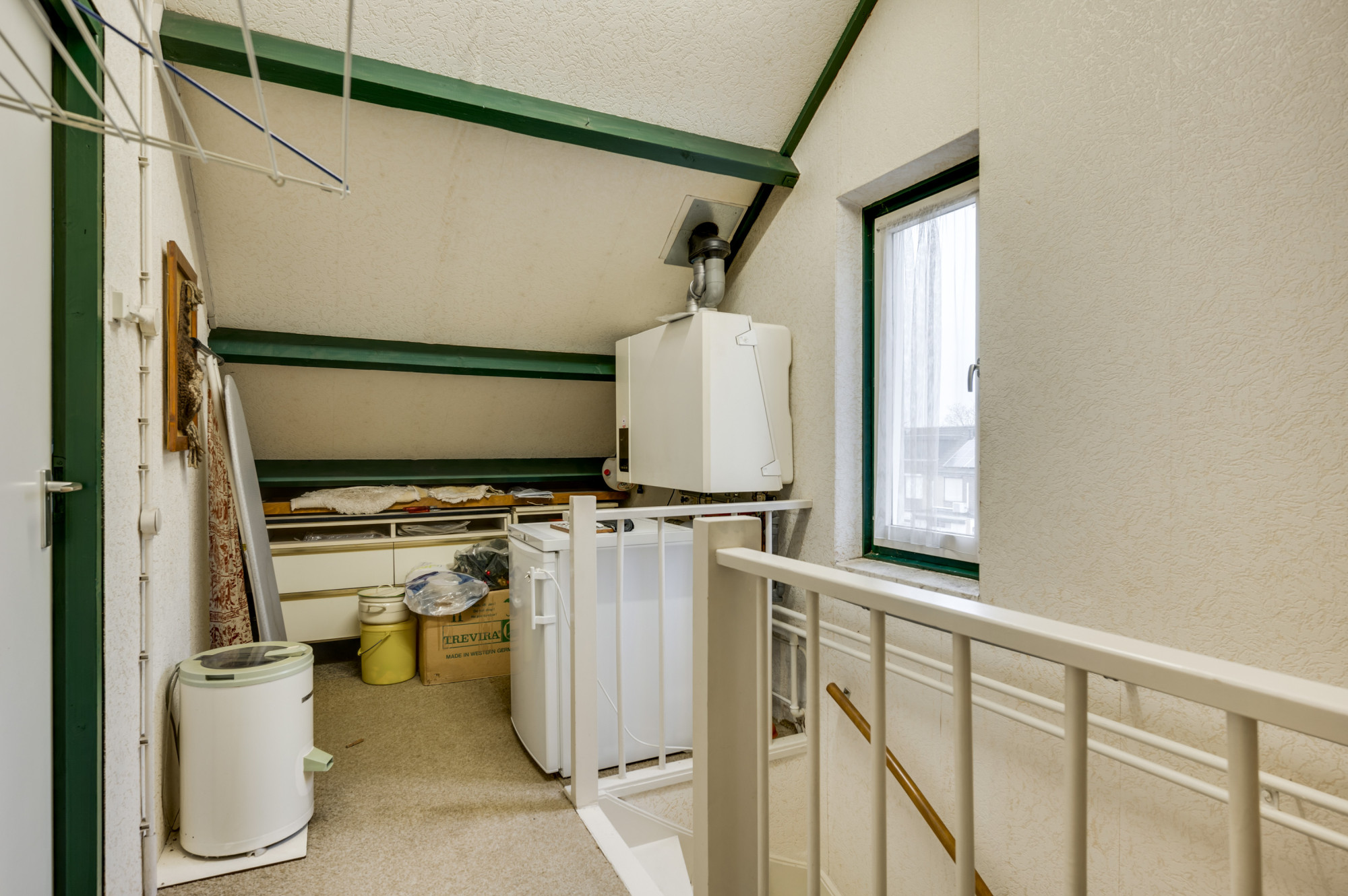 Middels een vaste trap toegankelijke extra woonlaag met hoge nokhoogte en een 4e (zolder)kamer met een dakraam en veel diepe bergruimte in het knieschot. Verder bevindt zich op deze verdieping een voorportaal met de opstelling van de cv-ketel (Nefit Excellent HR, 2000, eigendom).