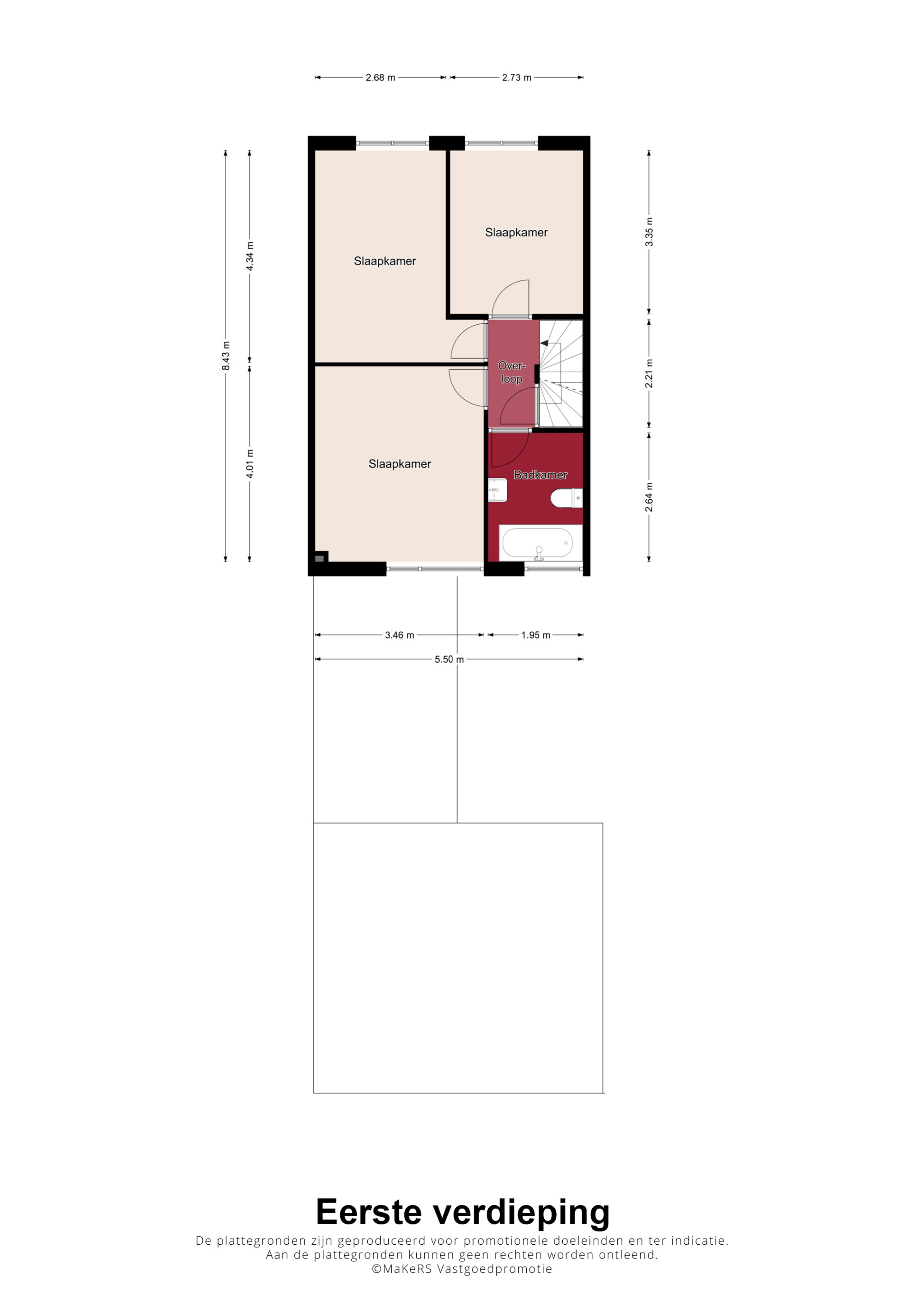 De overloop biedt toegang tot de eerste 3 (van 4) slaapkamers en de ruime badkamer. De badkamer is eenvoudig van opzet en biedt een ligbad, toilet, een wastafel en de witgoedaansluiting.