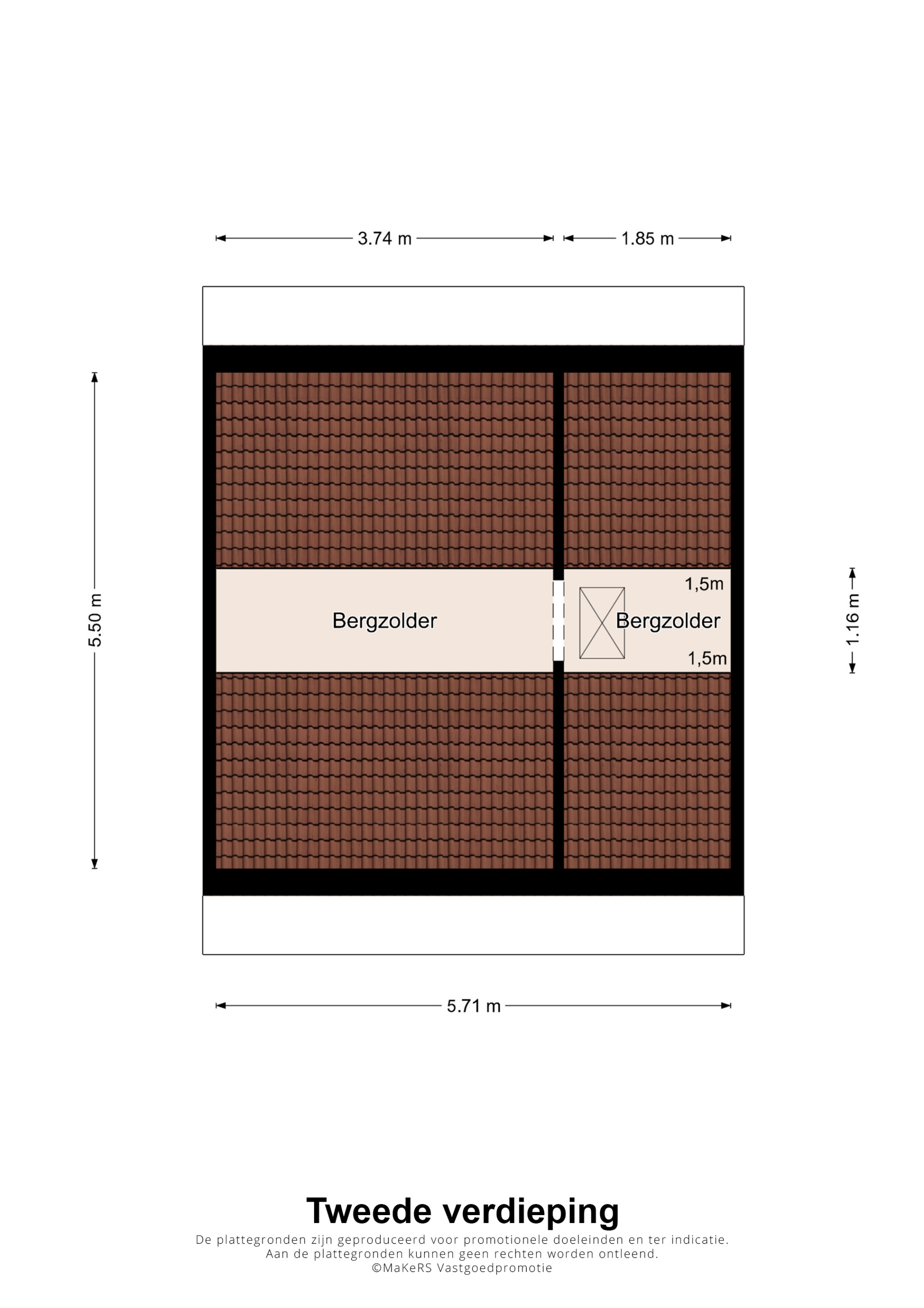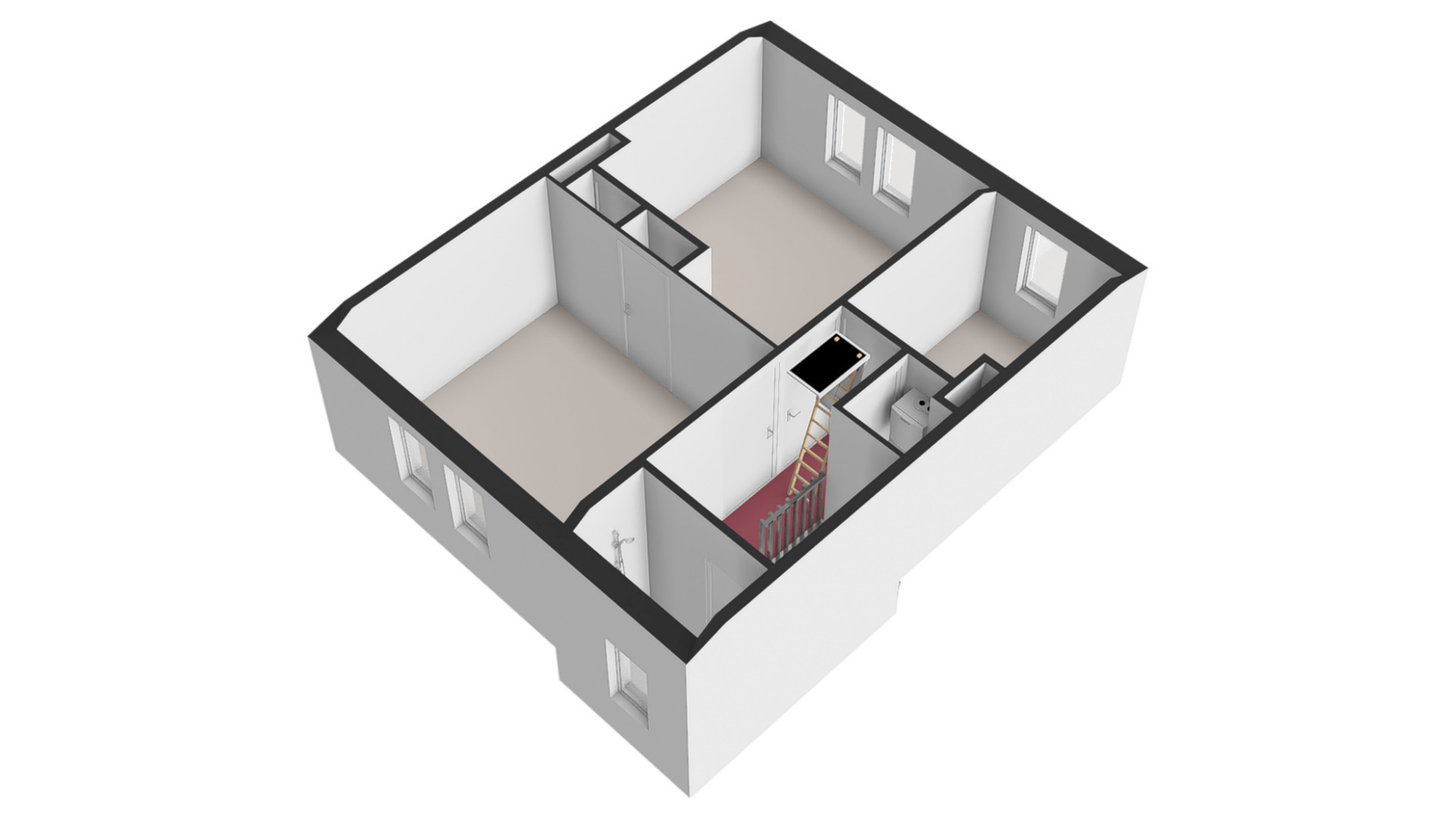 Via een mangat op de overloop is de bergzolder bereikbaar.