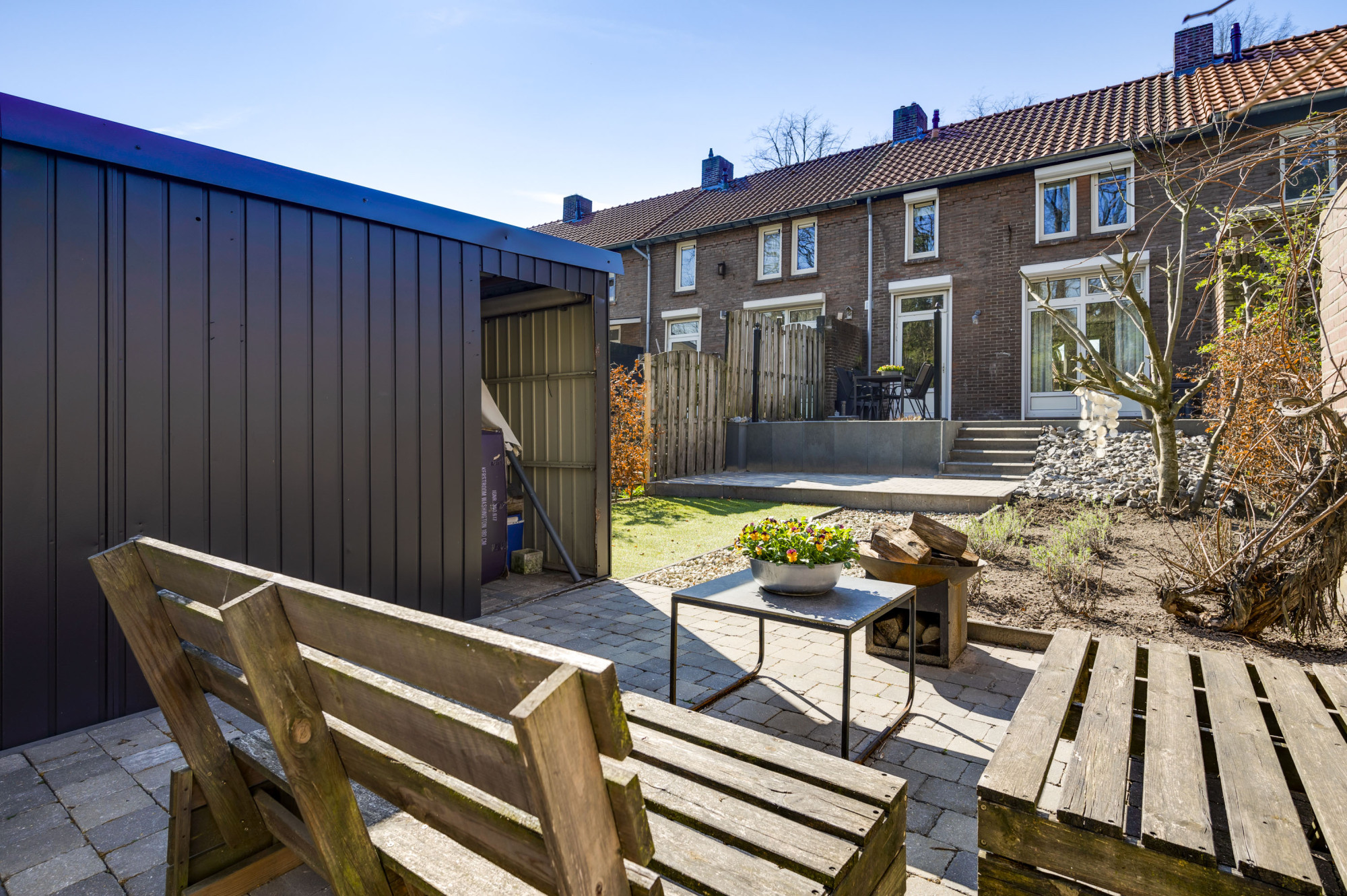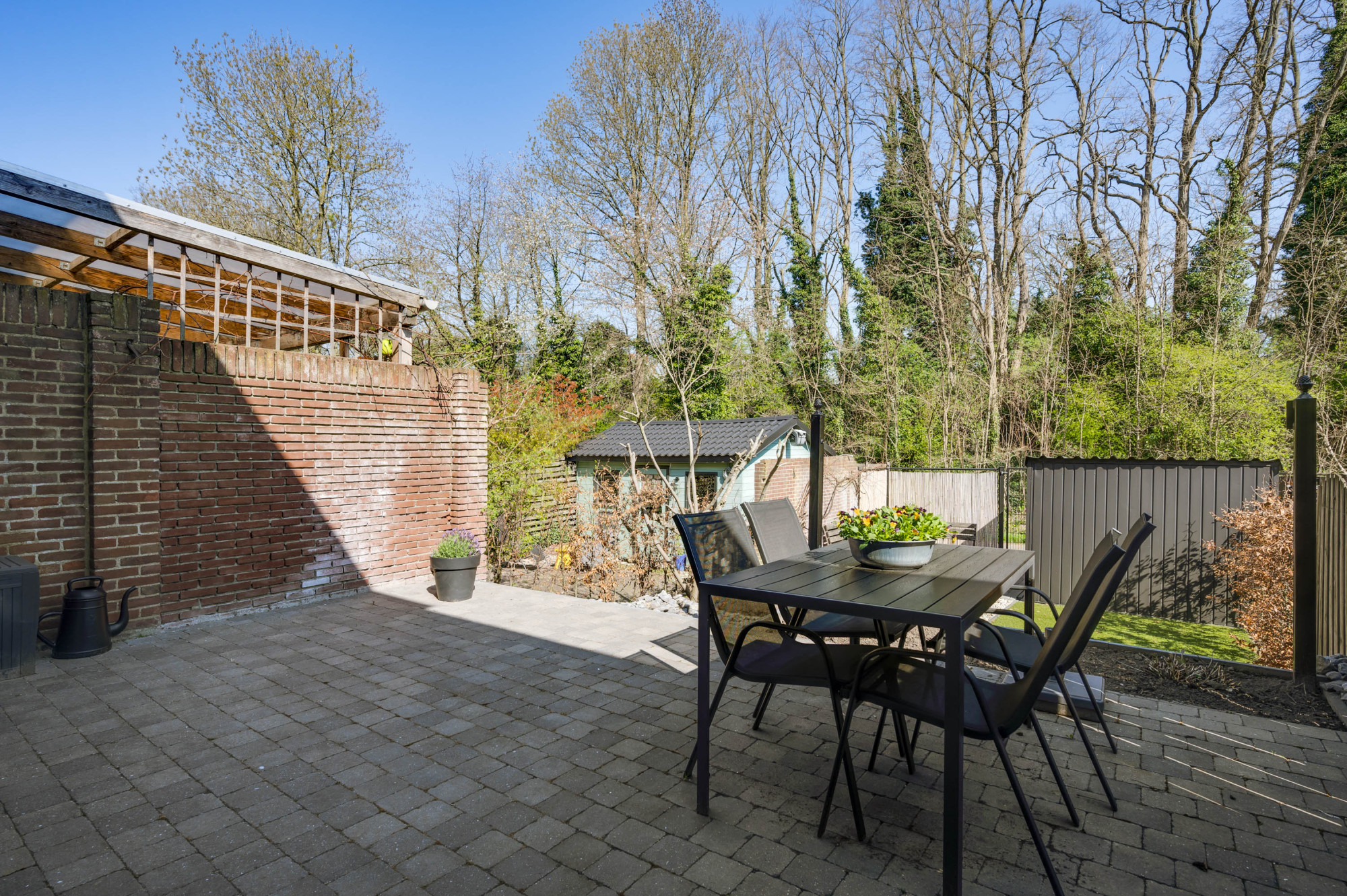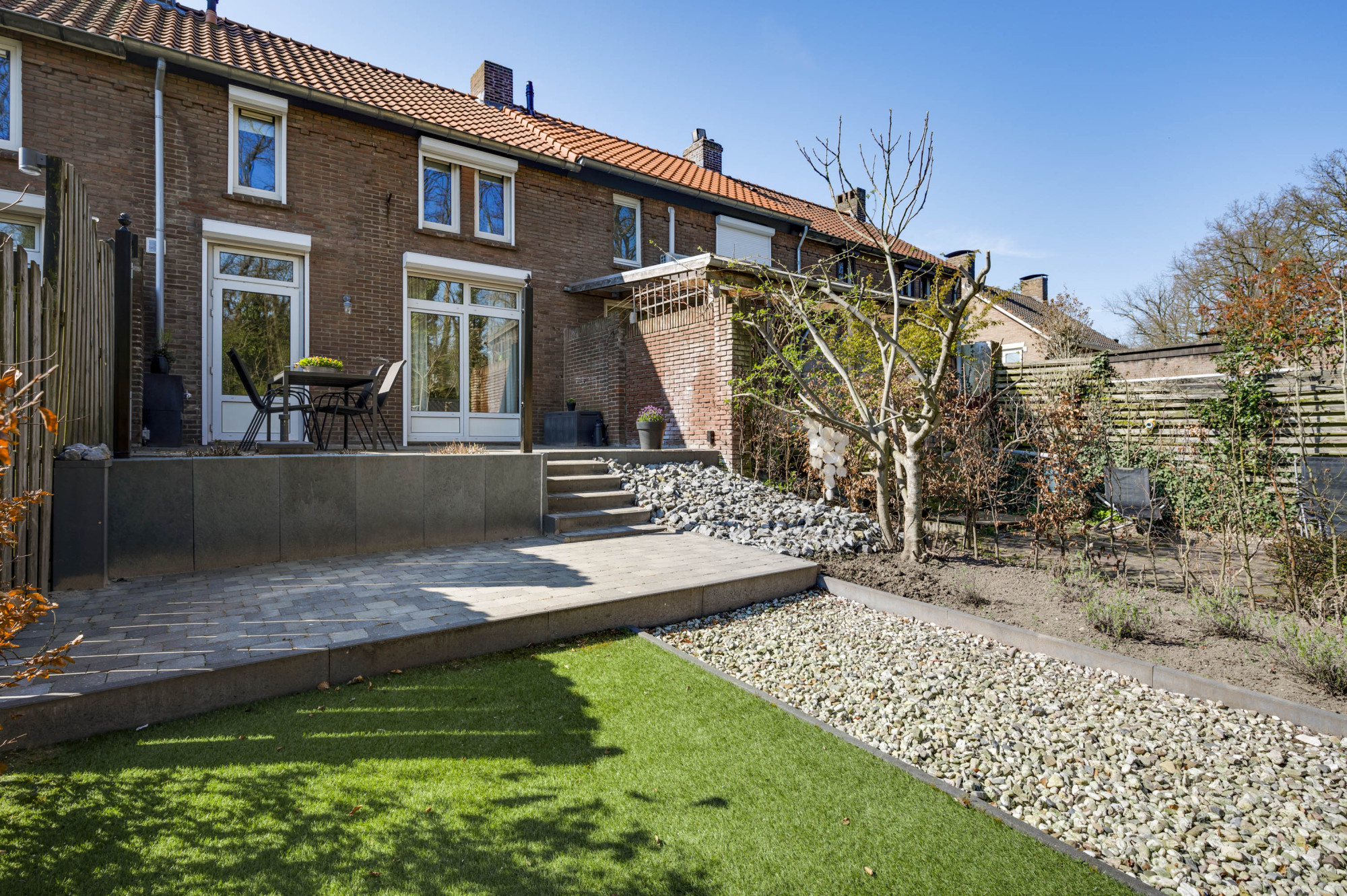 De diepe achtertuin is een heerlijke plek om buiten te leven. Met meerdere terrassen, een gazon, beplanting én een praktische garage/berging is er volop ruimte voor ontspanning. Via de vrije achterom bereik je het weggetje aan de achterzijde.