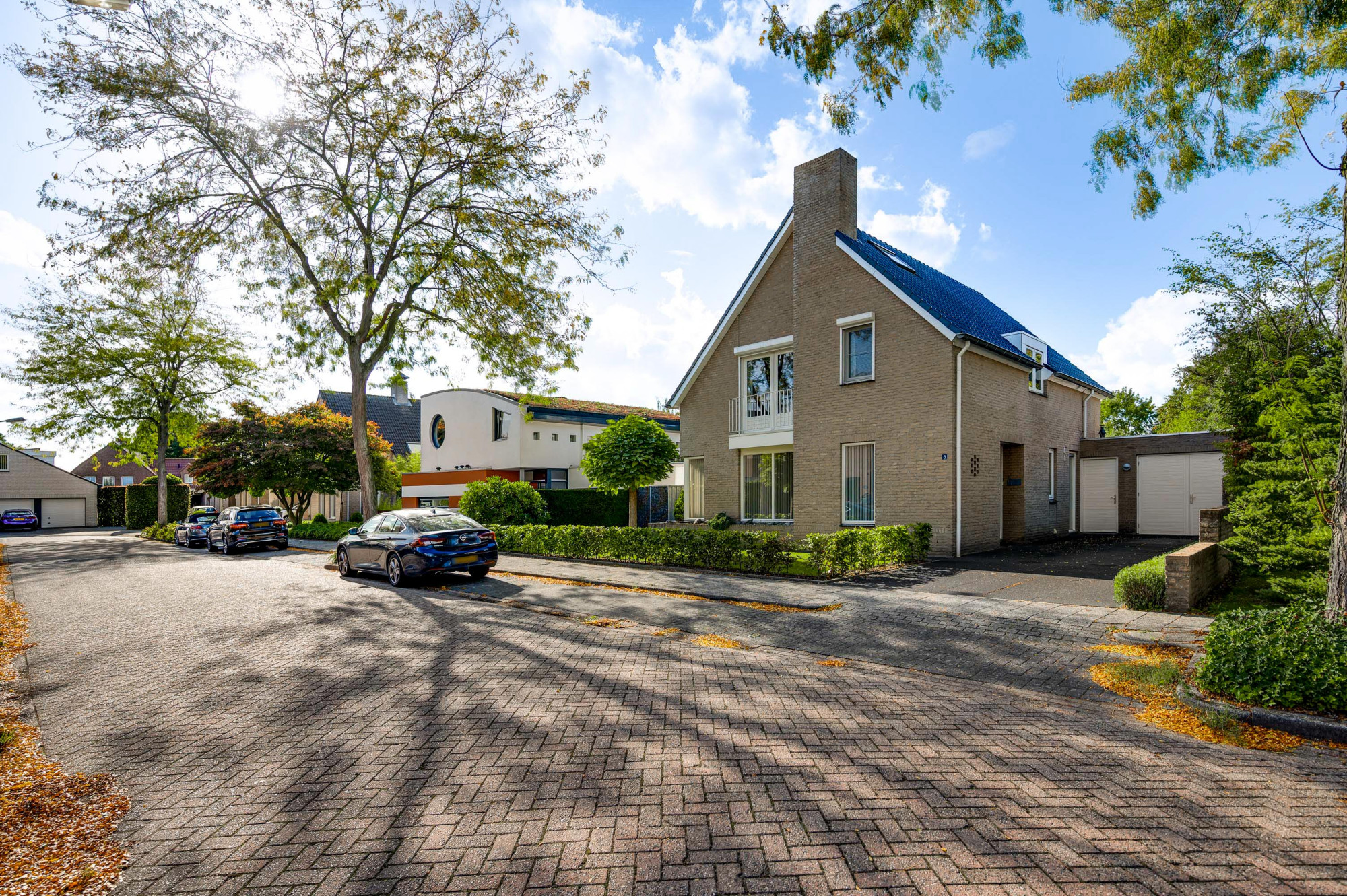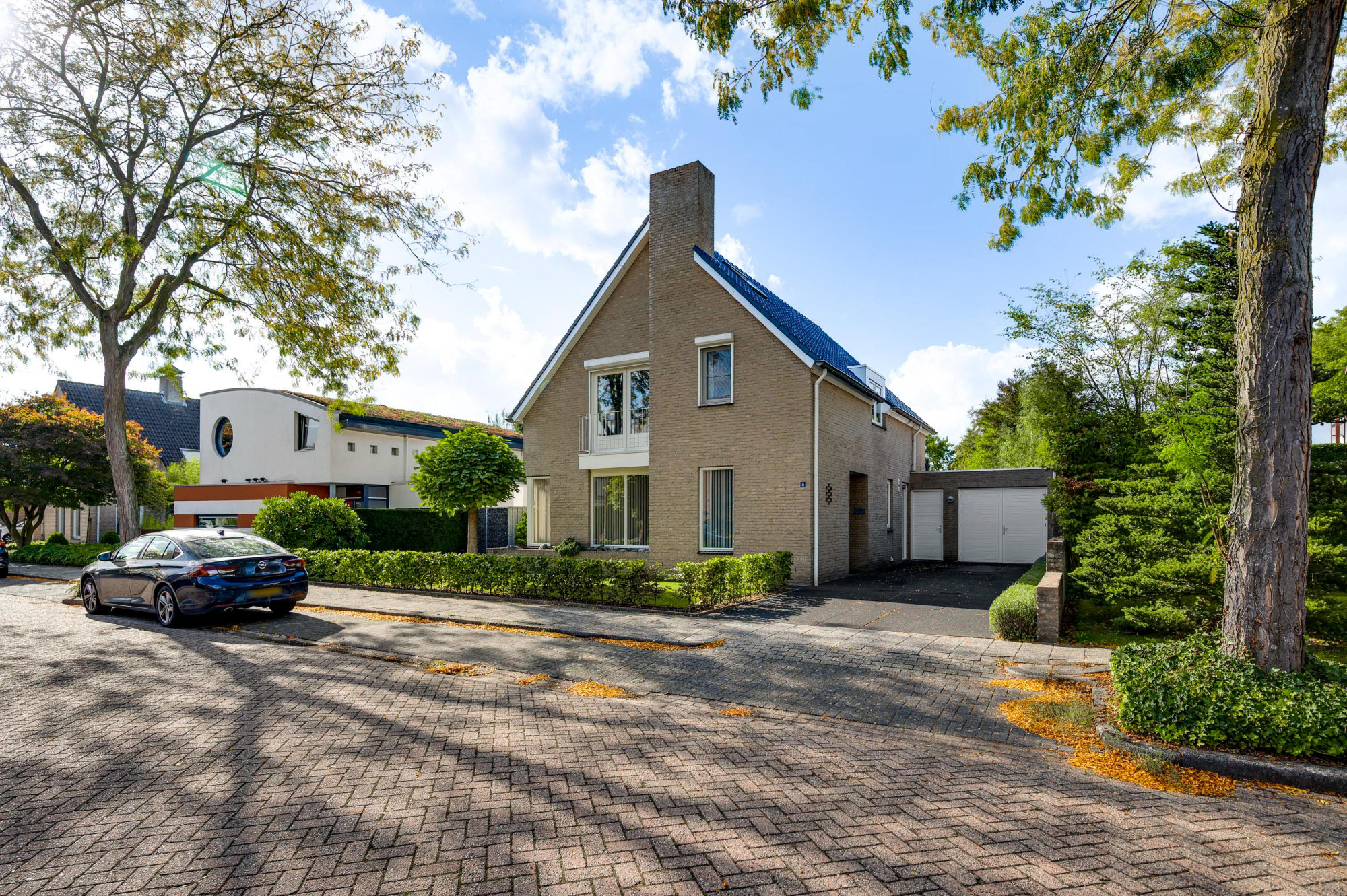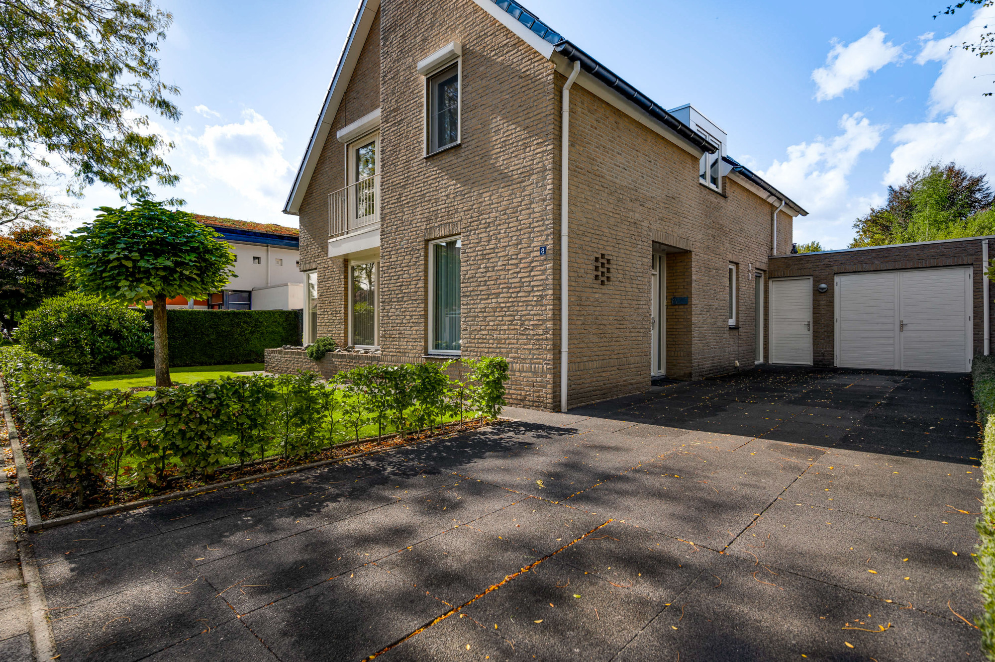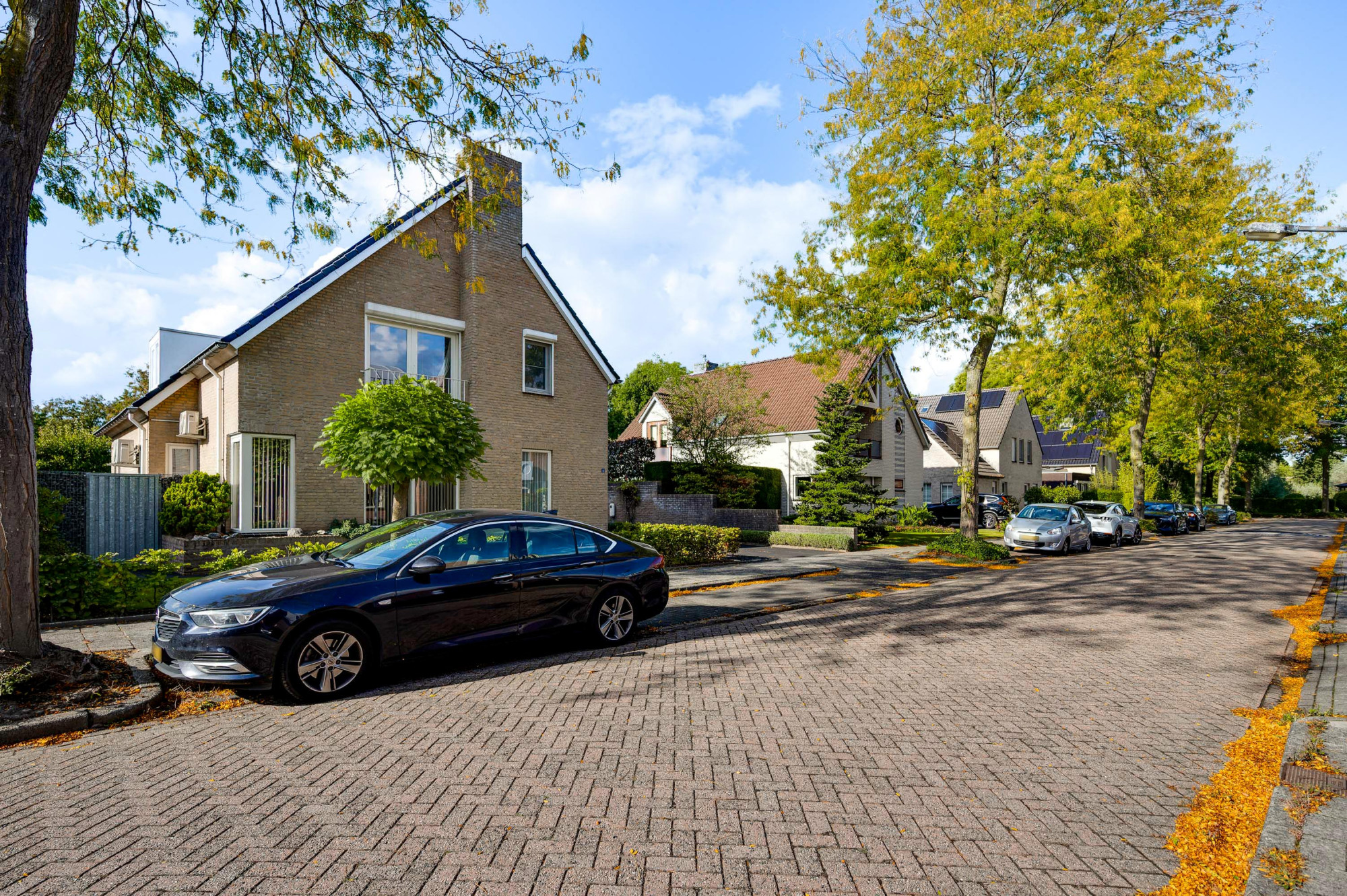 Aan de voorzijde ligt een verzorgde tuin met gazon en een looppad dat via een achterom toegang biedt tot de achtertuin. De oprit biedt plaats voor meerdere auto’s en een autolader en leidt naar de inpandige garage met een extra loopdeur. De achtertuin is fraai aangelegd met gazon, plantenborders, een ruime houten overkapping en een breed elektrisch zonnescherm, zodat u hier in alle rust en privacy kunt genieten van het buitenleven aan het water.