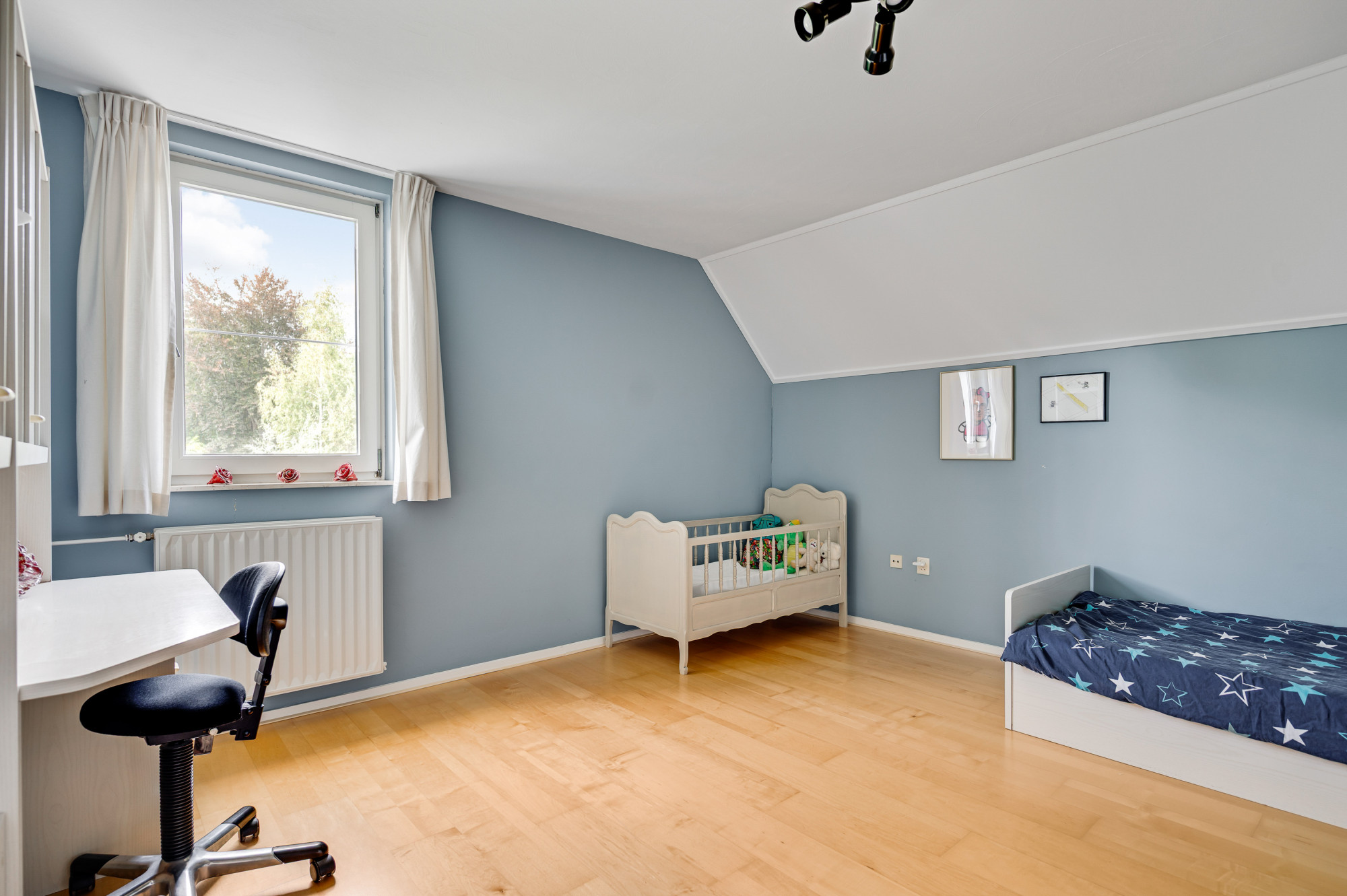 Via een vaste trap bereikt u de tweede verdieping met nog twee extra slaap/zolderkamers. Een ideale extra verdieping voor een groot gezin, logees of om werk- en hobbykamers te realiseren.