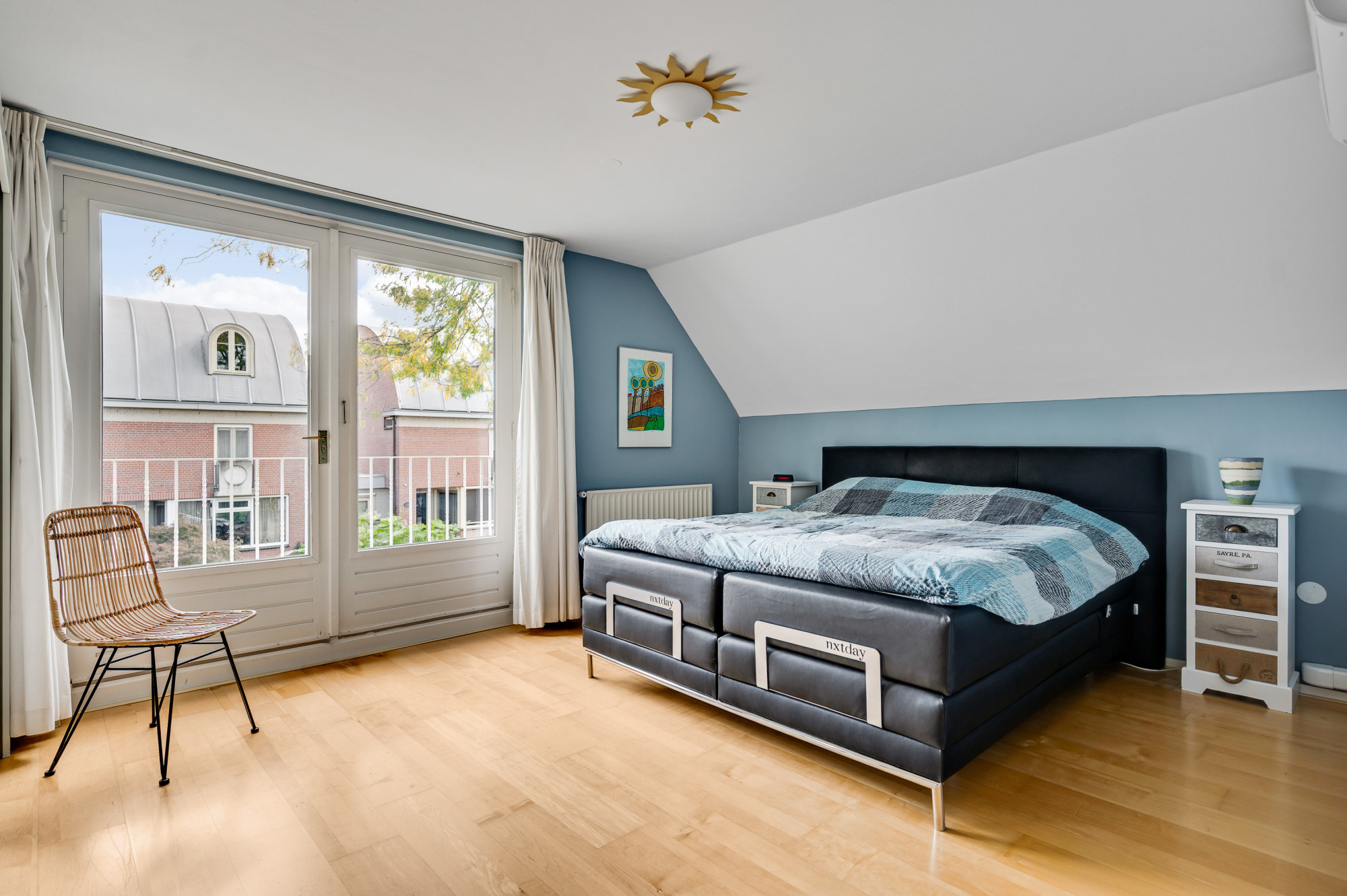 De overloop biedt toegang tot nog vier ruime slaapkamers, waarvan één met balkon. De complete en riante badkamer is luxe van opzet en voorzien van een ligbad, douche en een dubbele wastafel met meubel. Een separate toiletruimte met zwevend toilet is eveneens aanwezig vanuit de overloop.