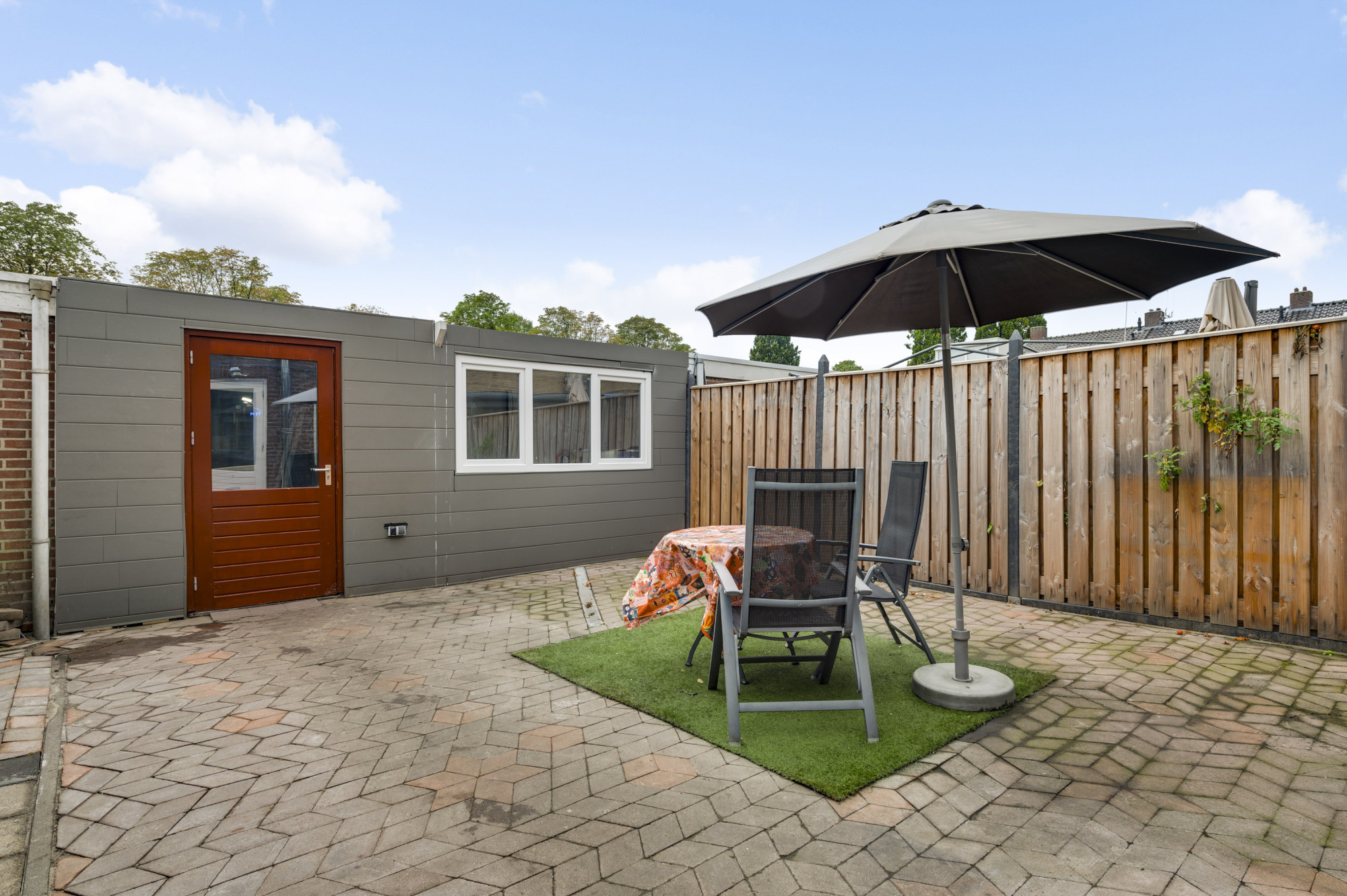 Er is een onderhoudsvriendelijke voor- en achtertuin aanwezig. De achtertuin beschikt over een vrije achterom via de garage. De garage is ruim en breed van opzet en voorzien van een aangrenzende berging/bijkeuken met de witgoedaansluitingen. In de ruime garage is stroom aanwezig.