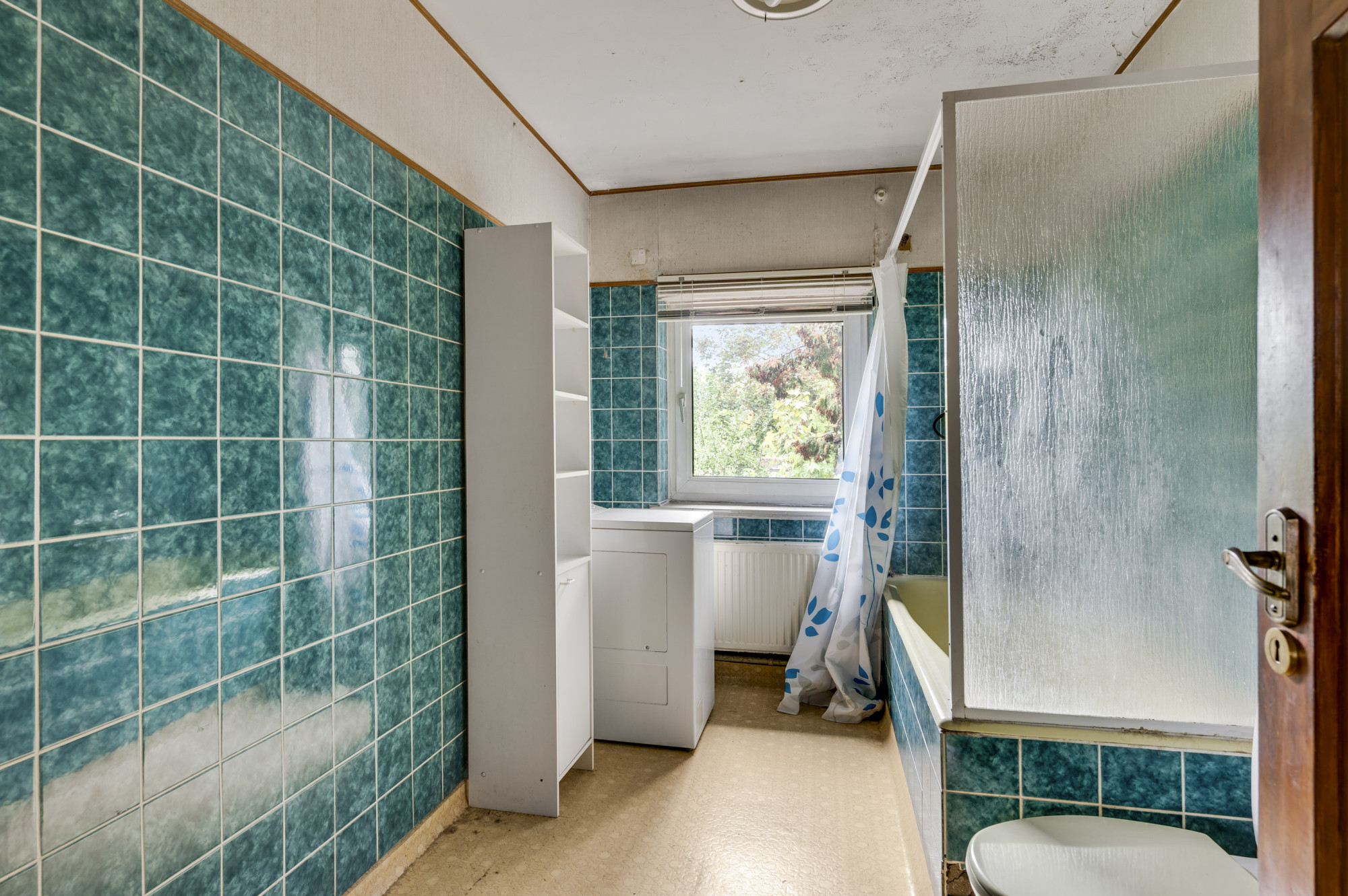 Op de eerste verdieping bevinden zich de eerste twee comfortabele slaapkamers en een ruime badkamer, uitgerust met een ligbad en toilet. Beide slaapkamers beschikken over een wastafel en 1 van de slaapkamers biedt toegang tot het dakterras. Op de overloop zijn praktische muurkasten aanwezig.