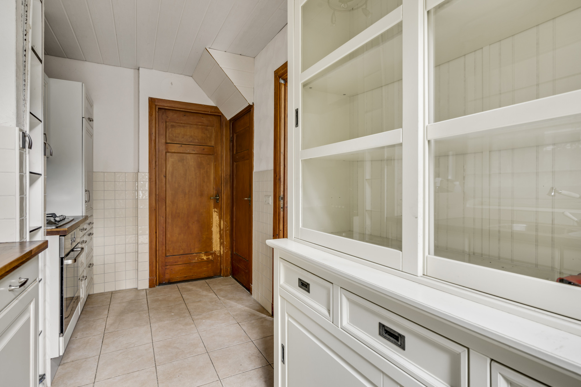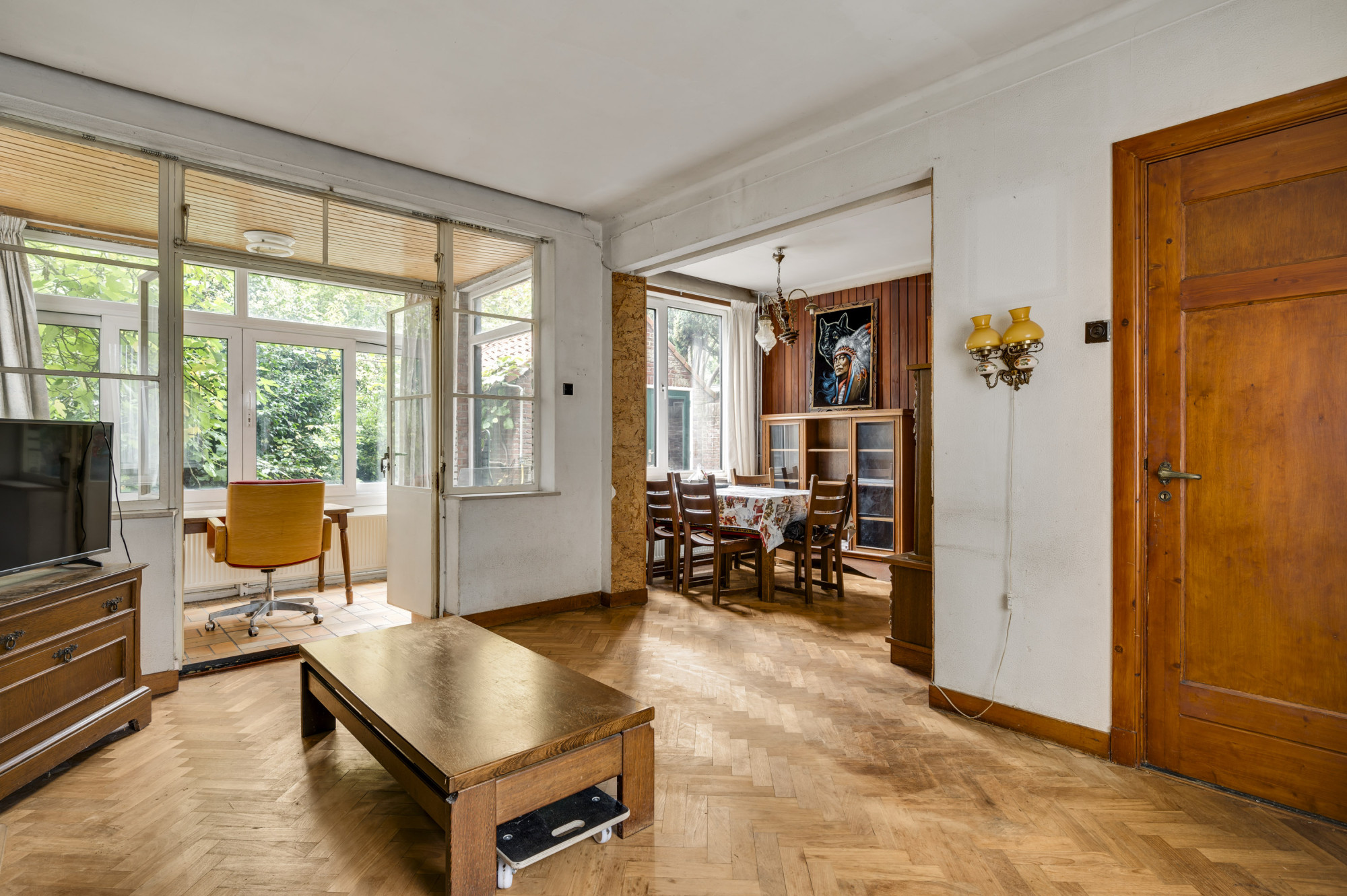 Bij binnenkomst wordt u verwelkomd in de ruime entree/hal met een fraaie trappartij. Vanuit de hal bereikt u de royale woonkamer met aangrenzende serre, die baadt in natuurlijk licht. De gesloten keuken straalt nostalgische charme uit en is uitgerust met diverse inbouwapparatuur, waaronder een gaskookplaat, afzuigkap, koel-vriescombinatie, oven, close in boiler en een vaatwasser. Vanuit de keuken is de praktische provisiekelder bereikbaar, evenals de hal met toiletruimte en meterkast. Via een loopdeur in de keuken is de achtertuin toegankelijk.