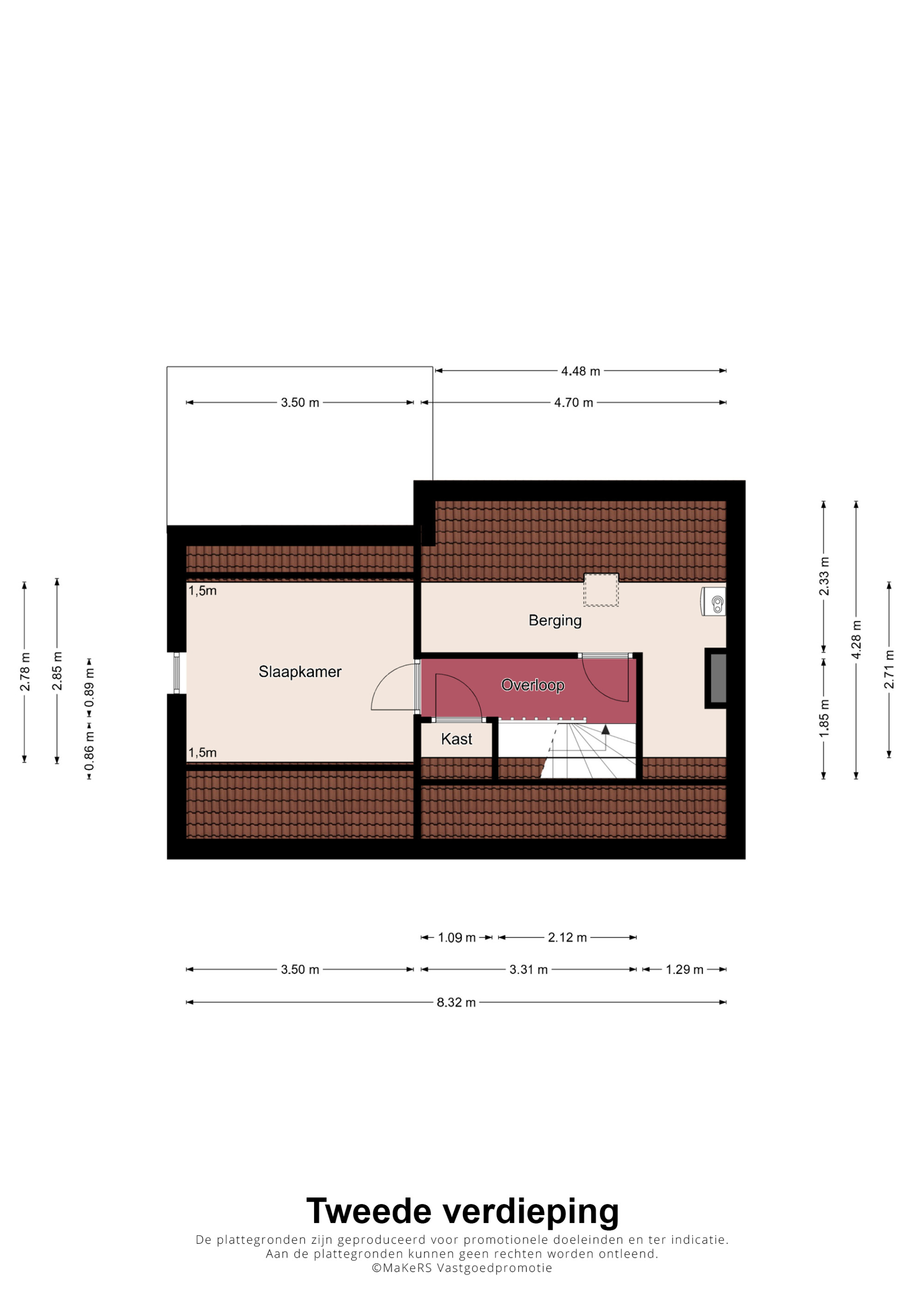 Te bereiken middels een vaste trap. Hier bevindt zich een derde slaapkamer met de mogelijkheid tot het creëren van een vierde slaapkamer. Daarnaast is er extra bergruimte en de CV ruimte gesitueerd met de cv-opstelling (Vaillant Ecotec Plus VHR, 2020, eigendom).