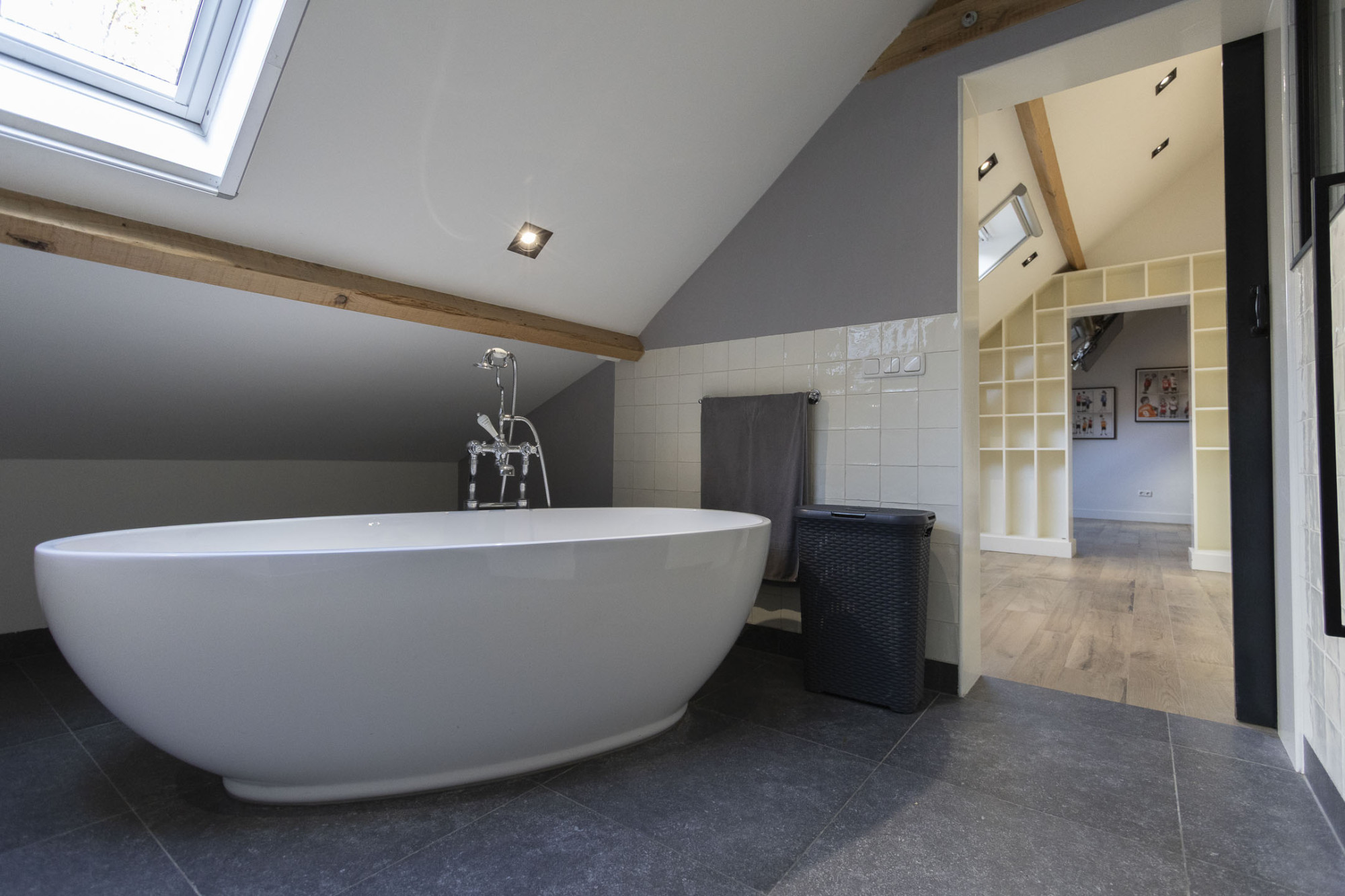 Een aparte ruimte die de hoofdslaapkamer en de overloop verbindt biedt ruimte aan de wasautomaat-en wasdroger-aansluiting, een boiler en twee cv-ketels.