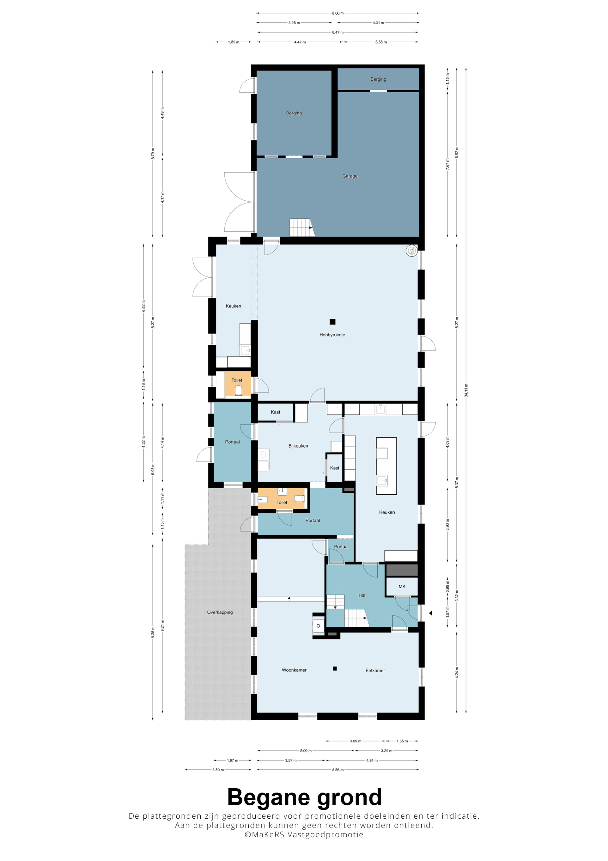 De begane grond beschikt over een riante multifunctionele ruimte die gebruikt kan worden als groot thuiskantoor, thuisgym en/of ontspanningsruimte. Deze ruimte is compleet uitgevoerd met airco, evt. toilet, pooltafel, zithoek én eigen kitchenette. De kitchenette is v.v. een Quooker, koelkast, vaatwasser. Ook is er een praktische bijkeuken met een nog een extra grote koelkast en vriezer, wasautomaat-aansluiting en extra bergruimte.